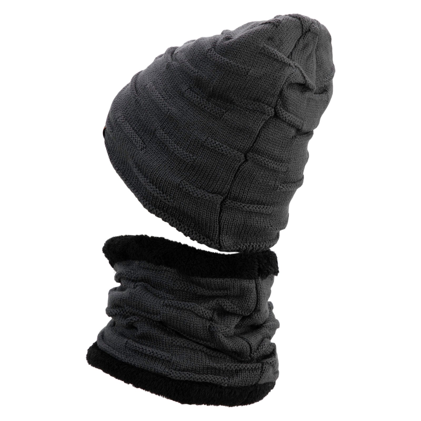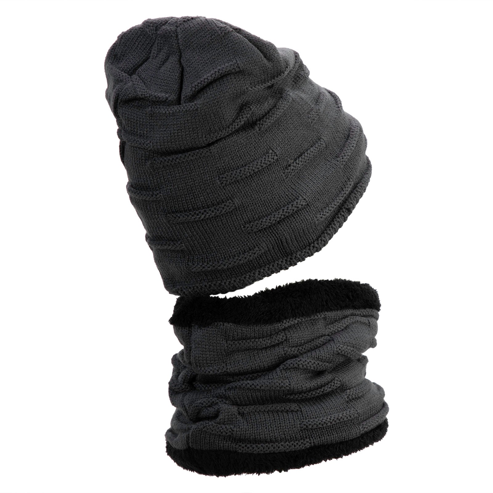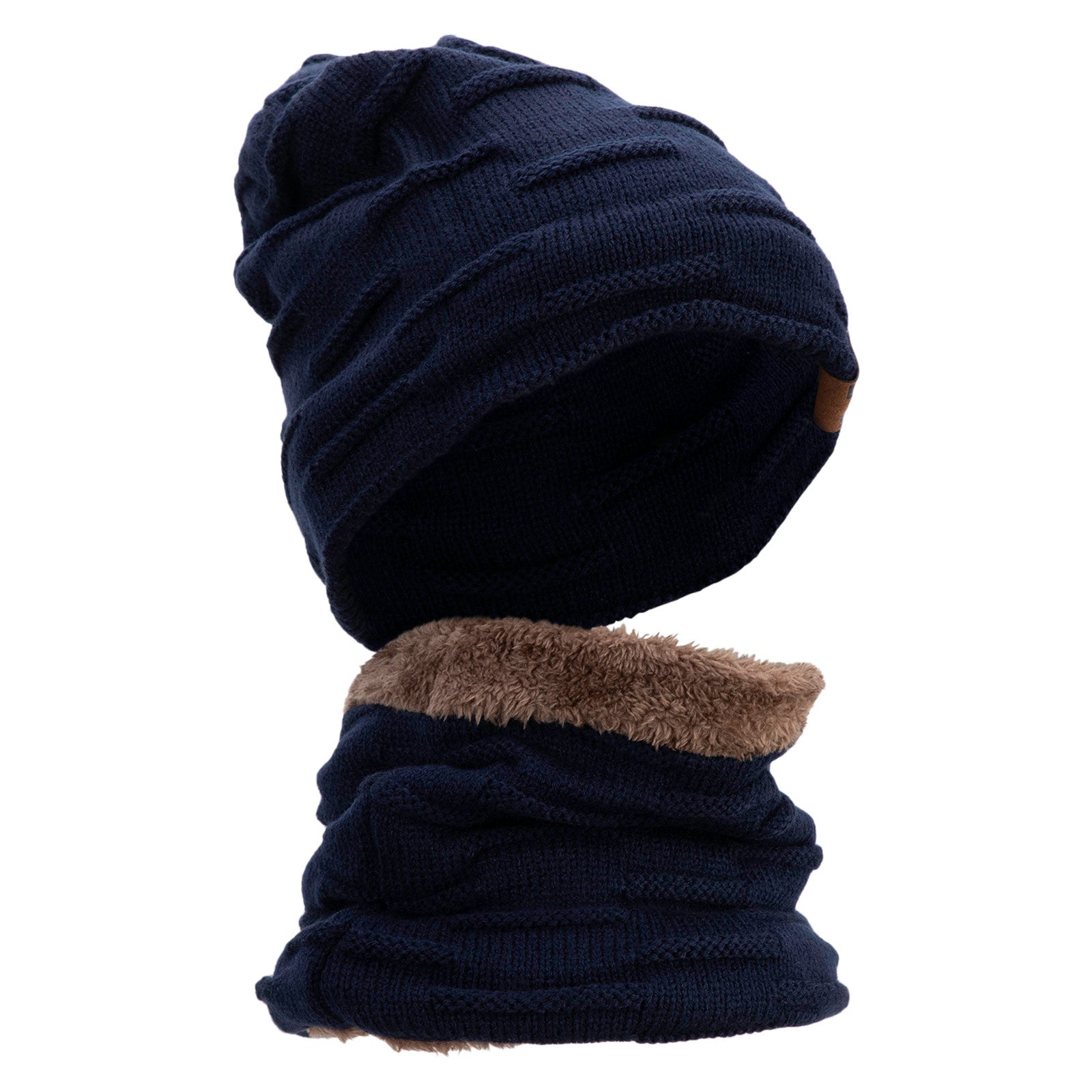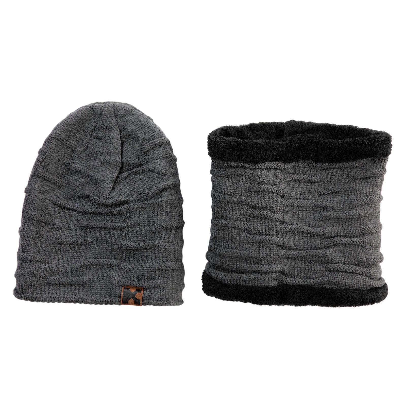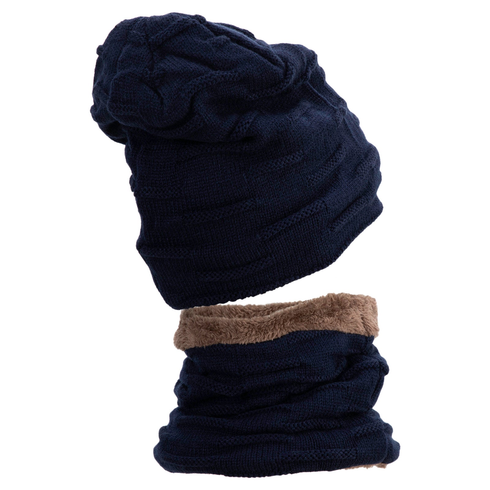 Line Pattern Knit Slouchy Beanie with Neck Warmer