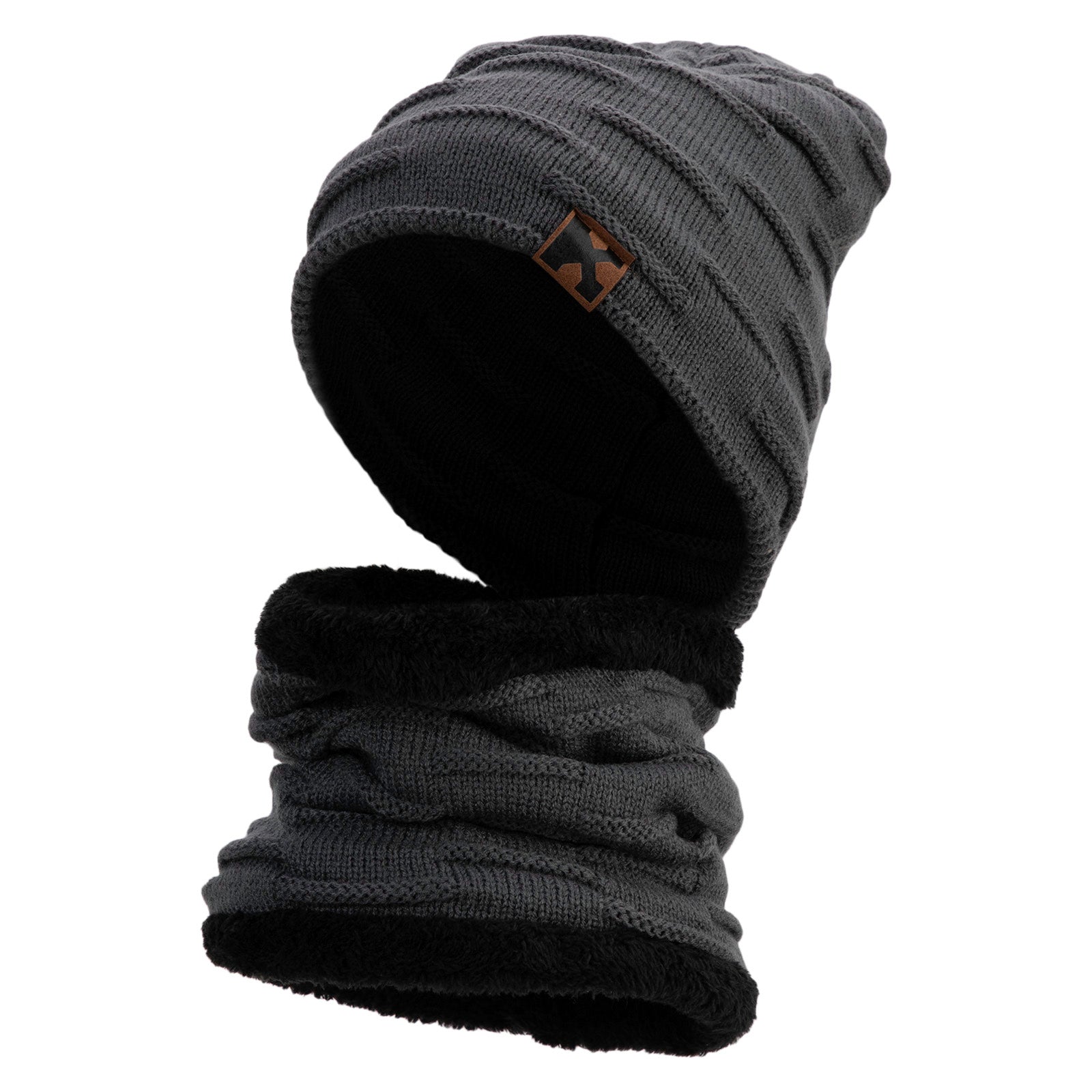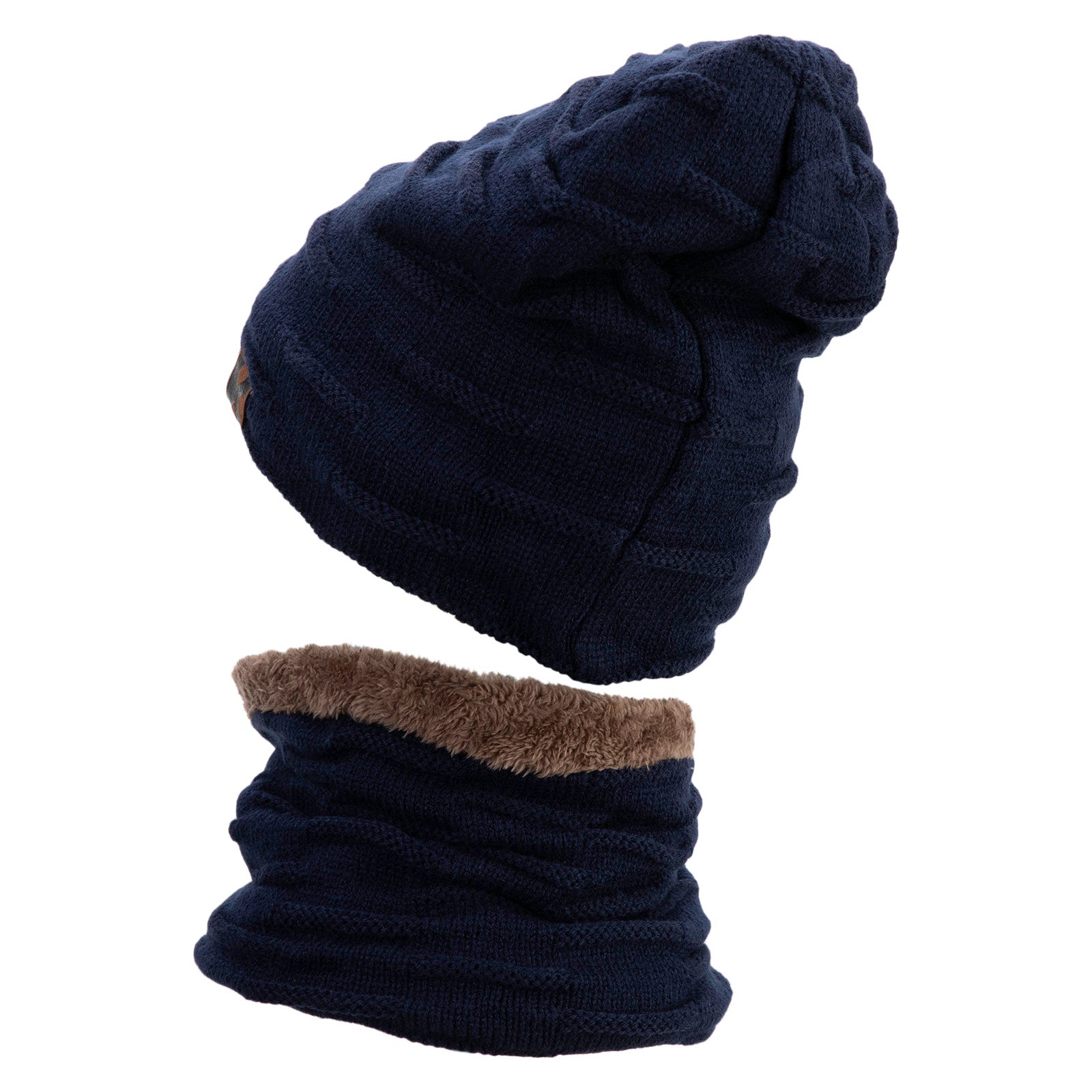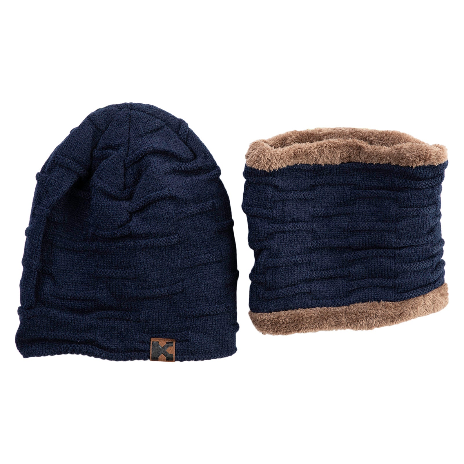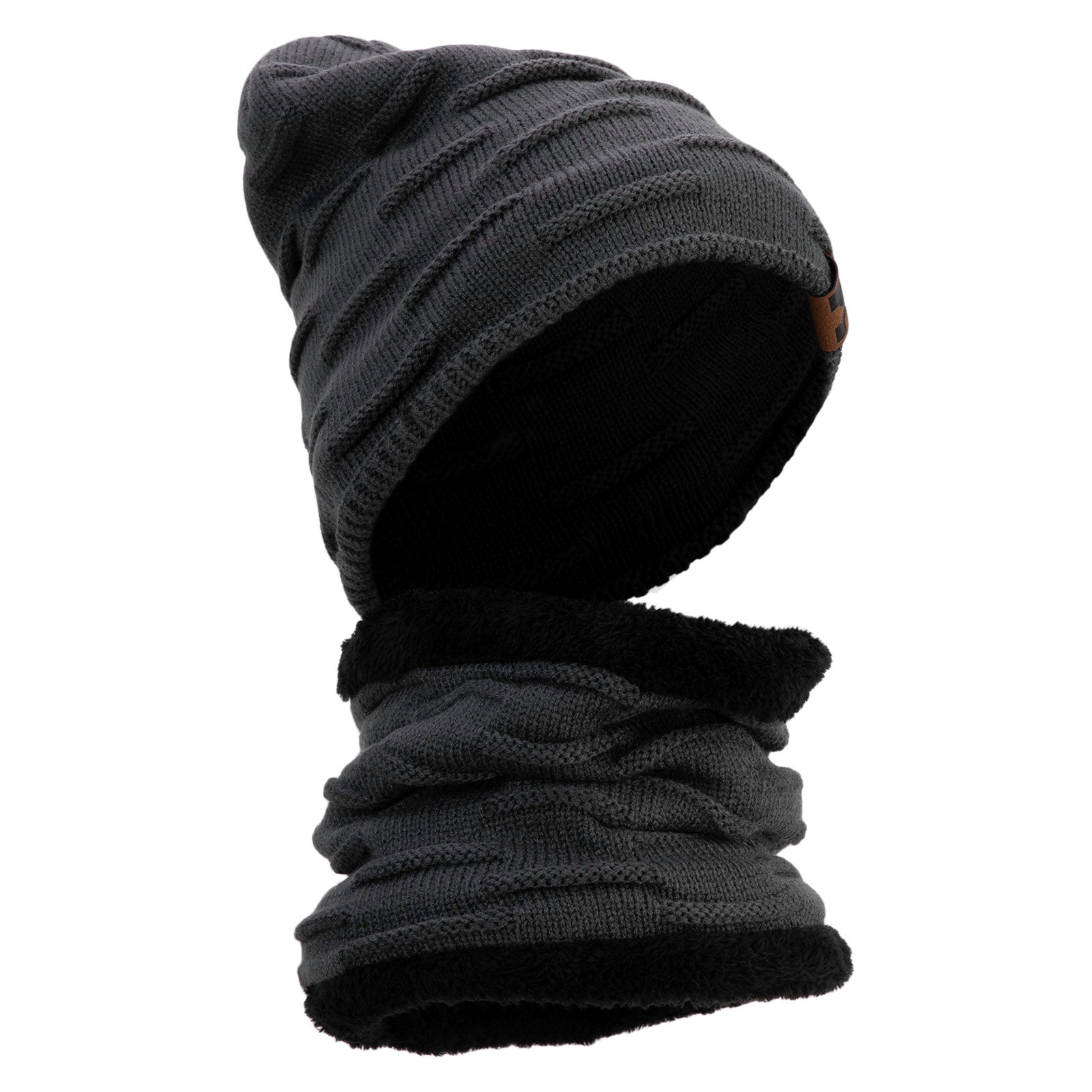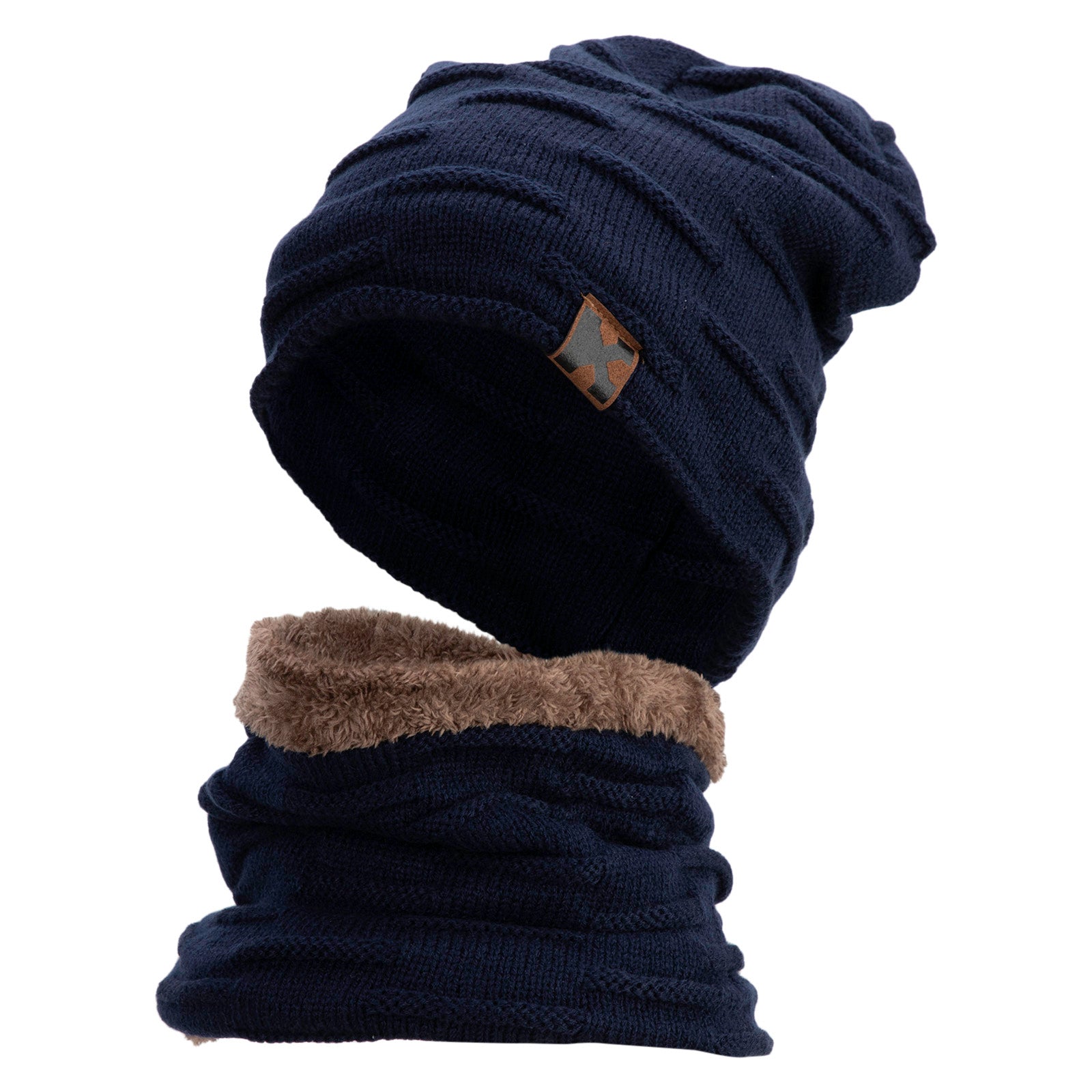 Line Pattern Knit Slouchy Beanie with Neck Warmer