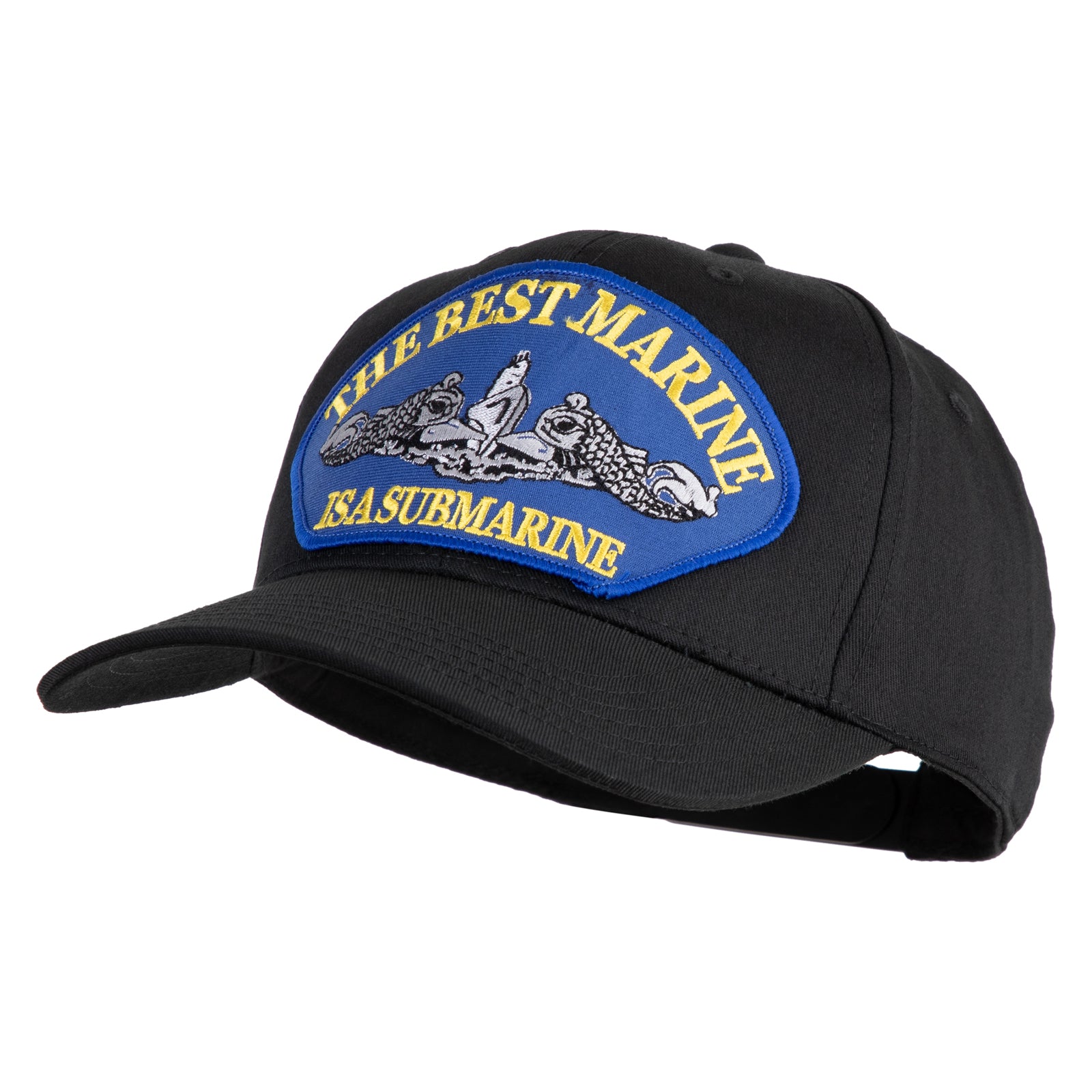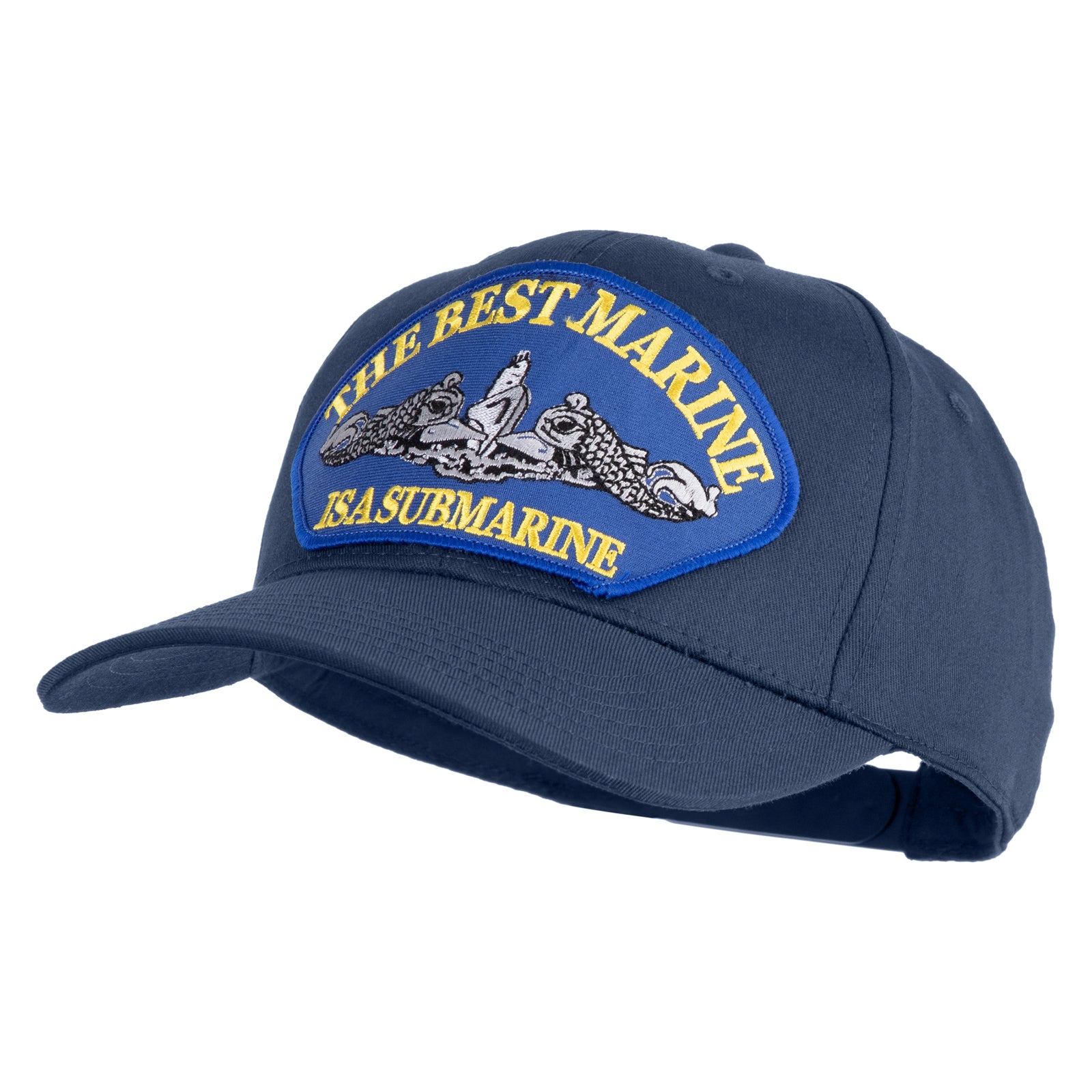 Title, The Best Marine ISA Submarine Blue Patched Solid Cotton Twill Pro Style Cap