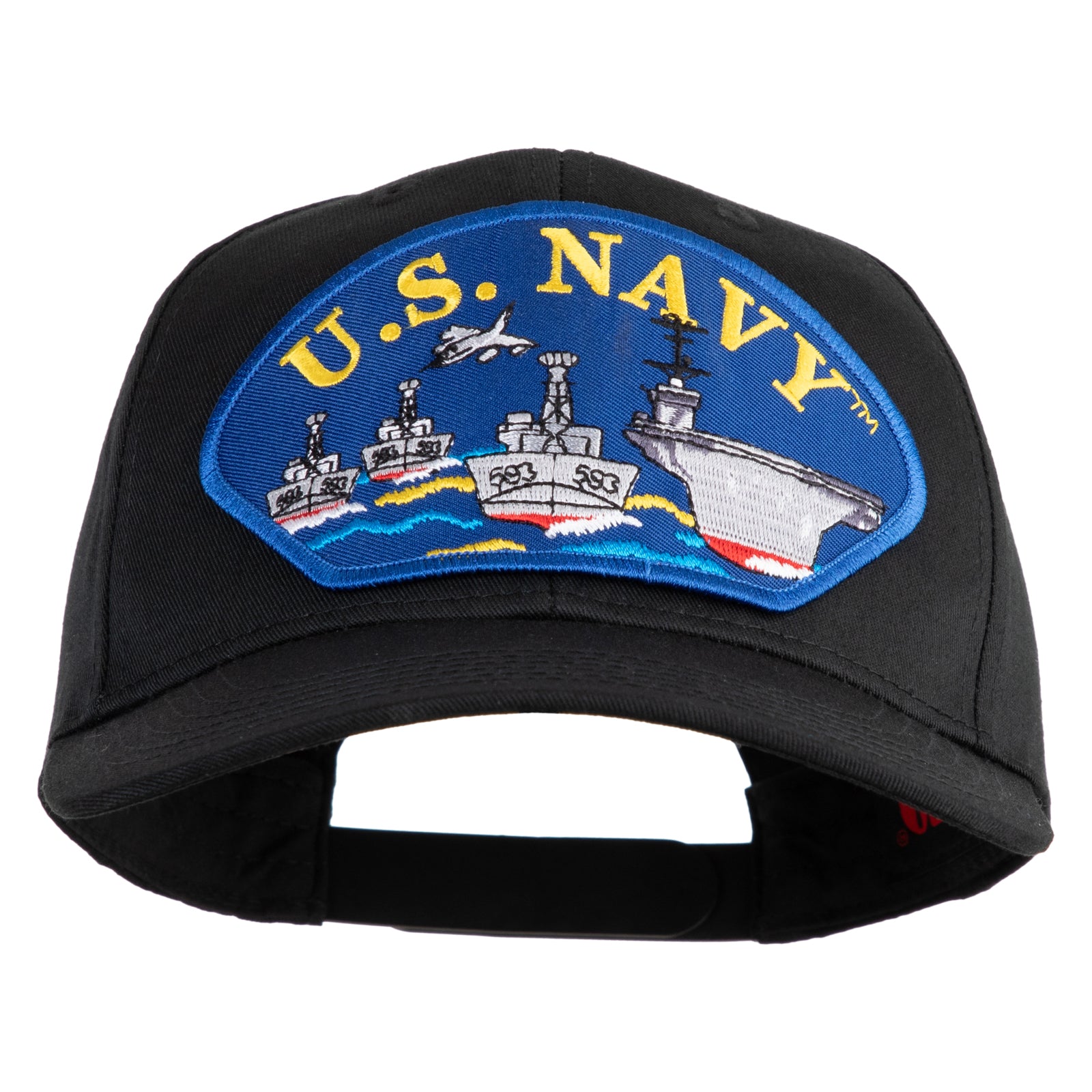 U.S. Navy Ships Blue Patched Solid Cotton Twill Pro Style Cap - Black OSFM