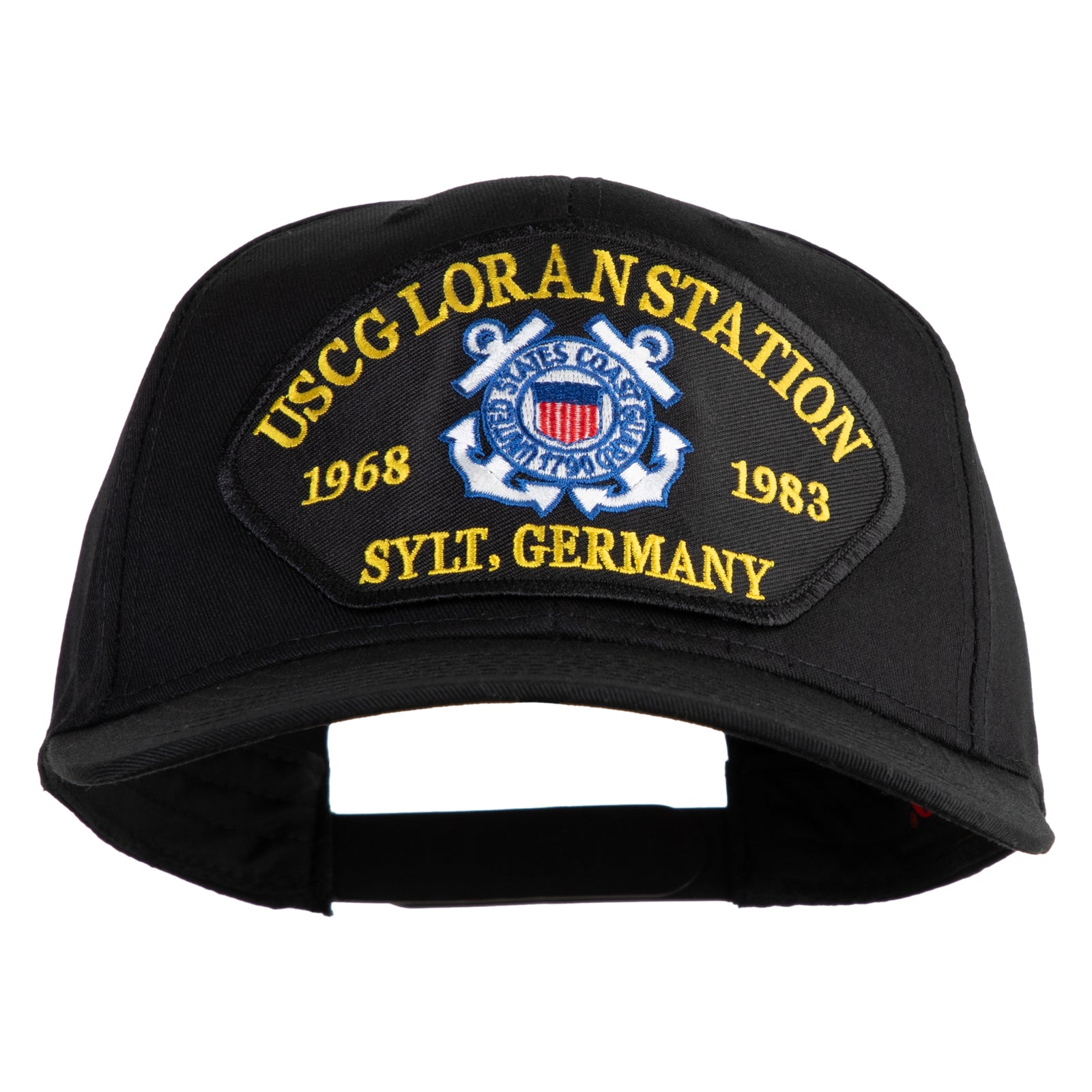 USCG Loran Station 1968 1983 Sylt Germany Patched Solid Cotton Twill Pro Style Cap - Black OSFM
