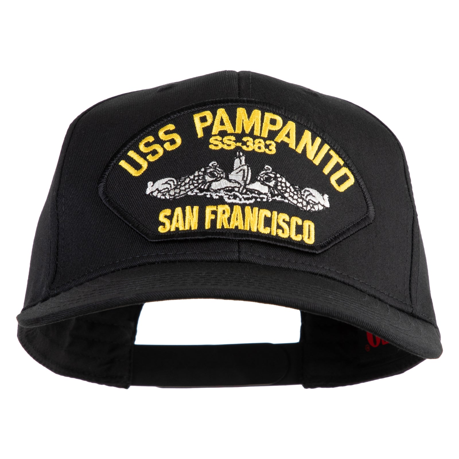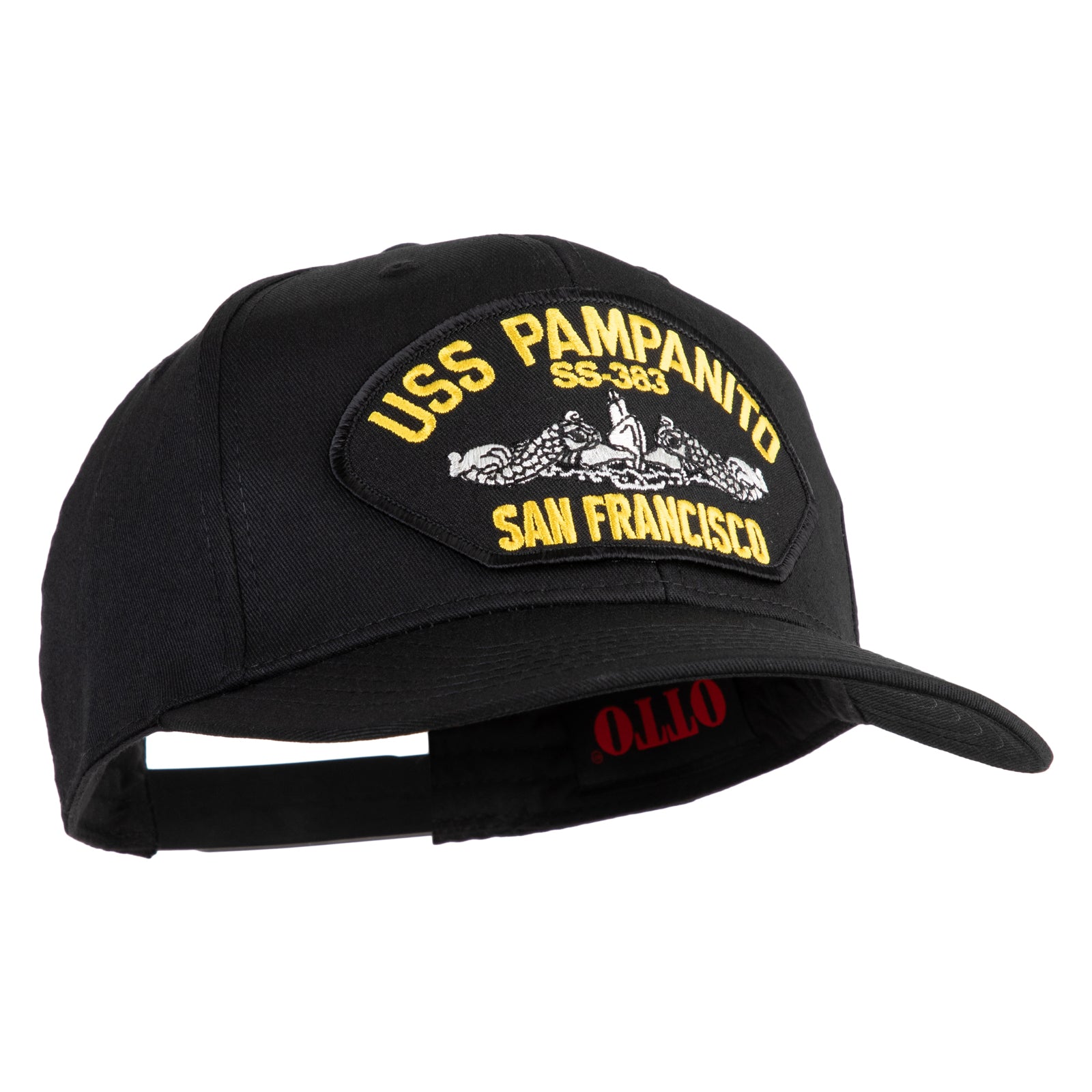USS Pampanito SS-383 Submarine San Francisco Patched Solid Cotton Twill Pro Style Cap - Black OSFM