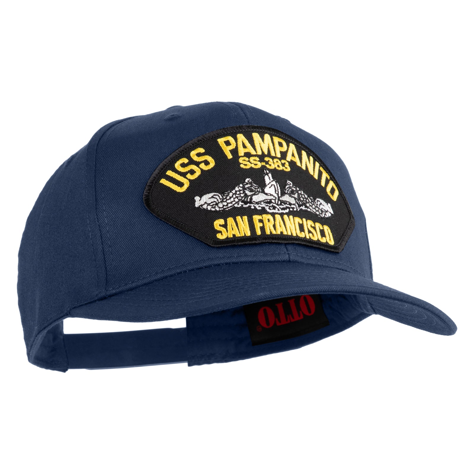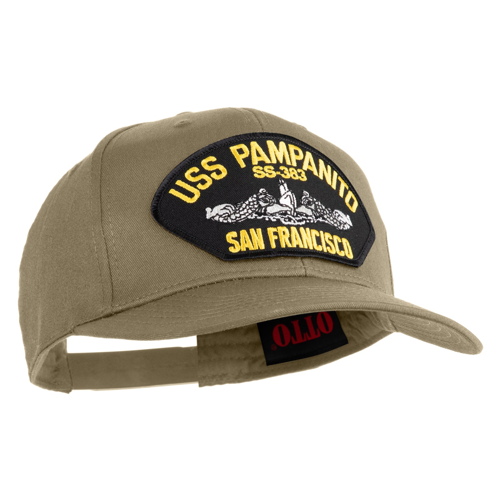 Title, USS Pampanito SS-383 Submarine San Francisco Patched Solid Cotton Twill Pro Style Cap