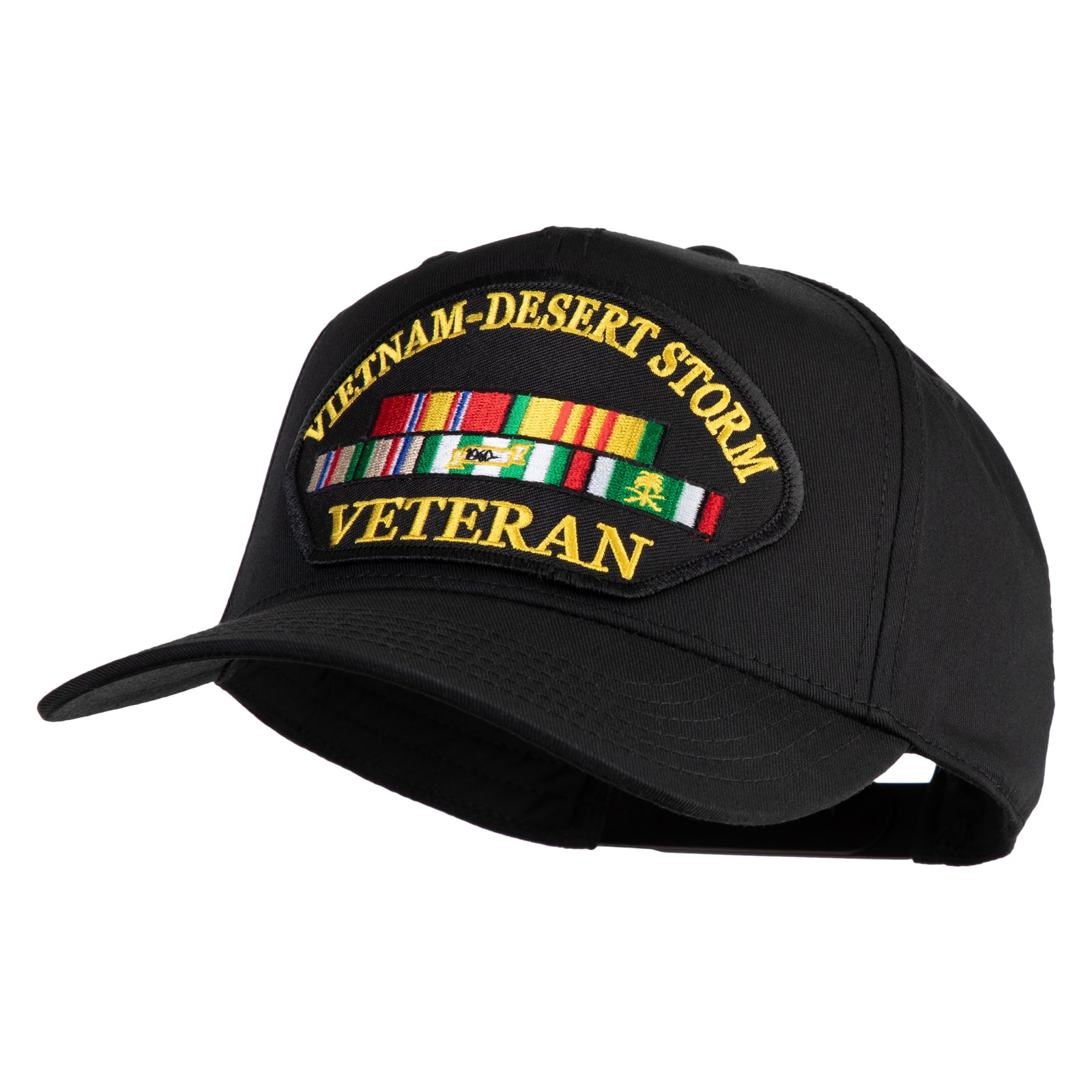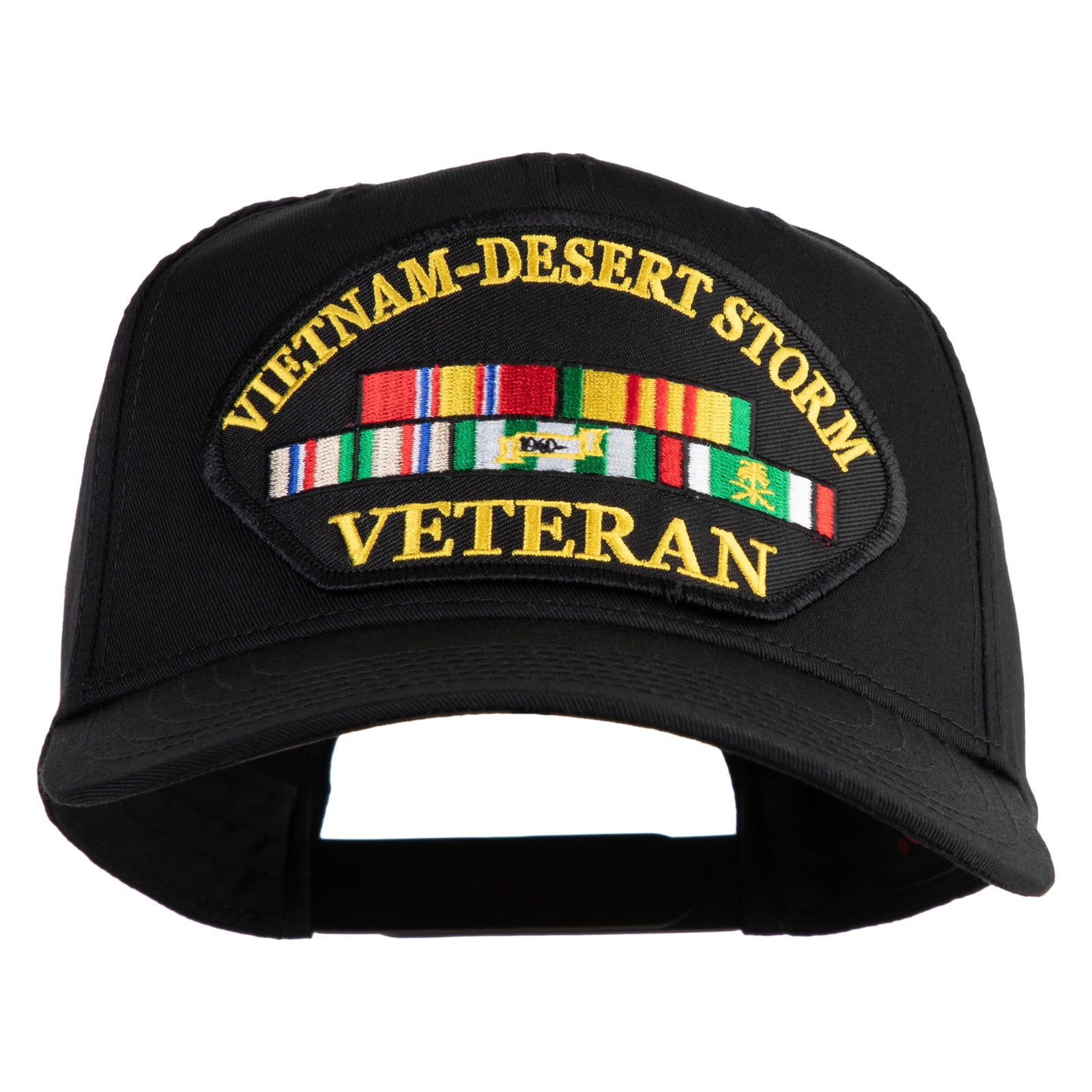 Vietnam-Desert Storm Veteran Patched Solid Cotton Twill 5 Panel Prostyle Snap Cap - Black OSFM