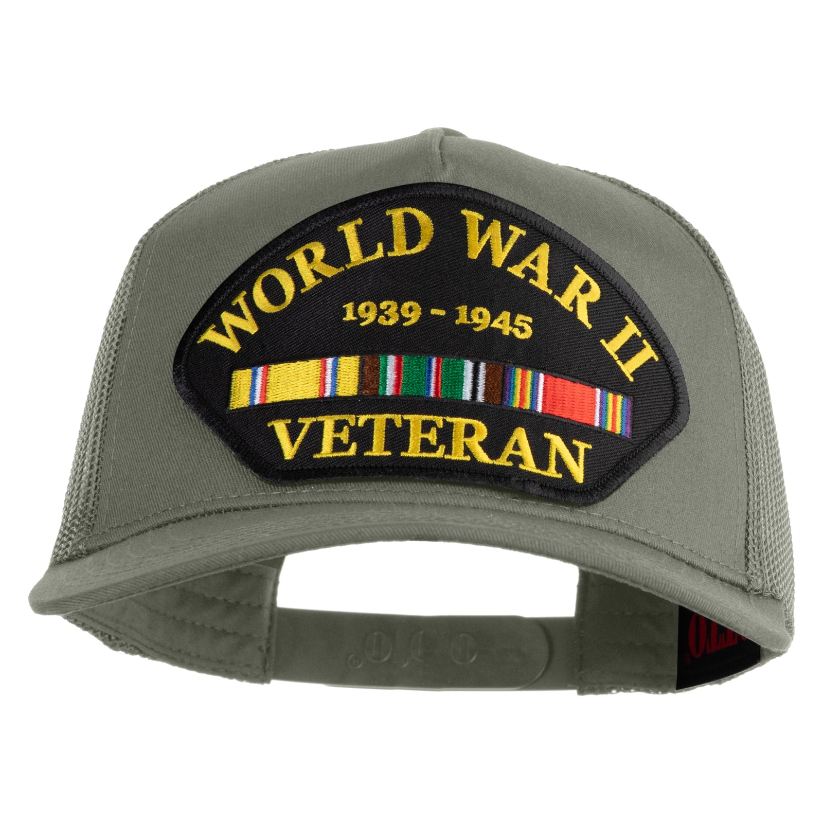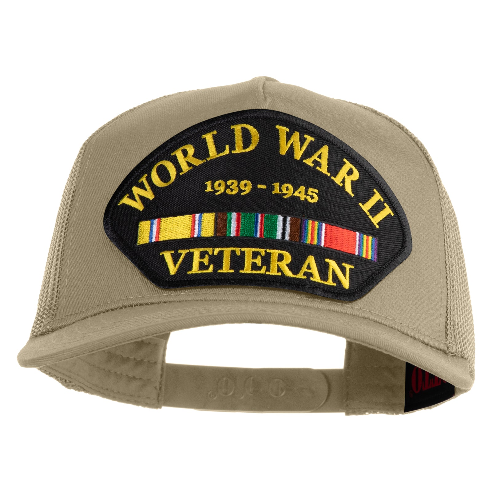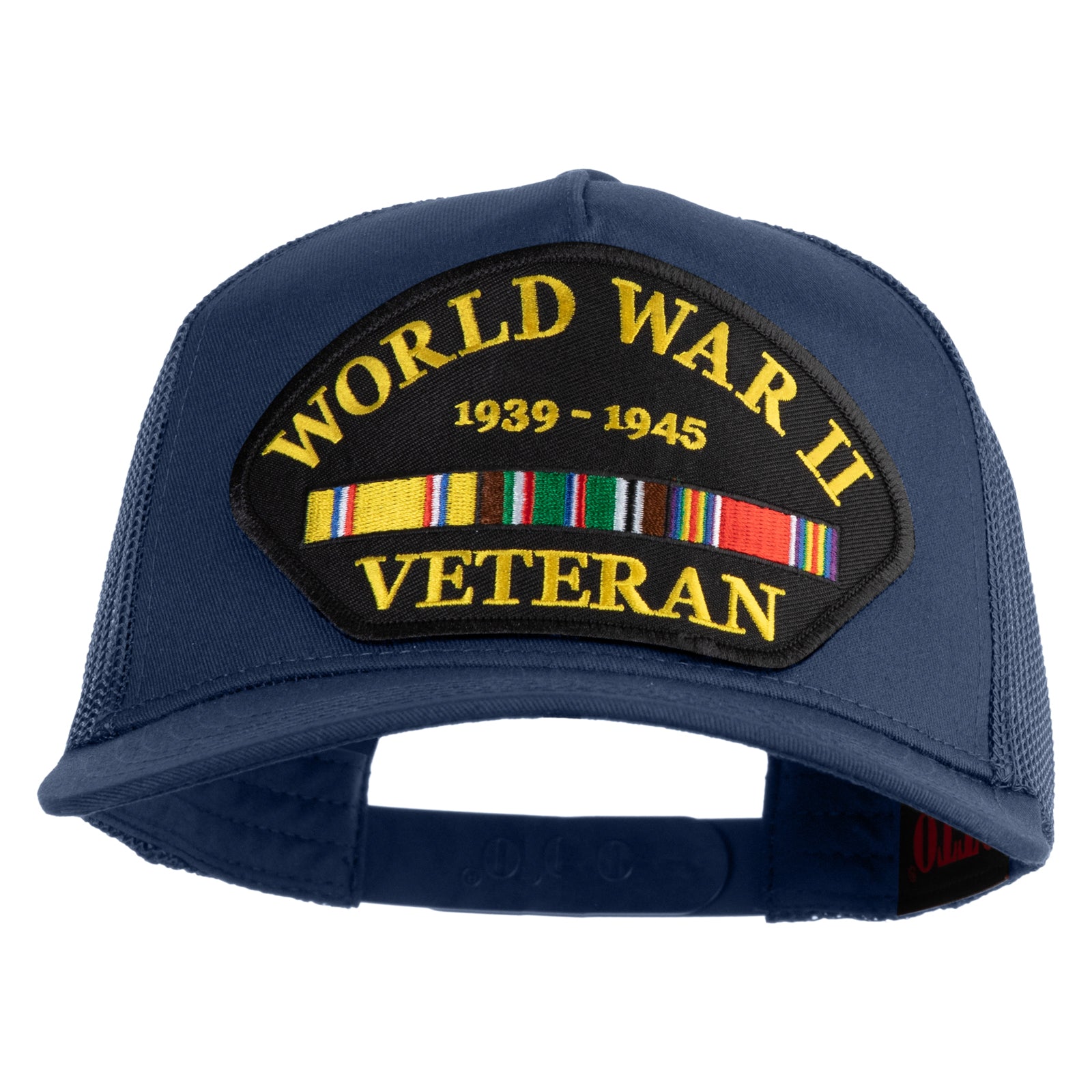 World War II Veteran 1939-1945 Patched Solid Cotton Twill 5 panel Mesh Back Cap