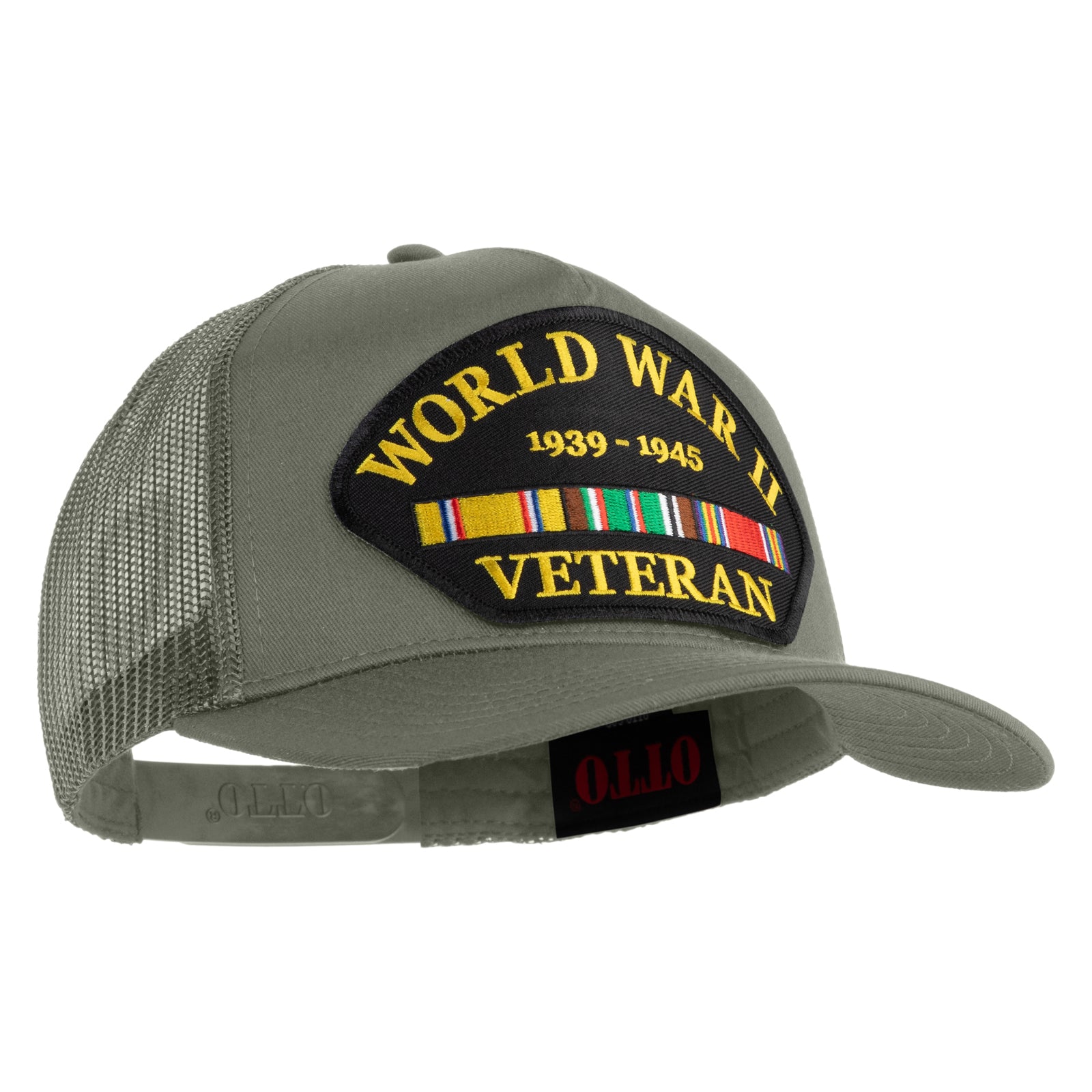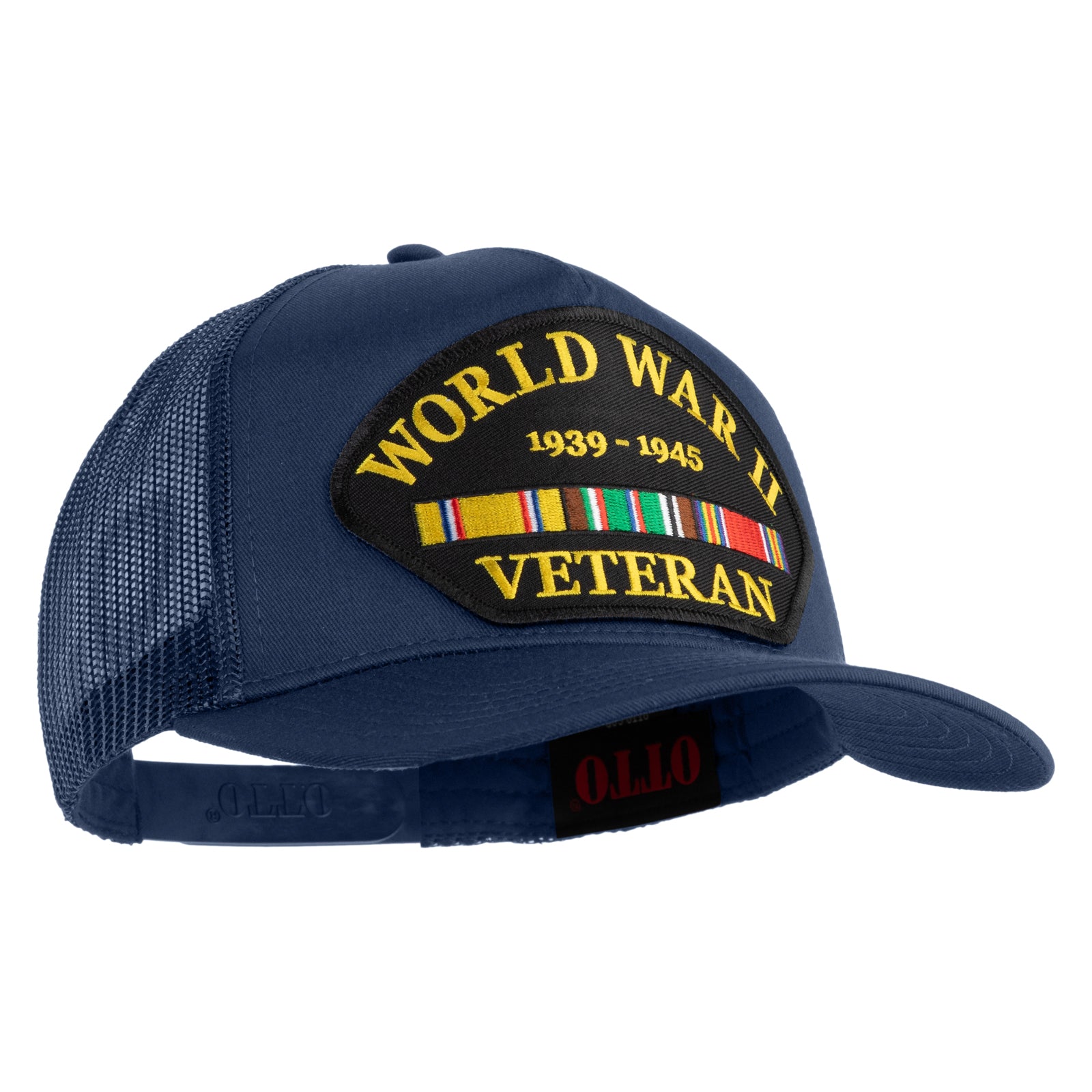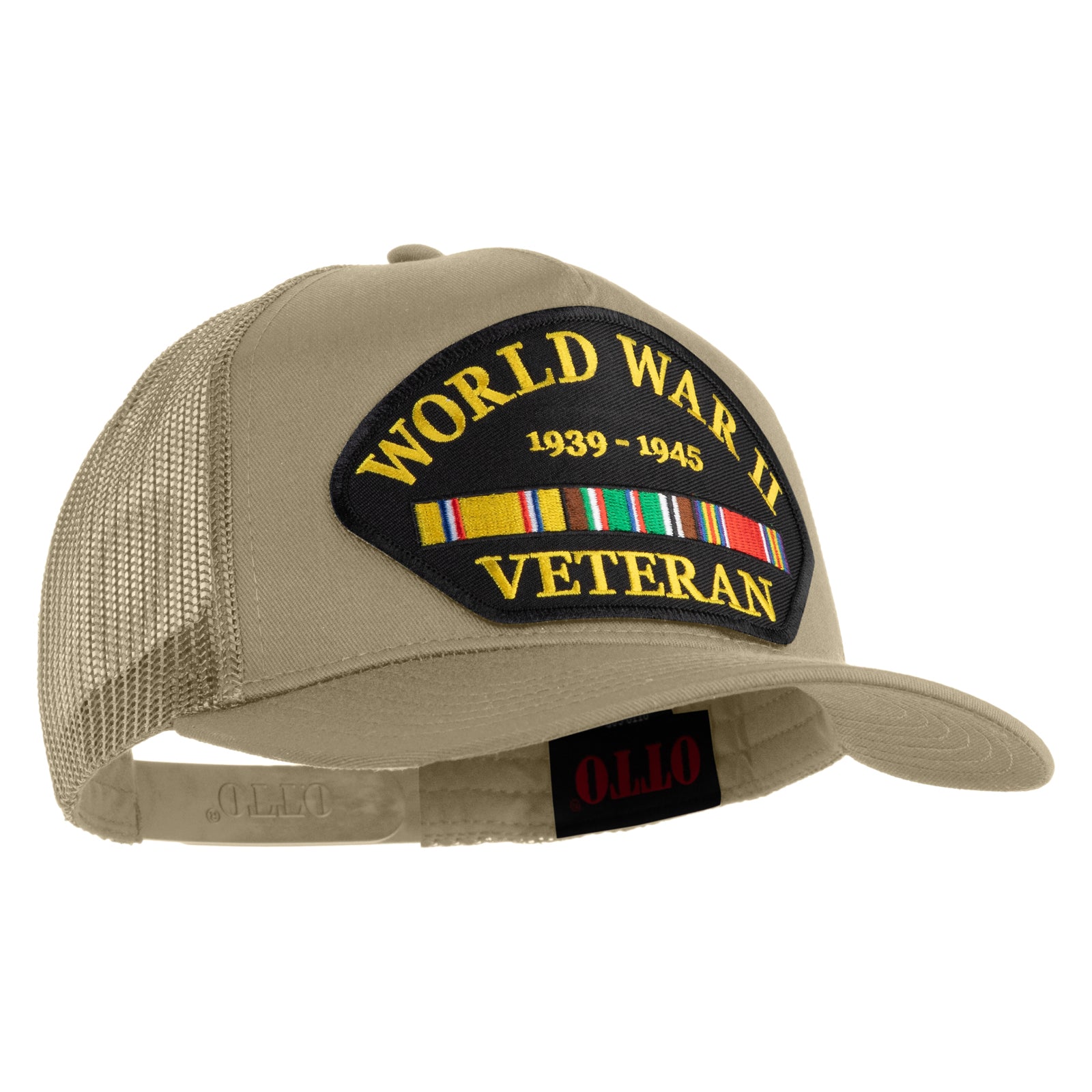 World War II Veteran 1939-1945 Patched Solid Cotton Twill 5 panel Mesh Back Cap