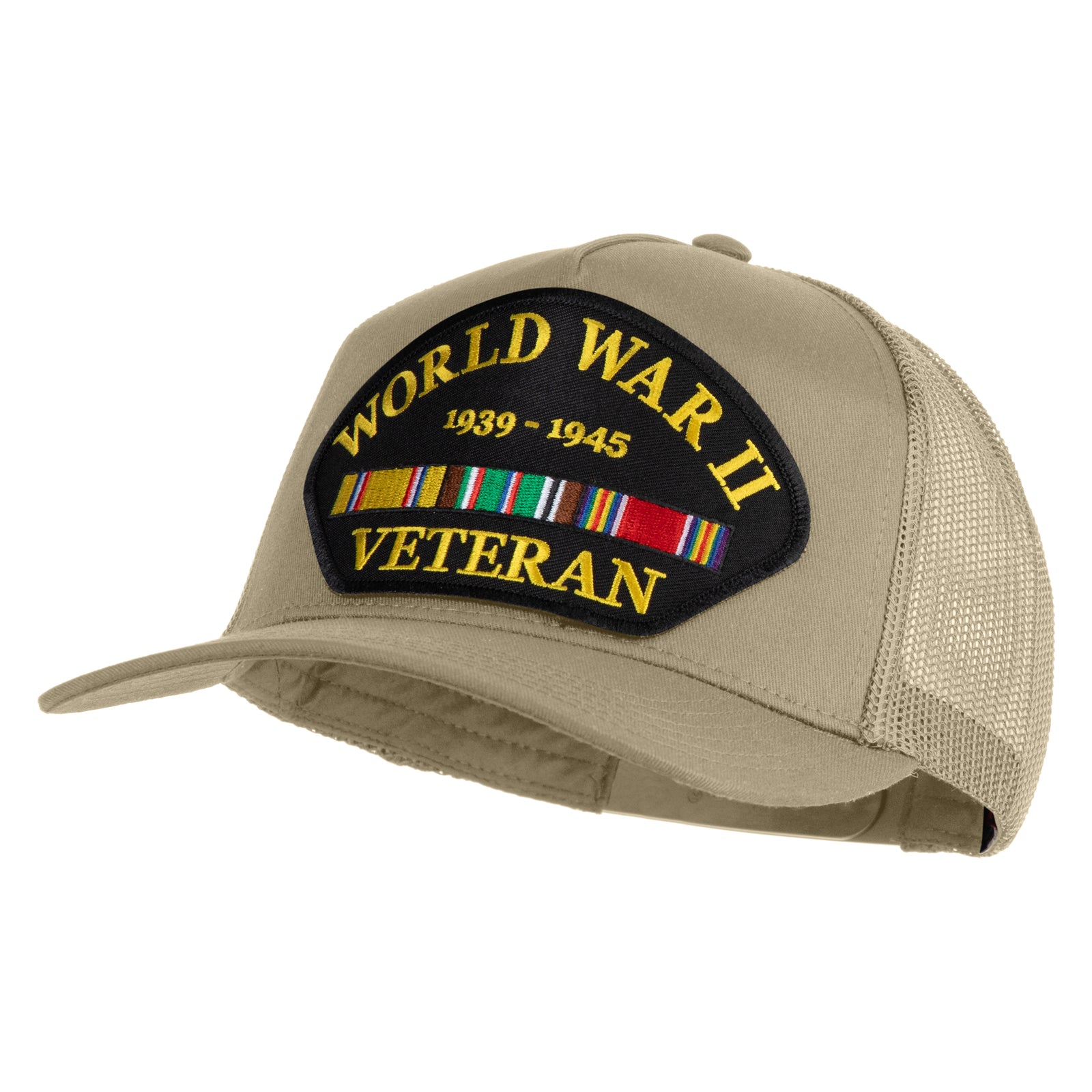 Title, World War II Veteran 1939-1945 Patched Solid Cotton Twill 5 Panel Mesh Back Cap