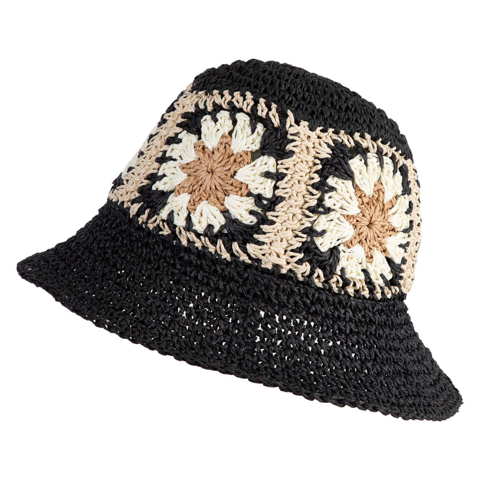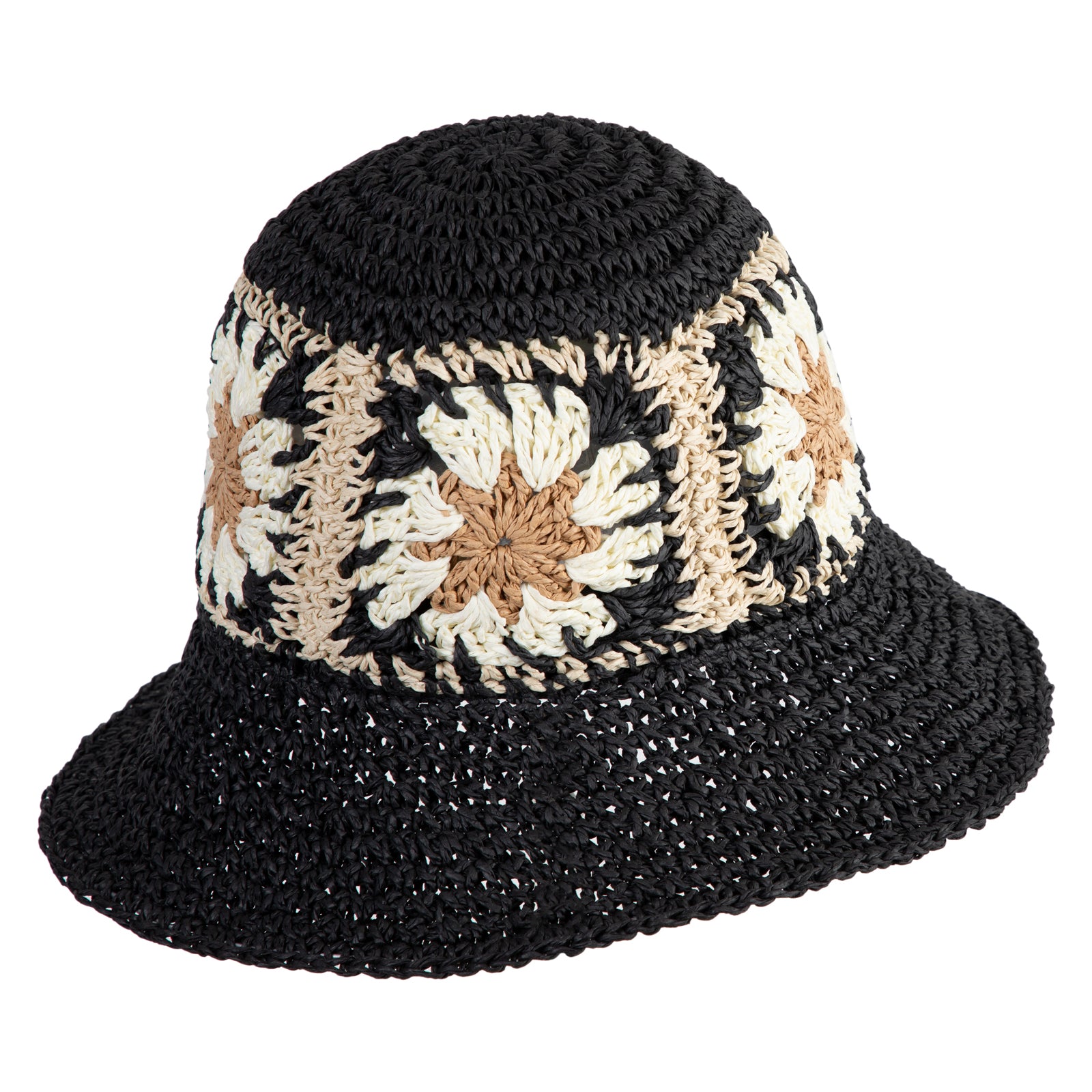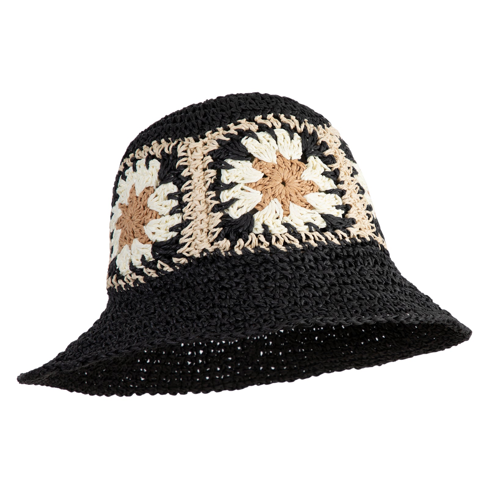 Title, Women's Flower Block 3" Crochet Brim Bucket Hat