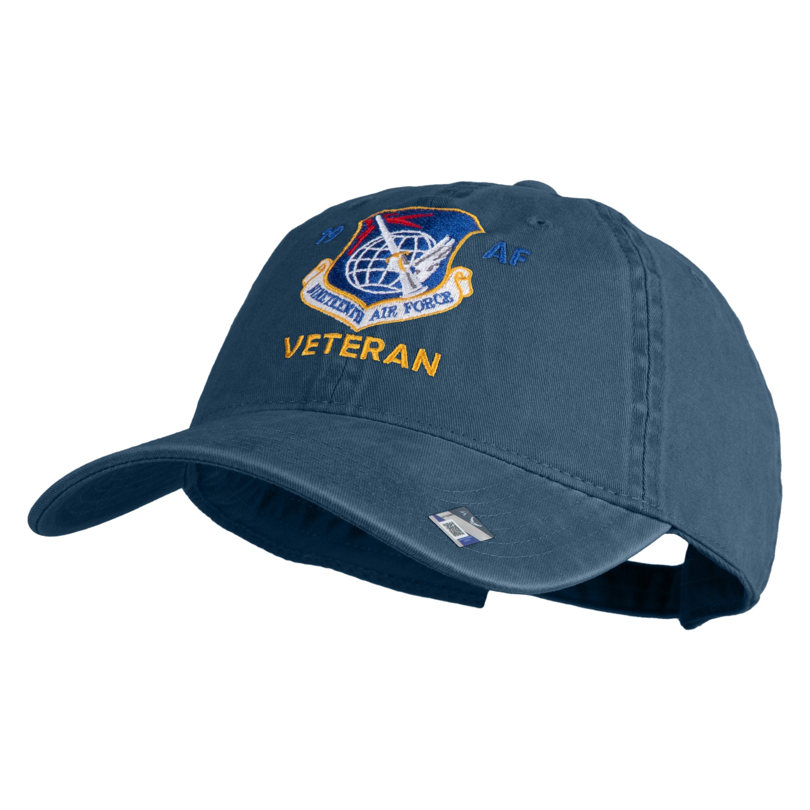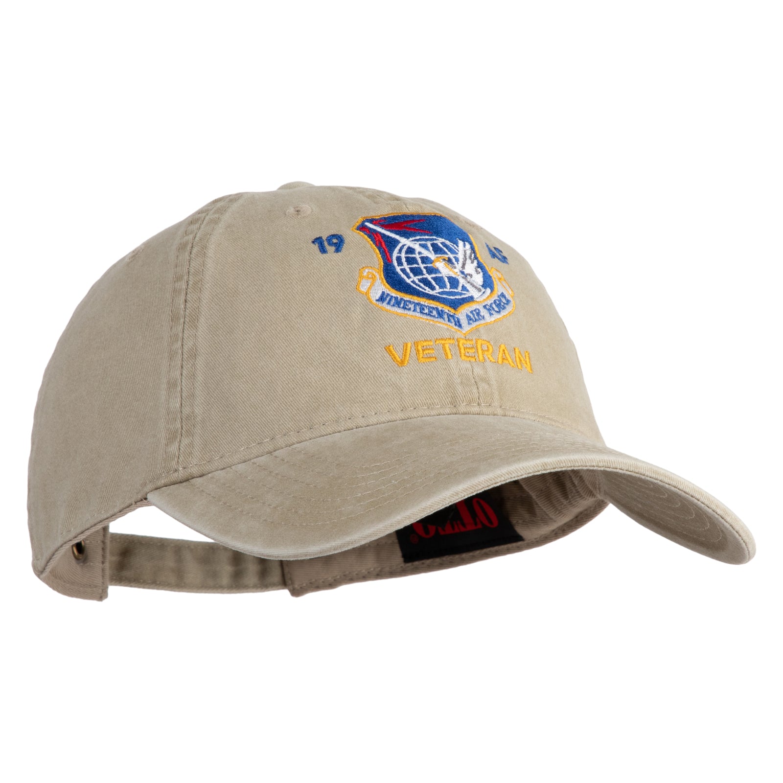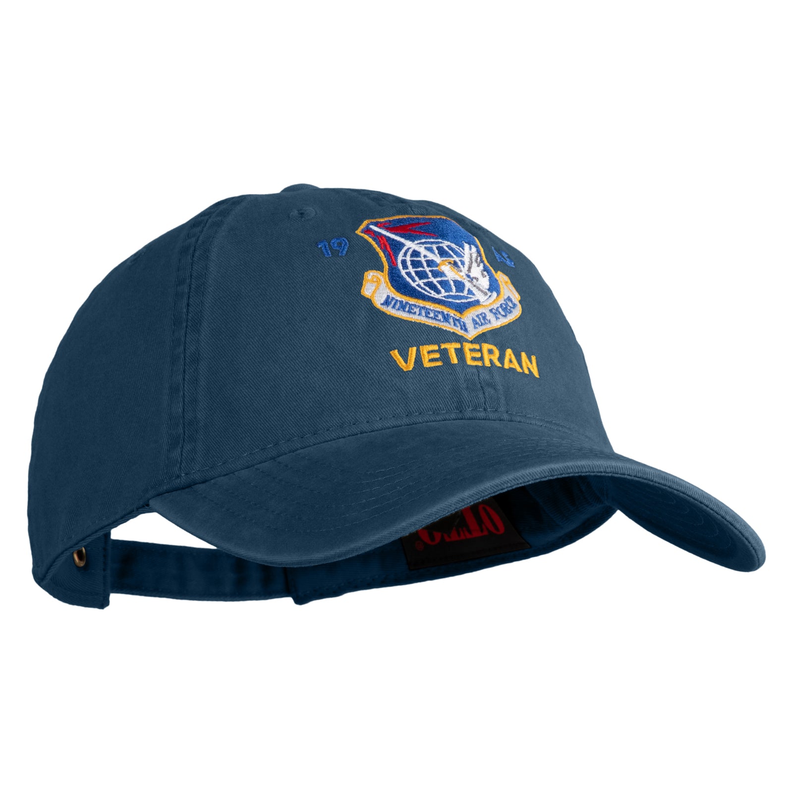 Title, 19 AF Nineteenth Air Force Veteran Embroidered Washed Solid Pigment Dyed Cotton Twill Brass Buckle Cap