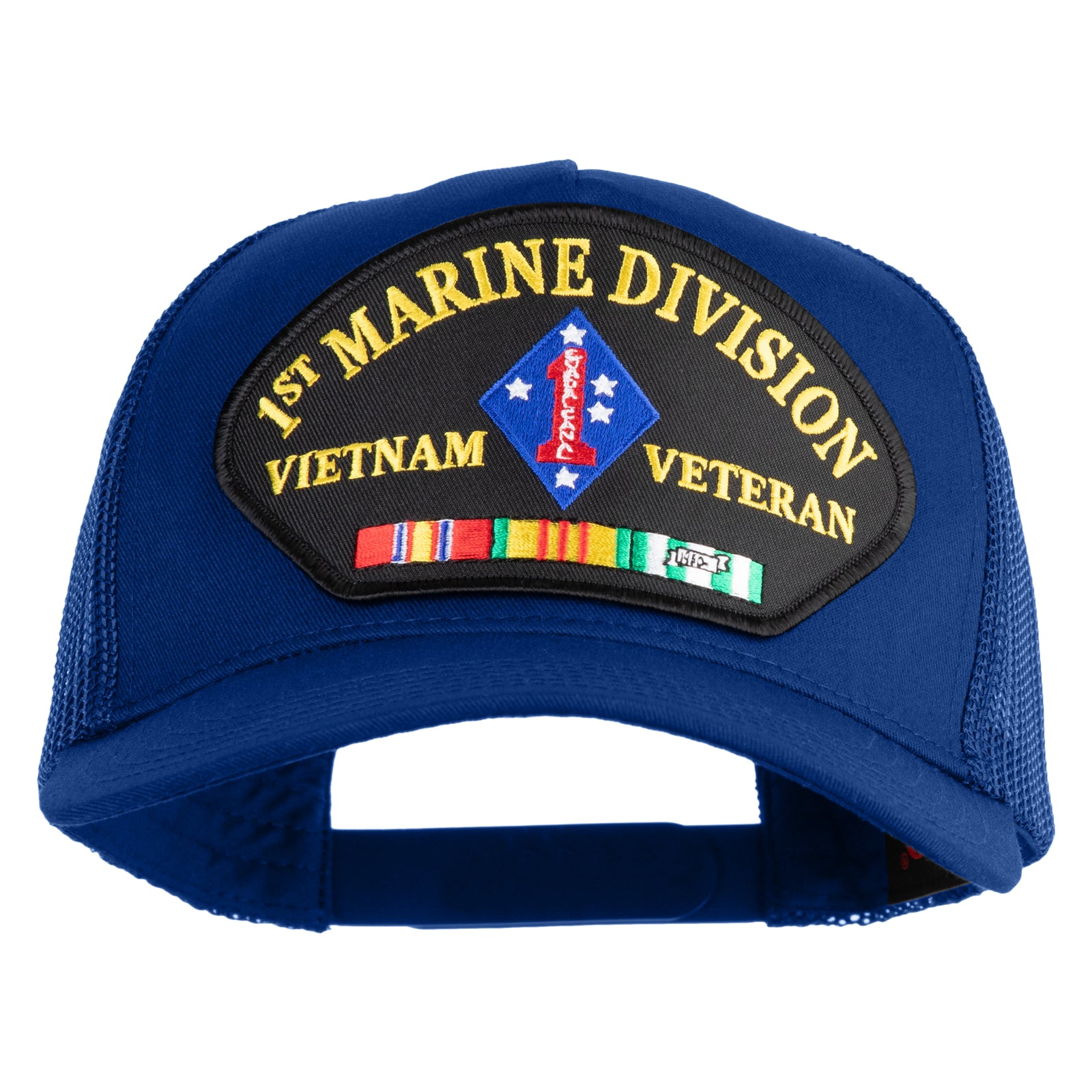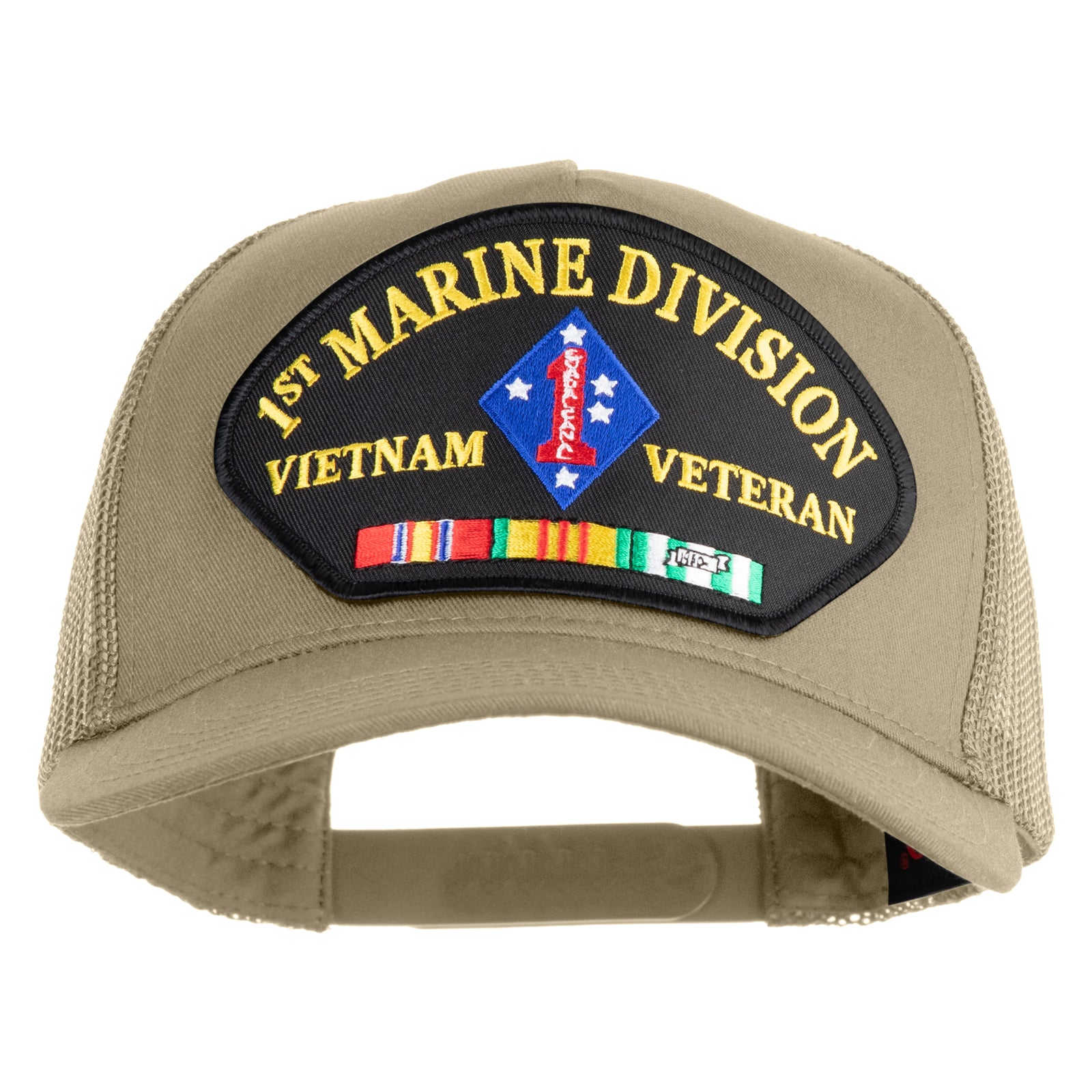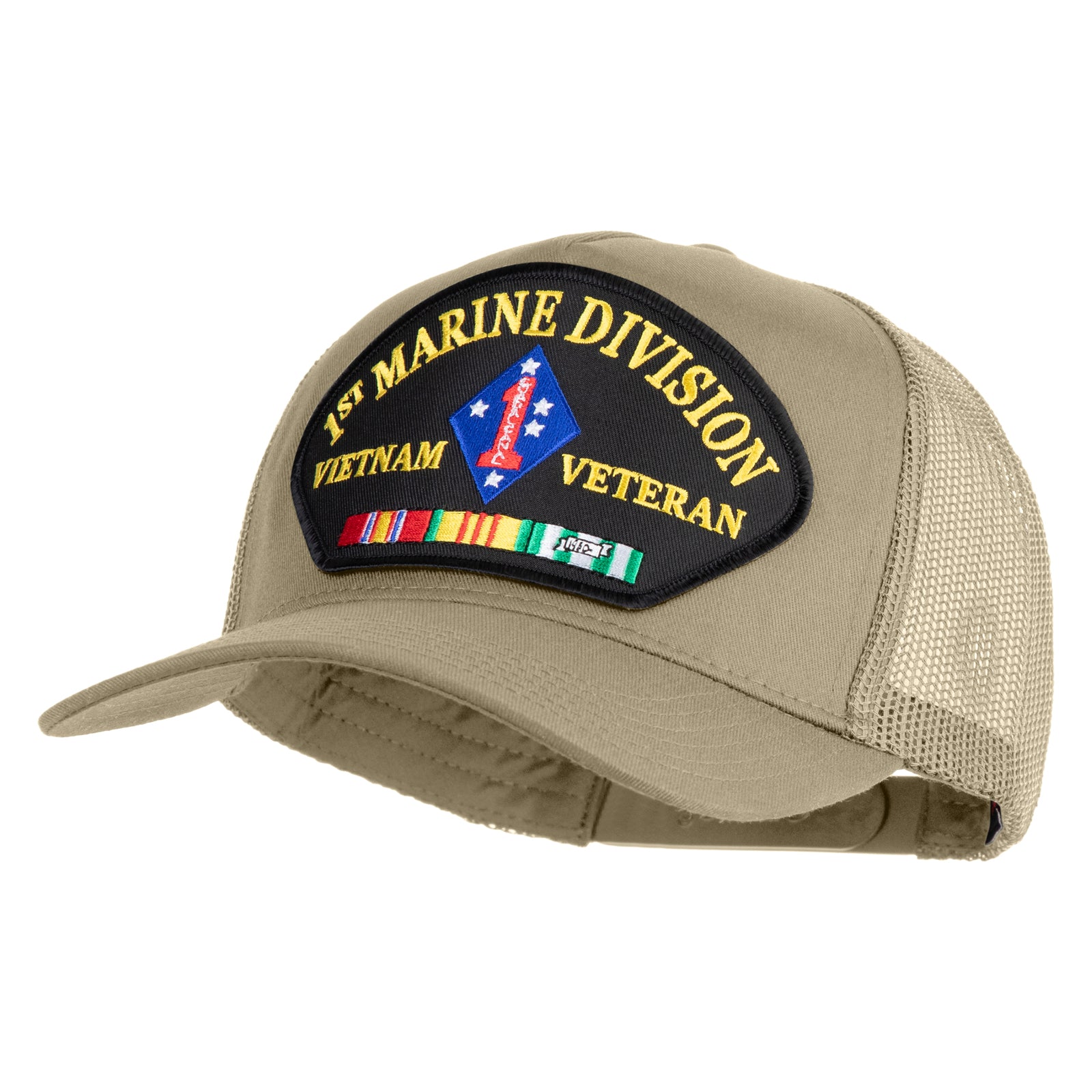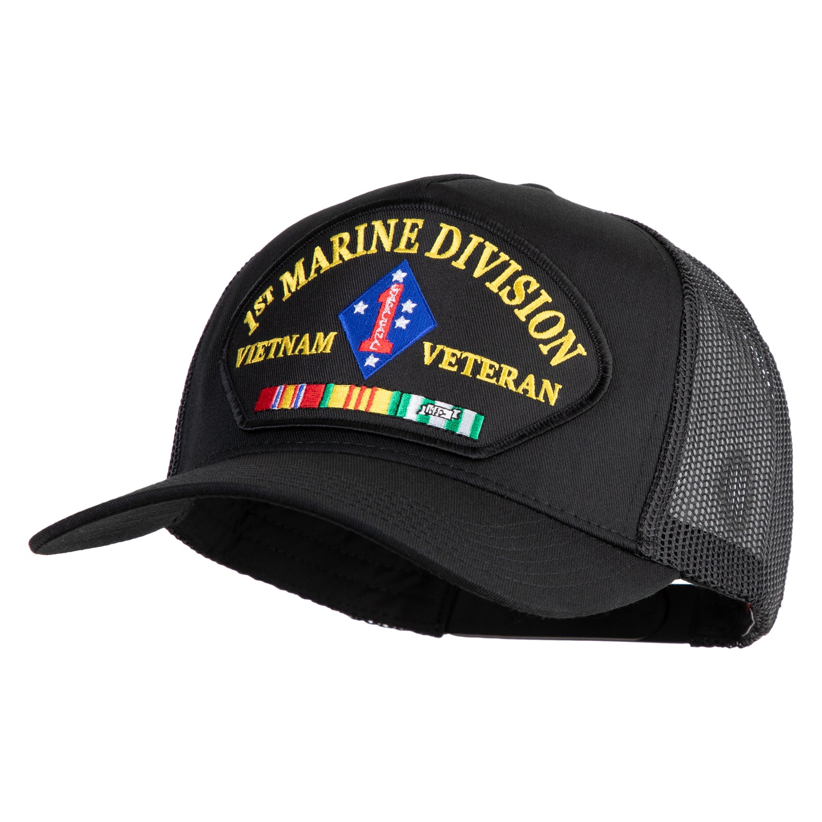 Title, 1st Marine Division Vietnam Veteran Patched Solid Cotton Twill 5 Panel Mesh Back Cap