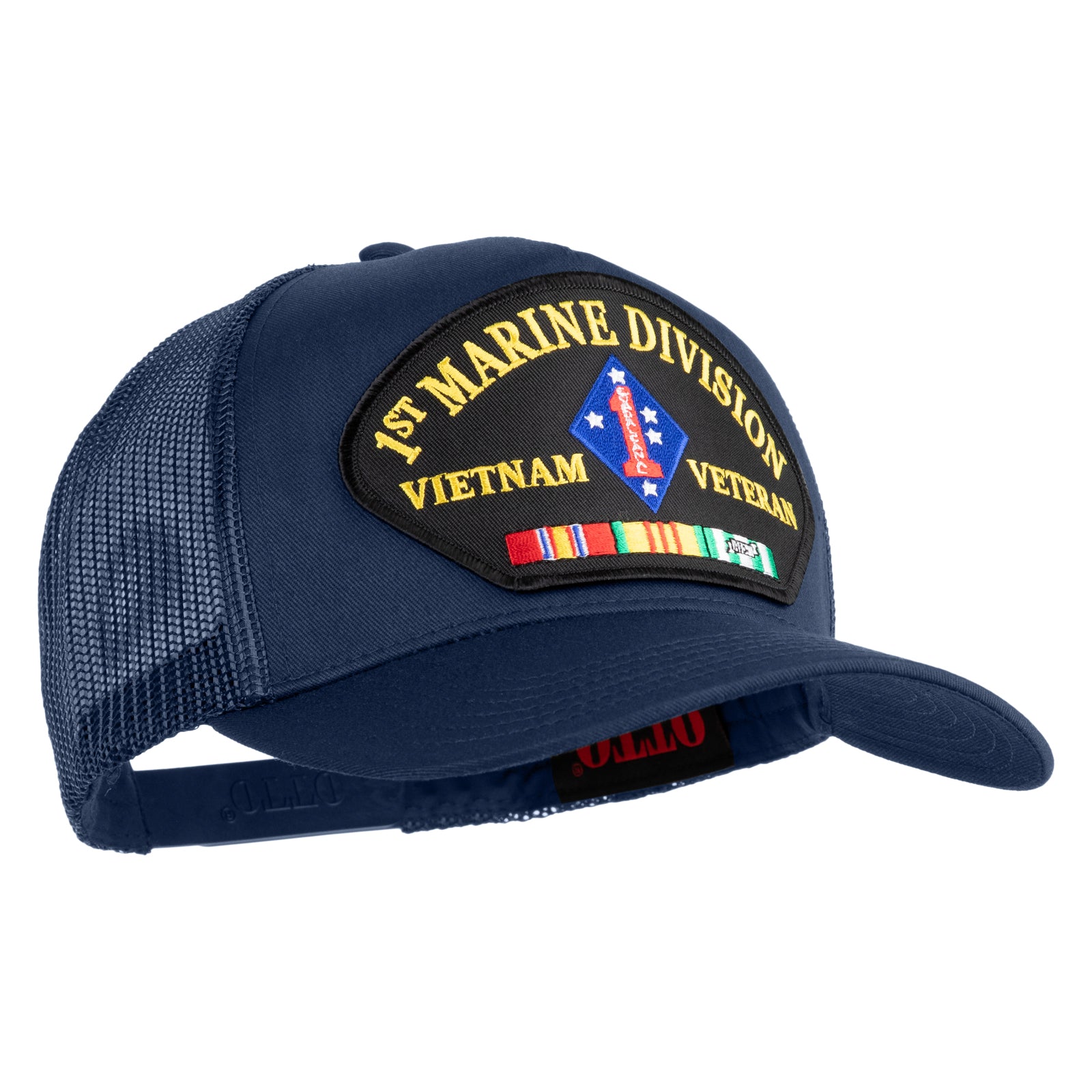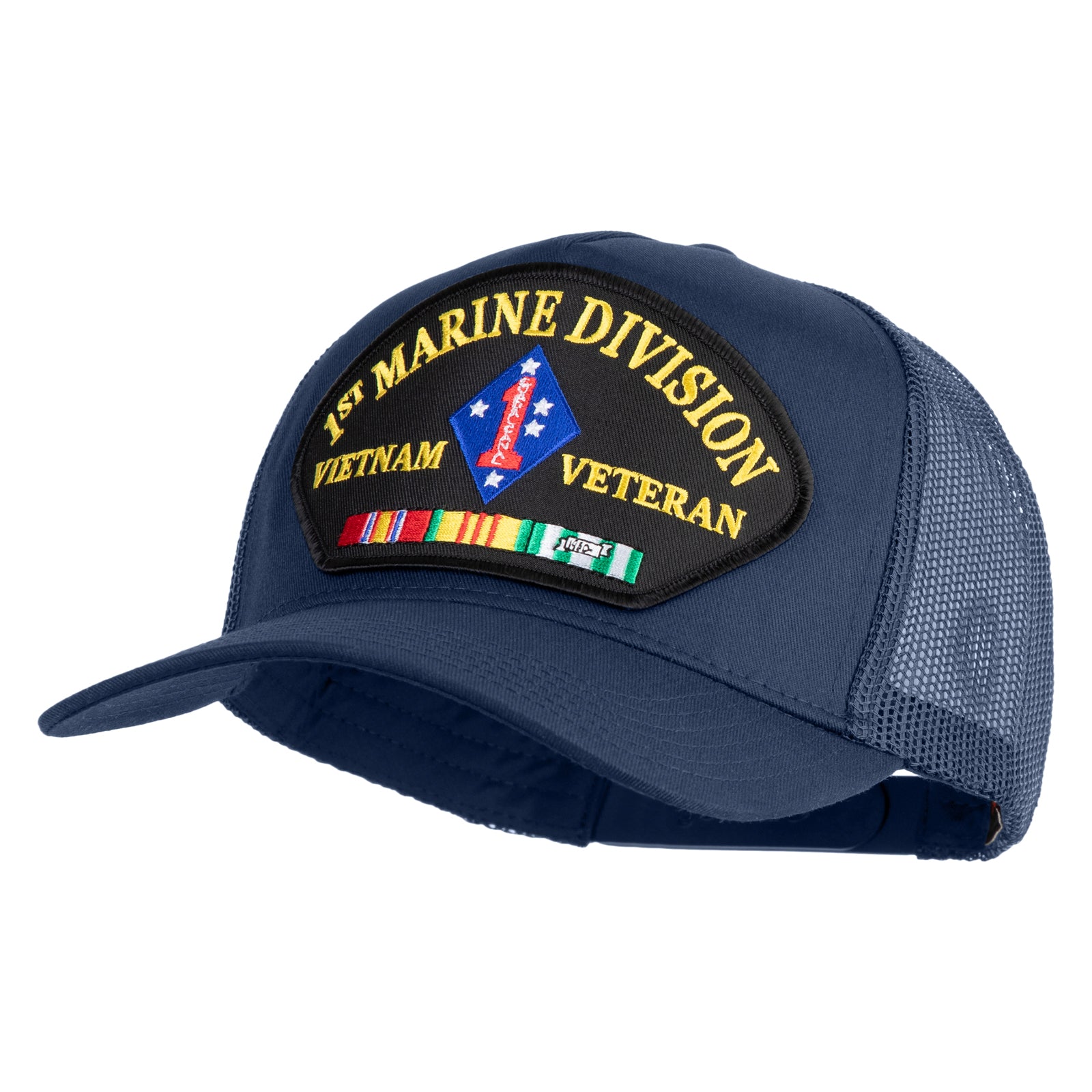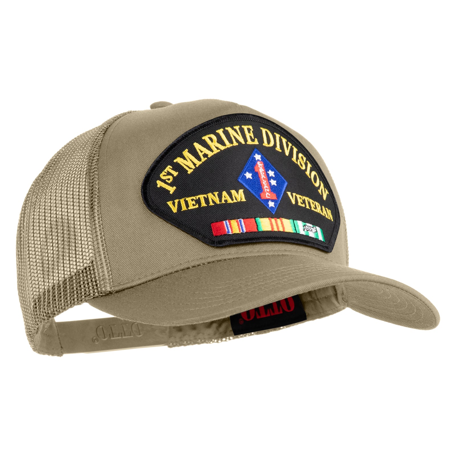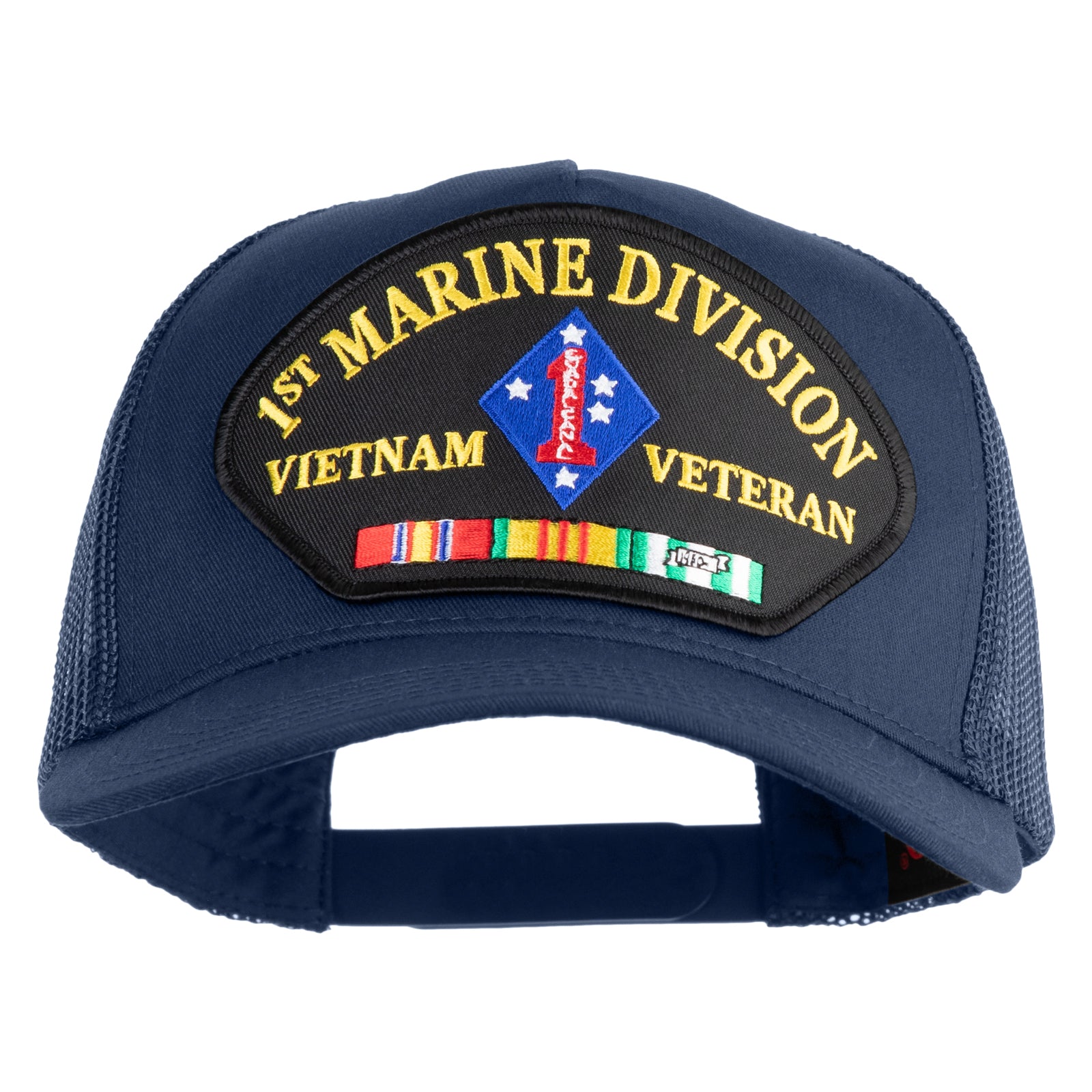 Title, 1st Marine Division Vietnam Veteran Patched Solid Cotton Twill 5 Panel Mesh Back Cap