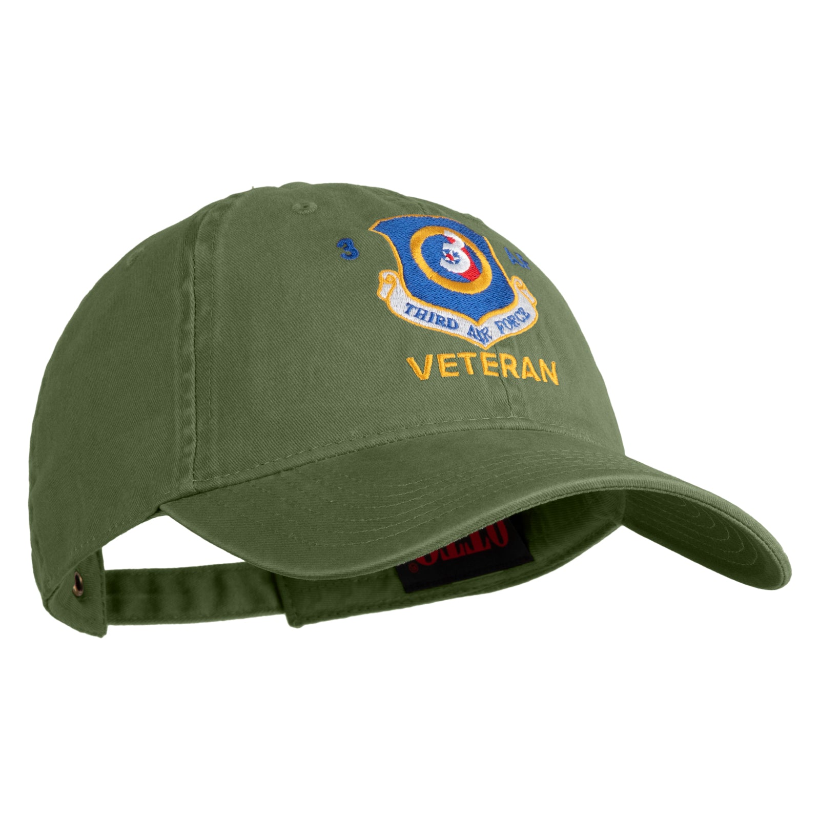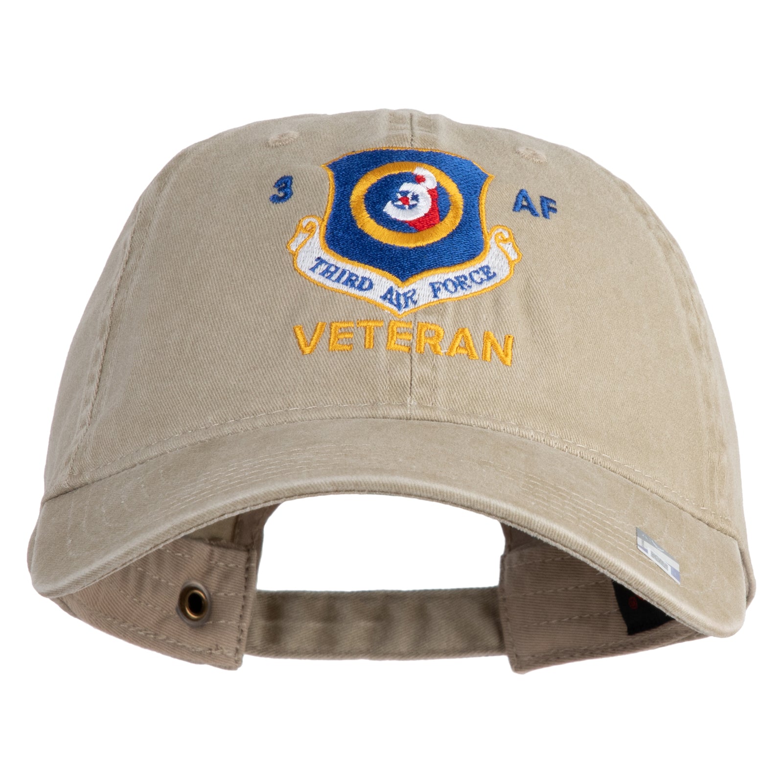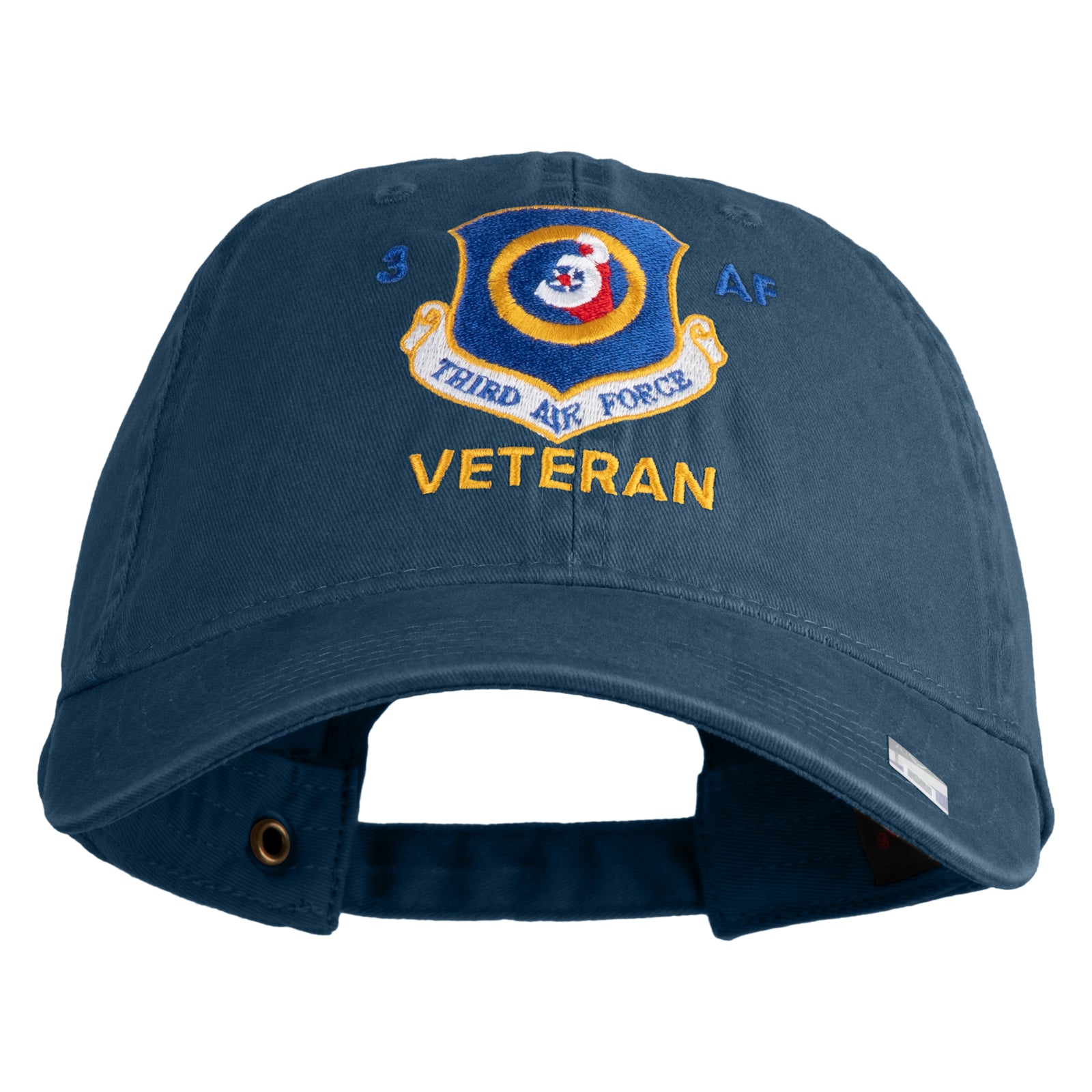 Title, 3 AF Third Air Force Veteran Embroidered Washed Solid Pigment Dyed Cotton Twill Brass Buckle Cap