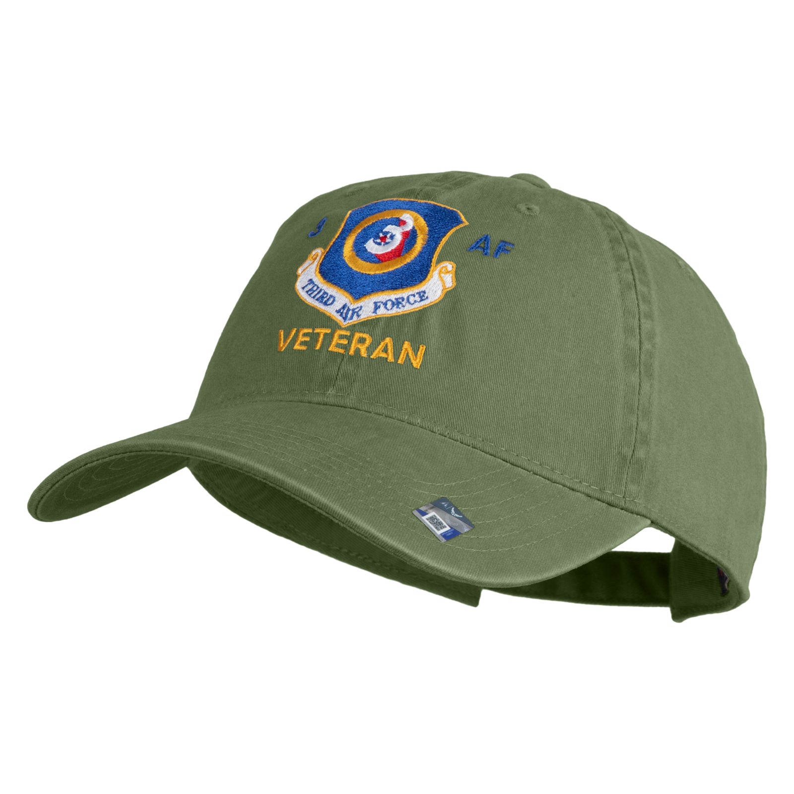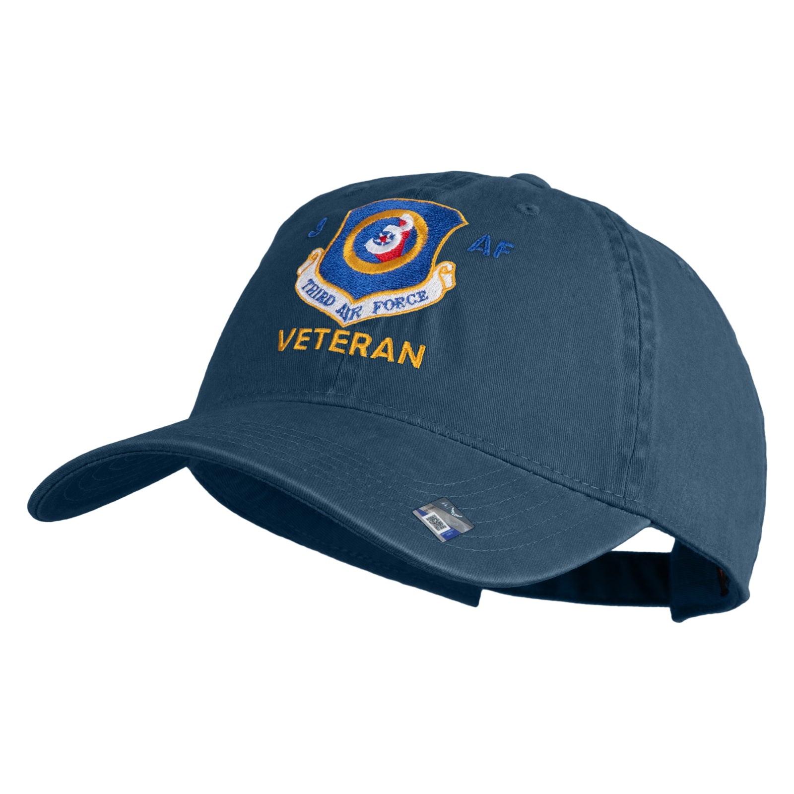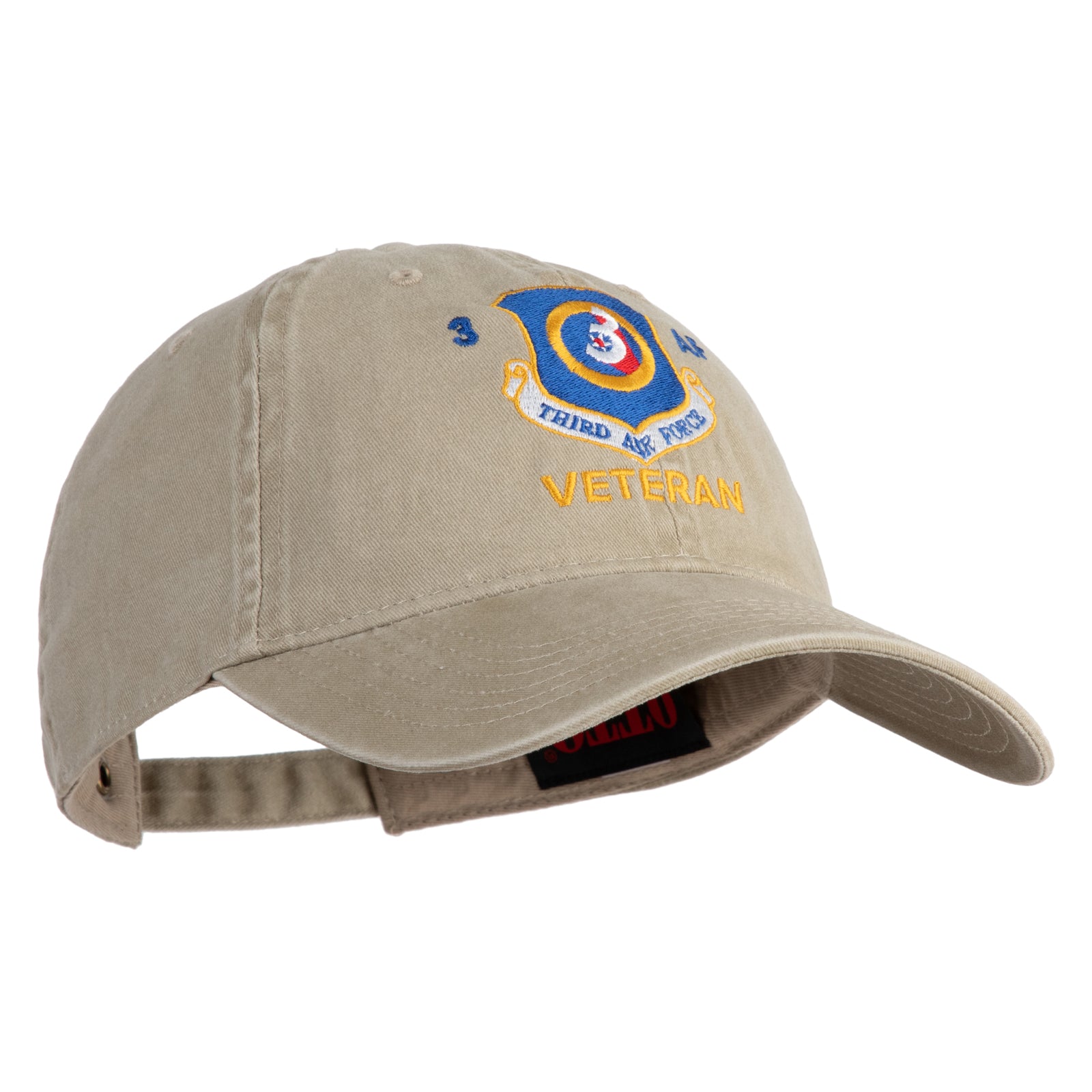 Title, 3 AF Third Air Force Veteran Embroidered Washed Solid Pigment Dyed Cotton Twill Brass Buckle Cap