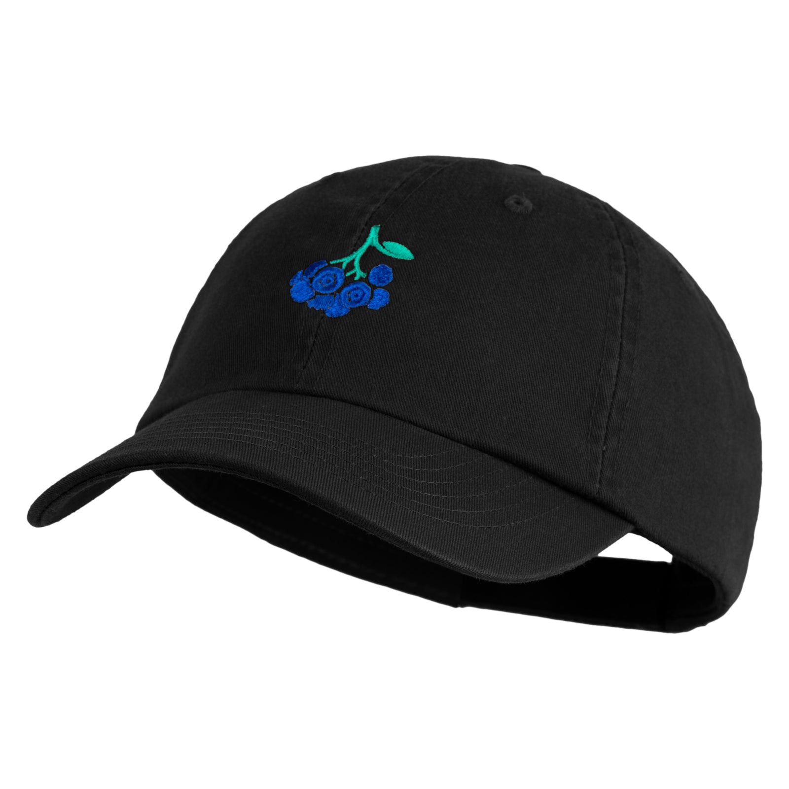 Title, Blueberries Embroidered Low Profile Pet Spun Washed Cap