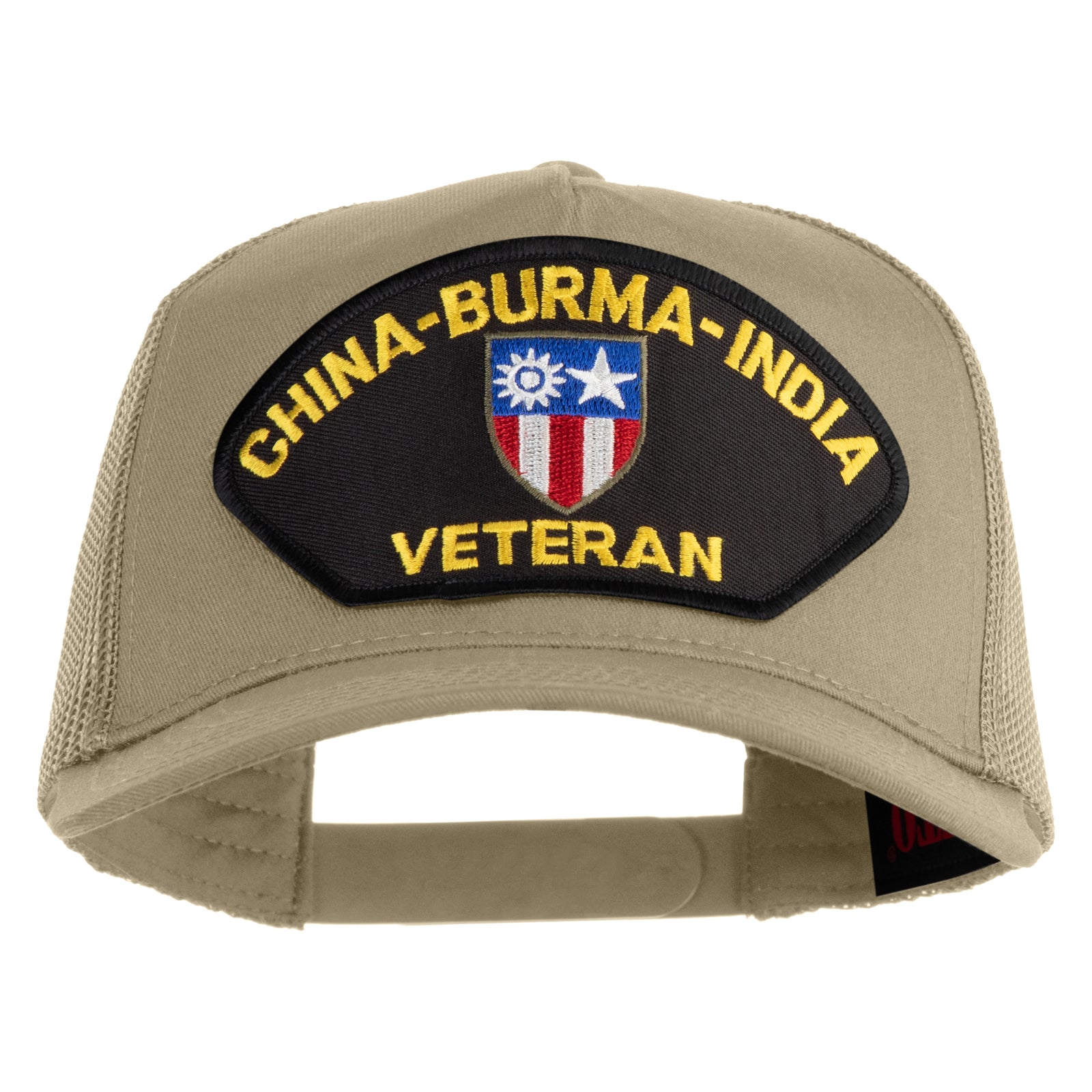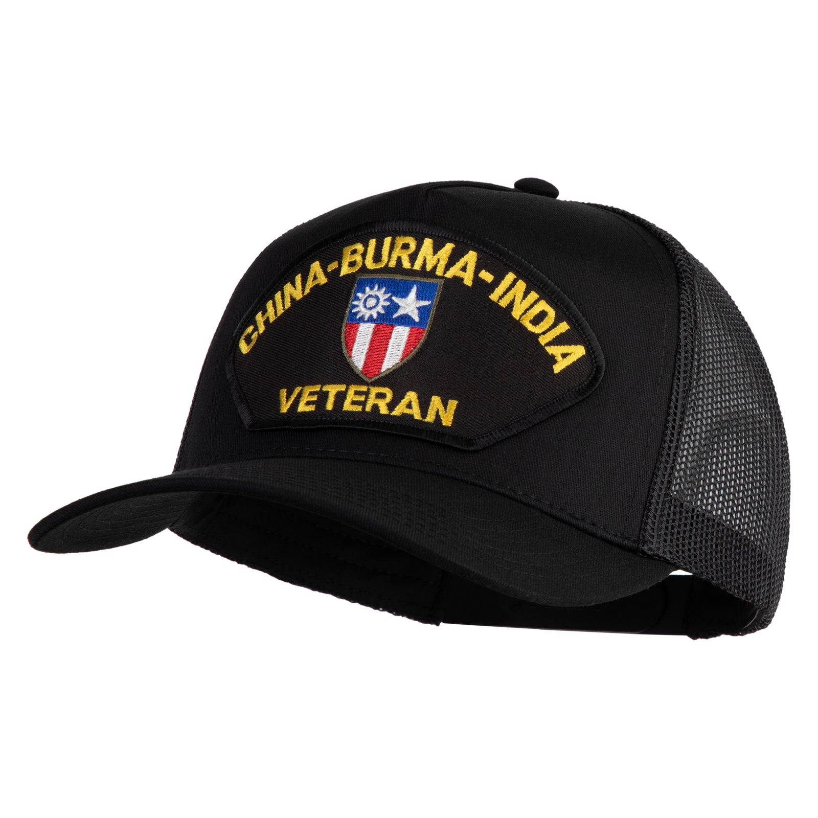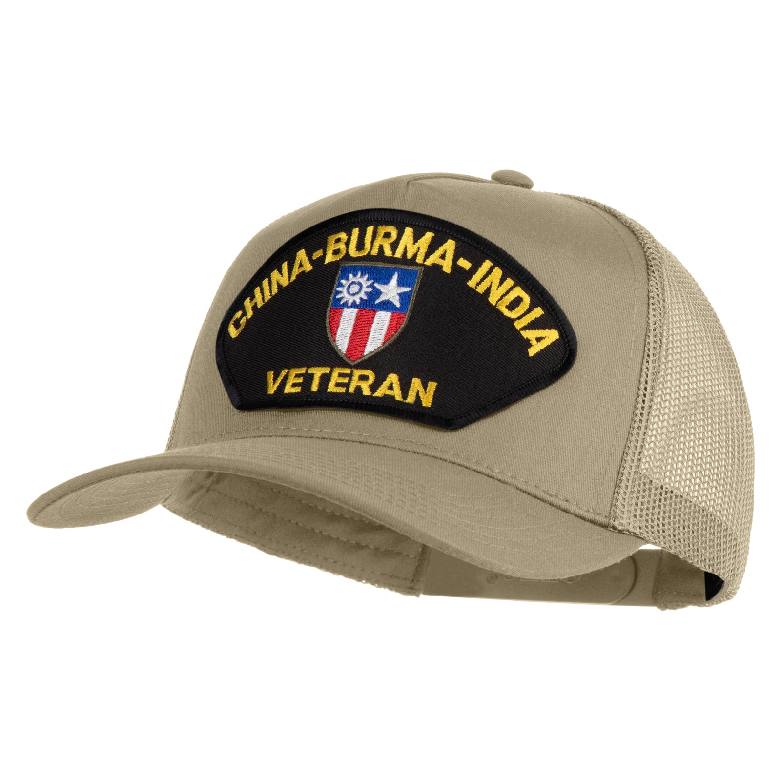 Title, China-Burma-India Veteran Patched Solid Cotton Twill 5 Panel Mesh Back Cap