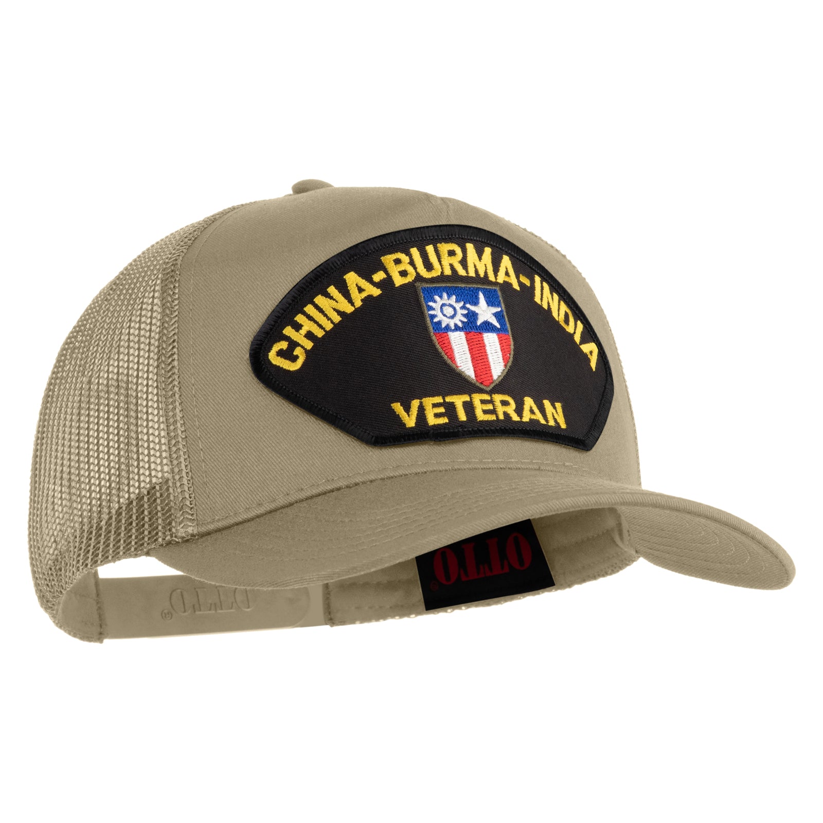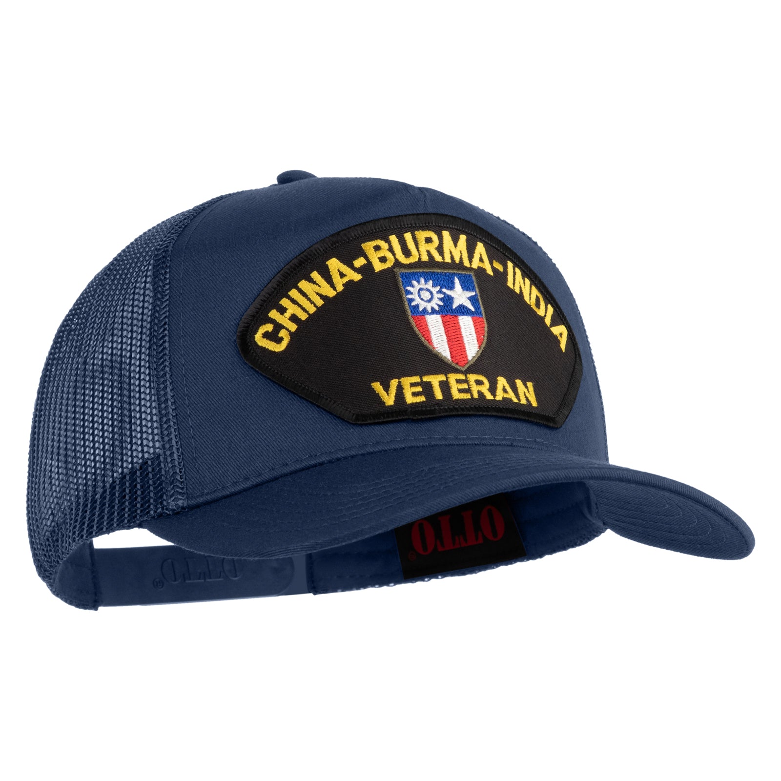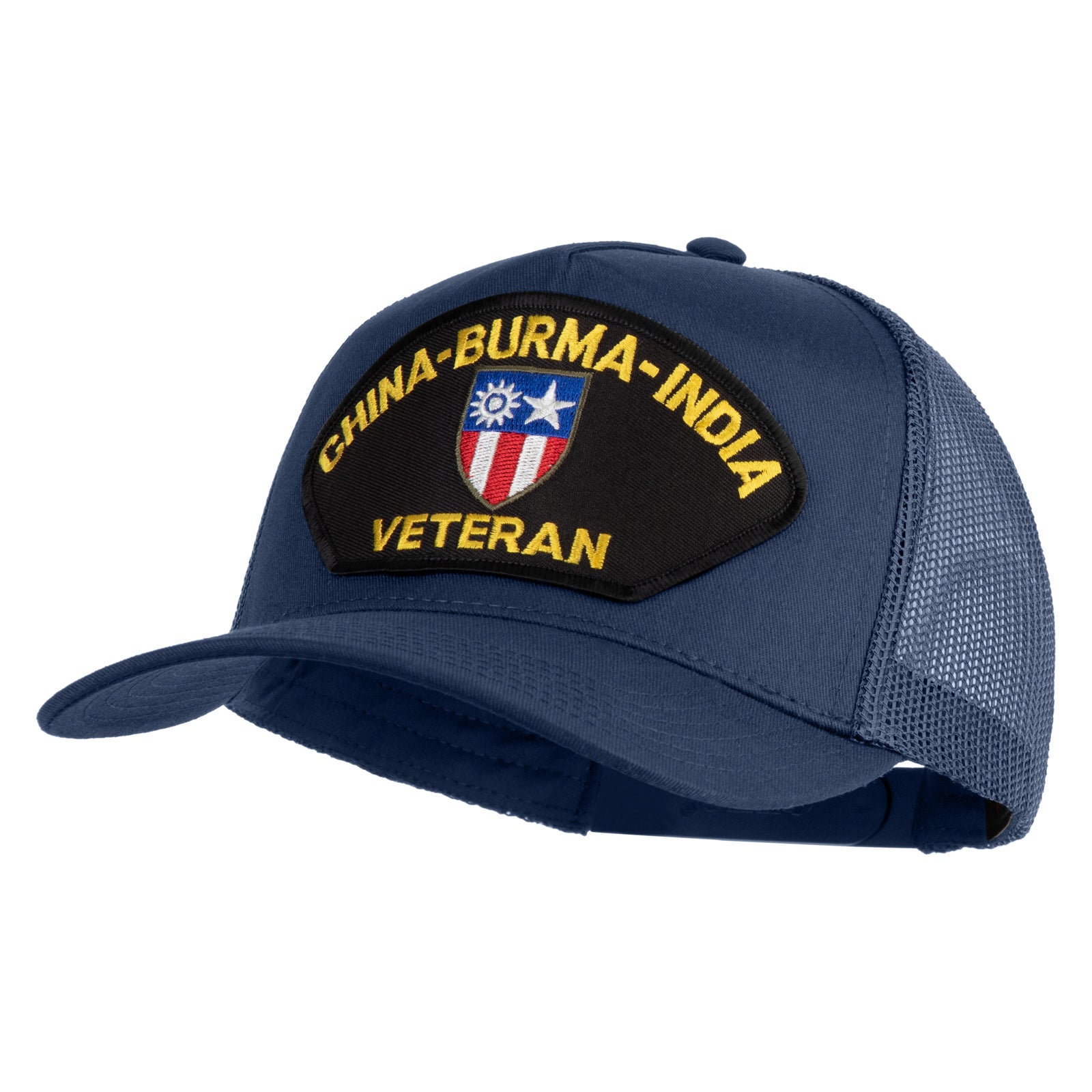 Title, China-Burma-India Veteran Patched Solid Cotton Twill 5 Panel Mesh Back Cap