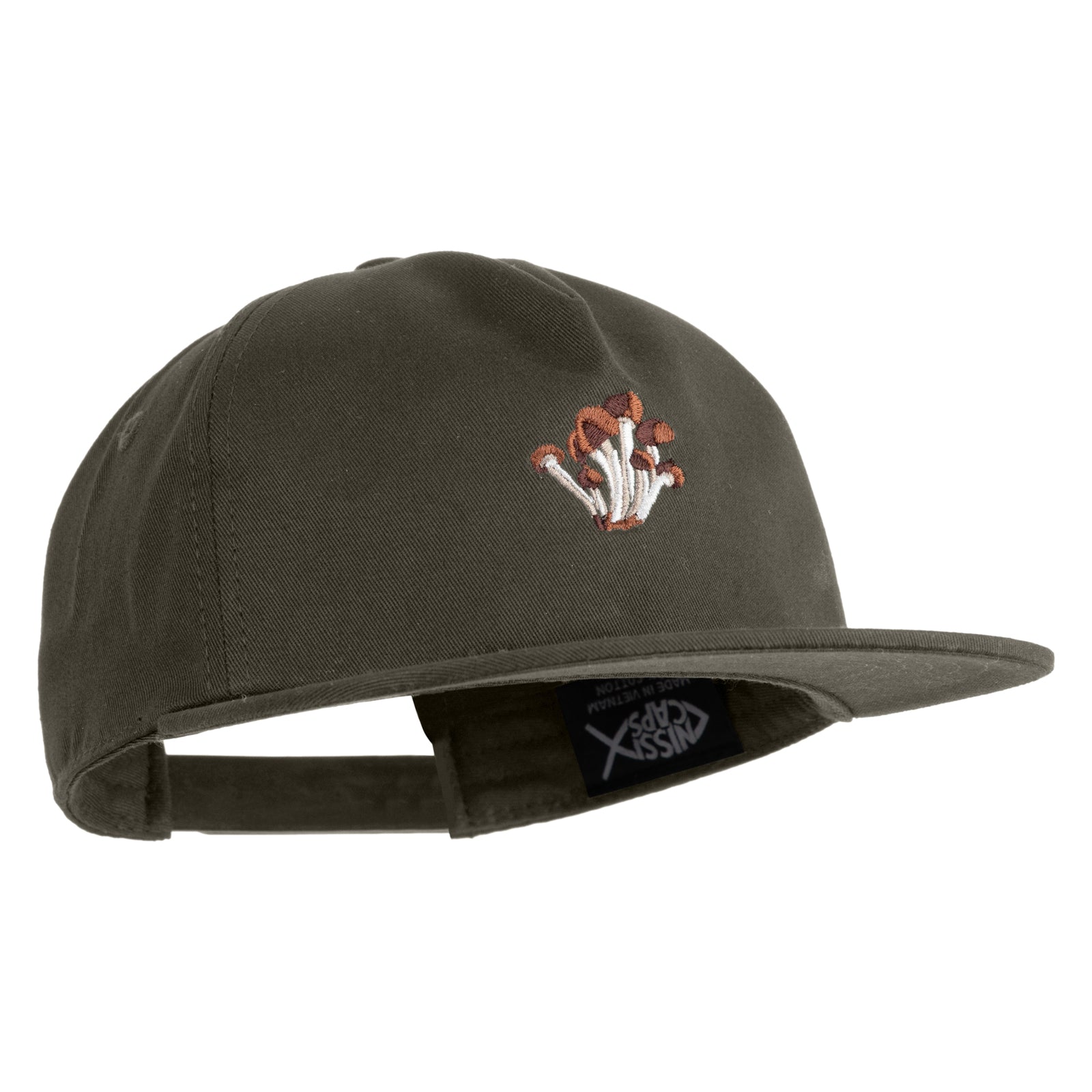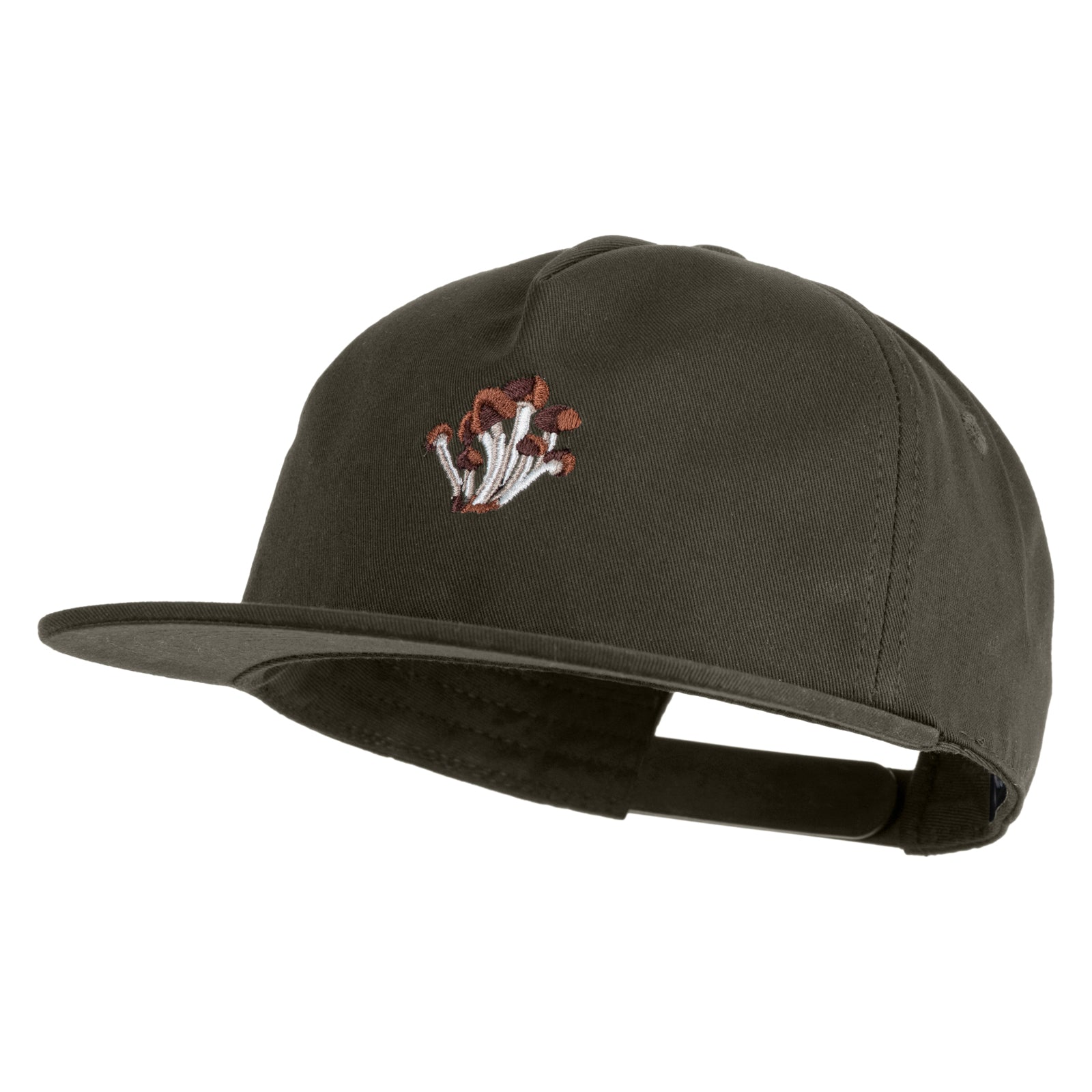 Title, Cluster Mushroom Embroidered 5 Panel Cotton High Profile Flat Bill Unstructured Cap