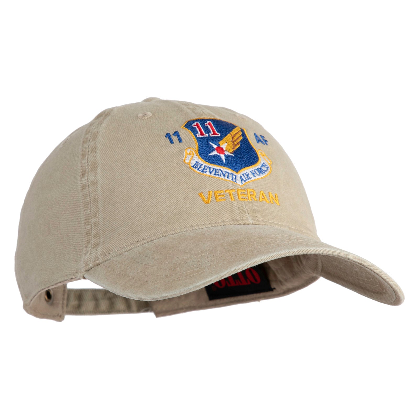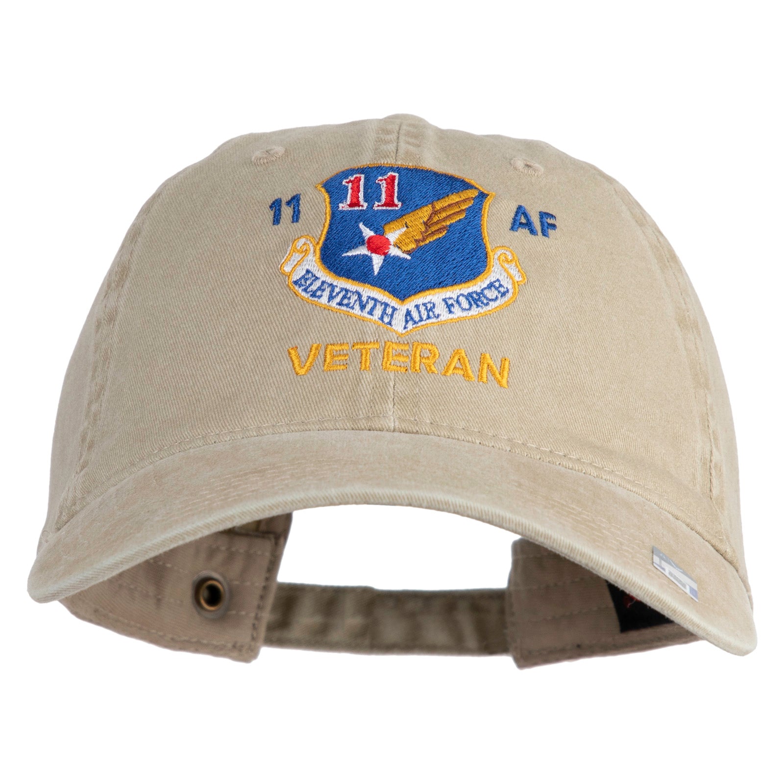 Eleventh Air Force Veteran Embroidered Washed Solid Pigment Dyed Cotton Twill Brass Buckle Cap - Khaki OSFM