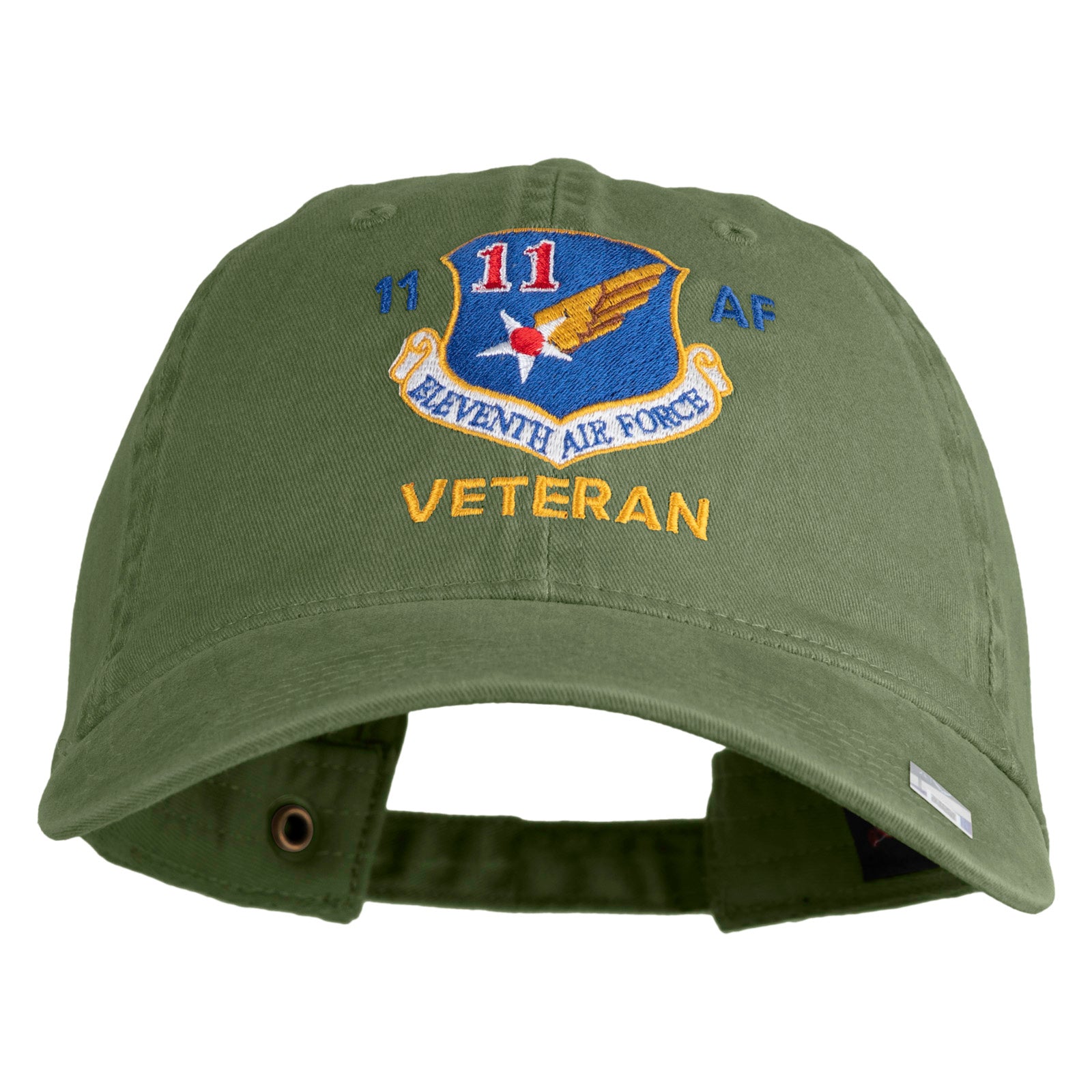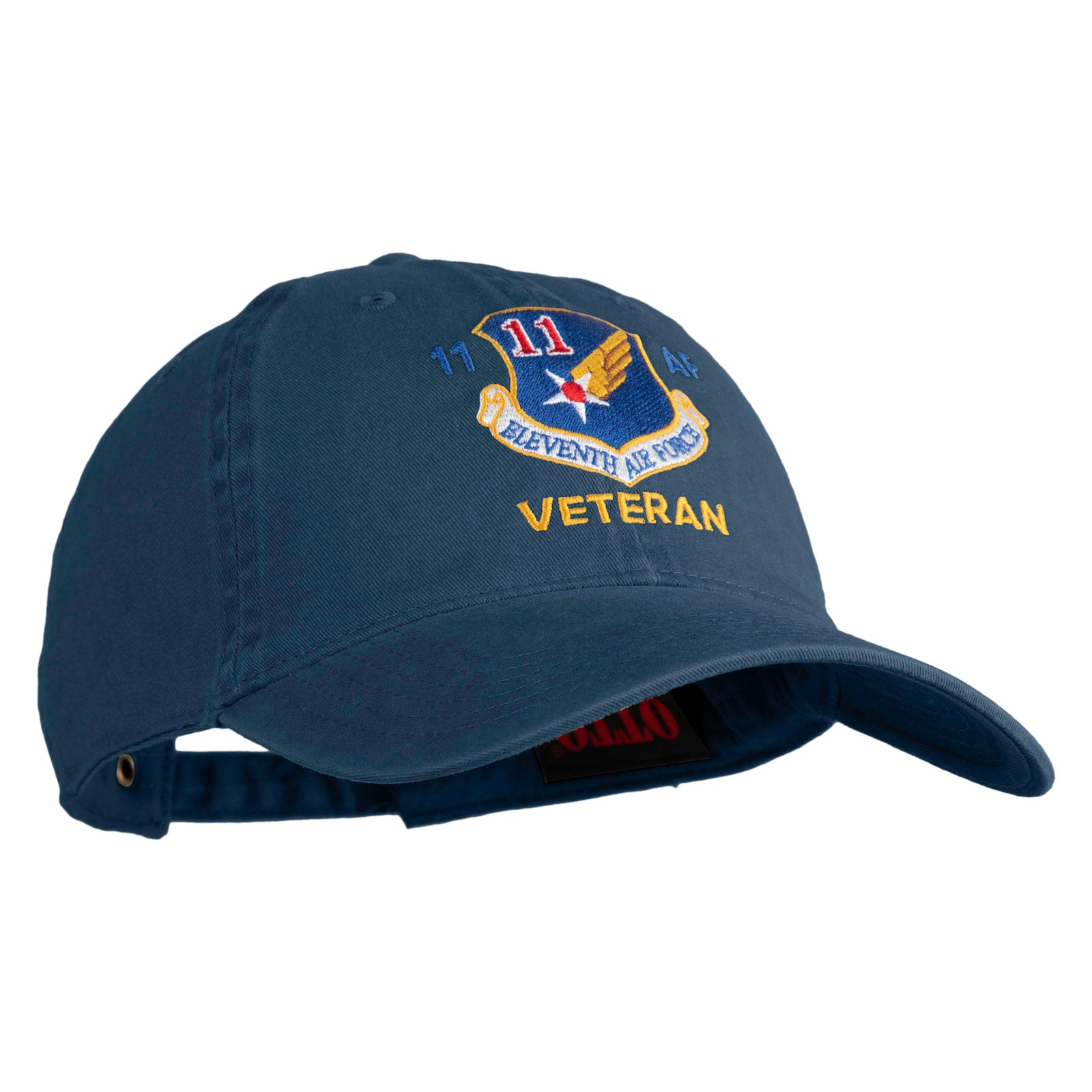 Title, Eleventh Air Force Veteran Embroidered Washed Solid Pigment Dyed Cotton Twill Brass Buckle Cap