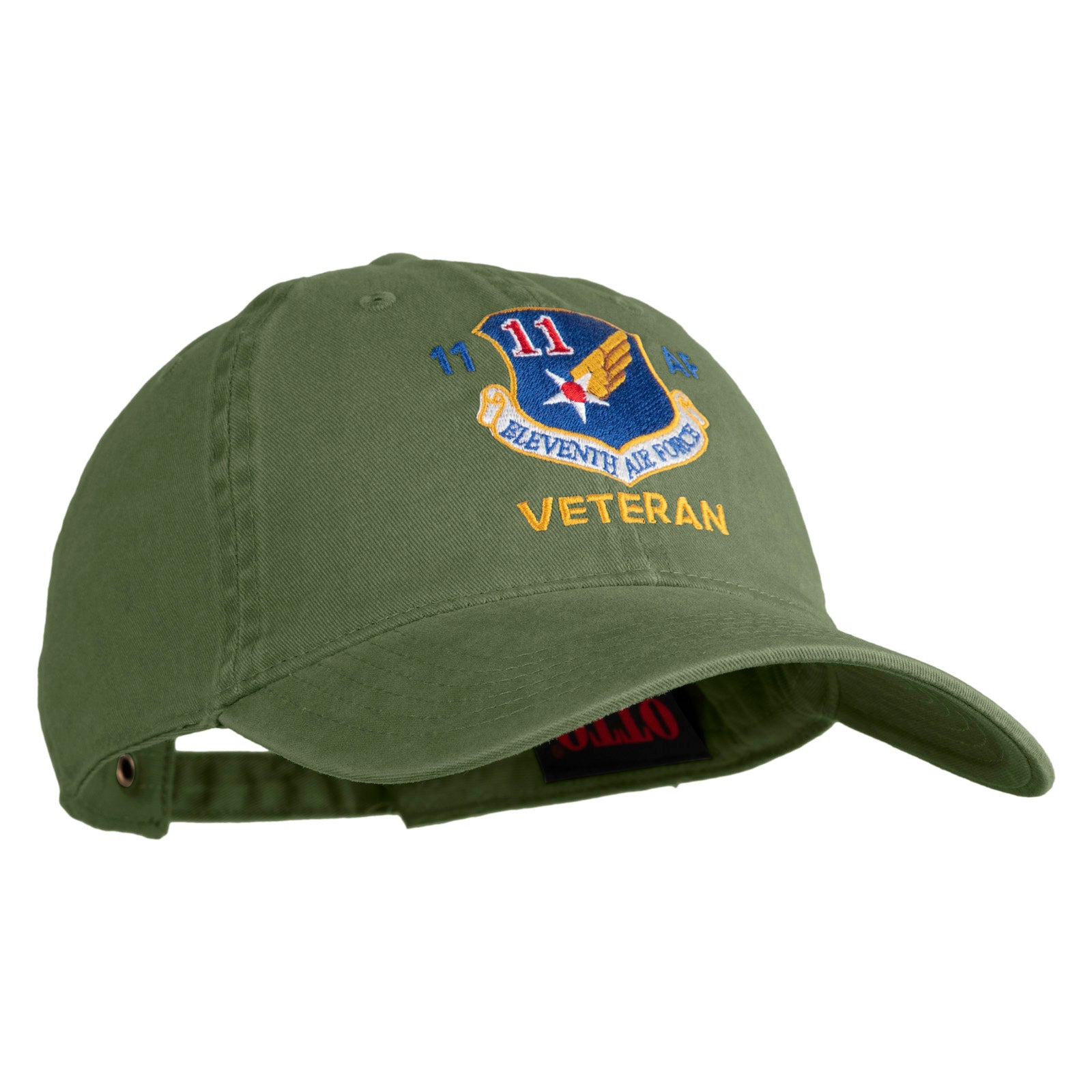 Eleventh Air Force Veteran Embroidered Washed Solid Pigment Dyed Cotton Twill Brass Buckle Cap