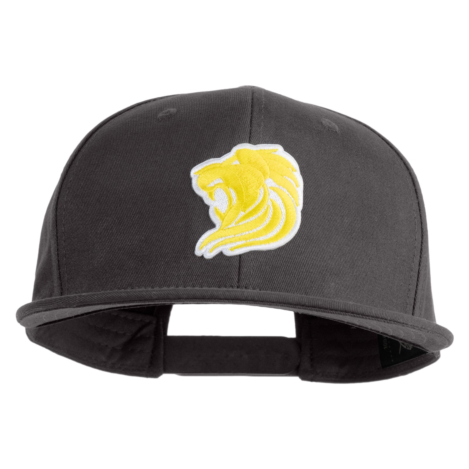 Title, Gold Lion Iron on Patched 6 Panels Round Bill Cap