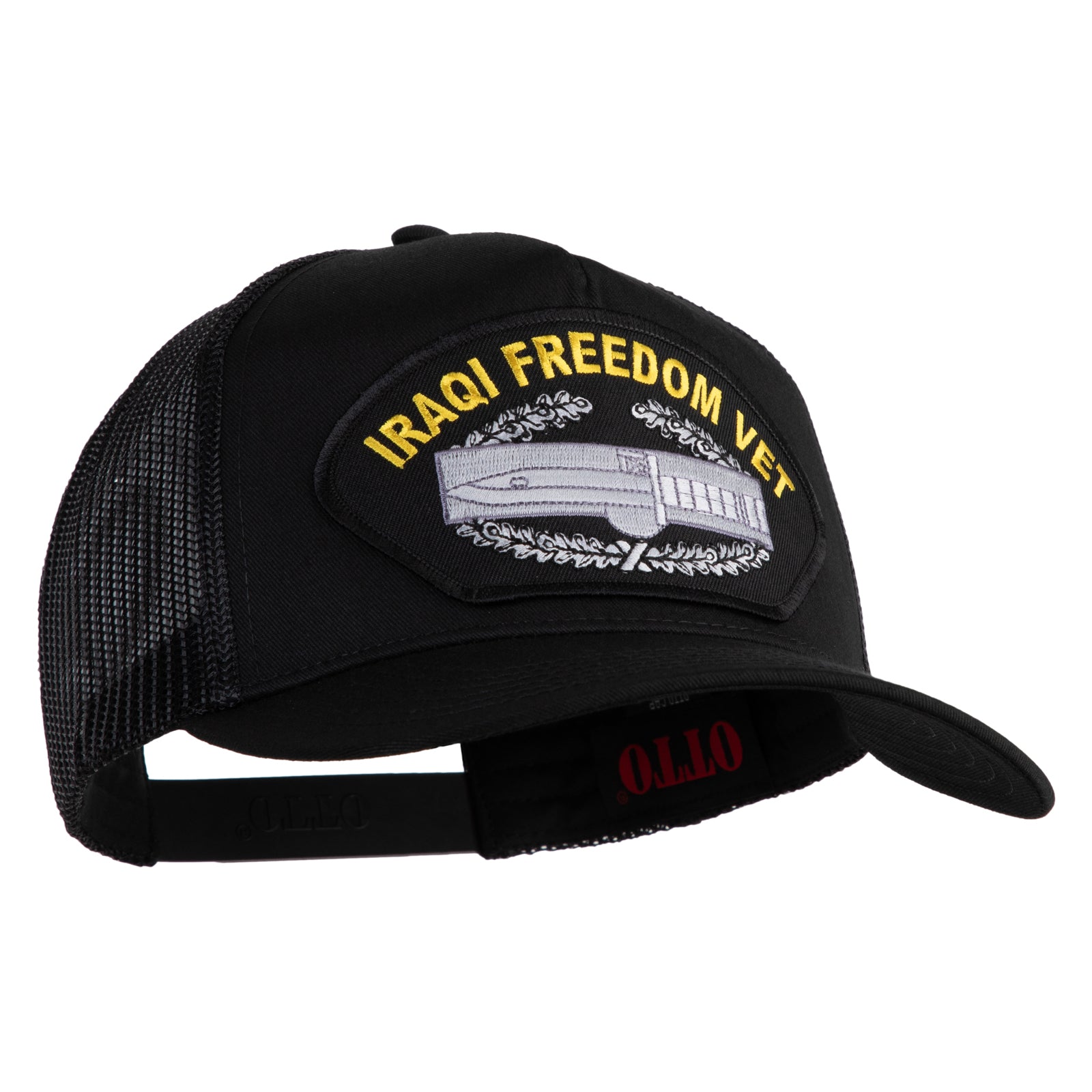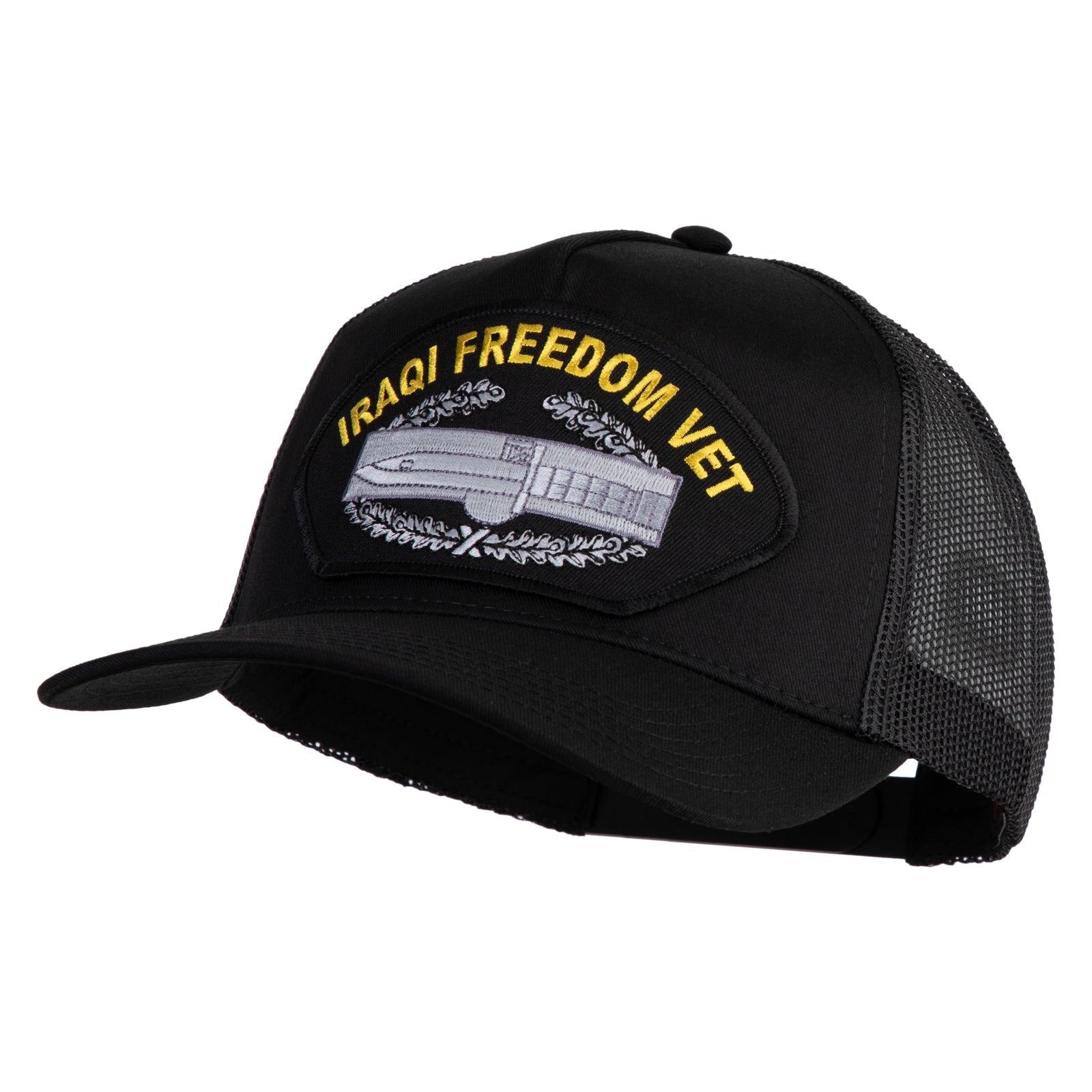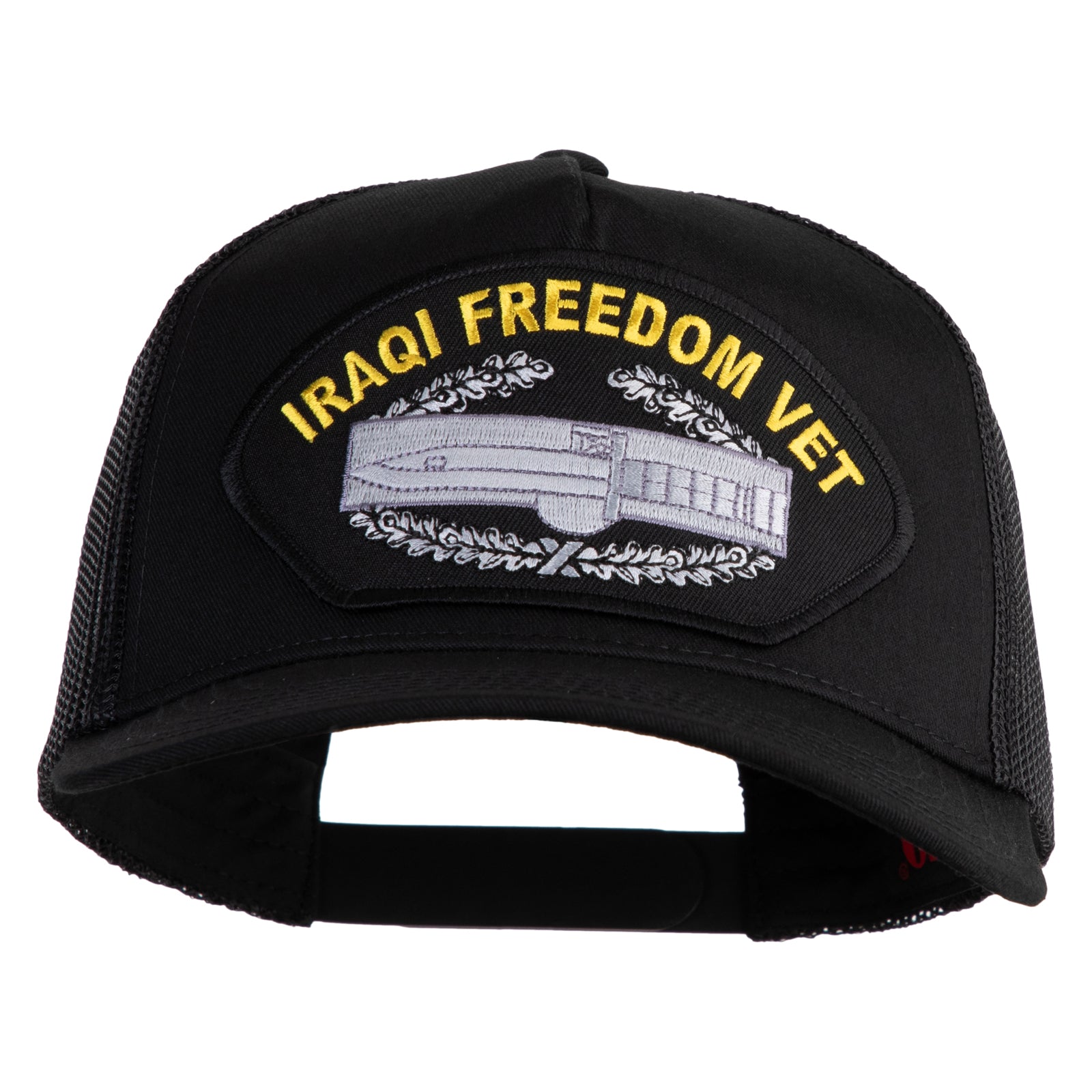 Iraqi Freedom Vet Patched Solid Cotton Twill 5 panel Mesh Back Cap - Black OSFM