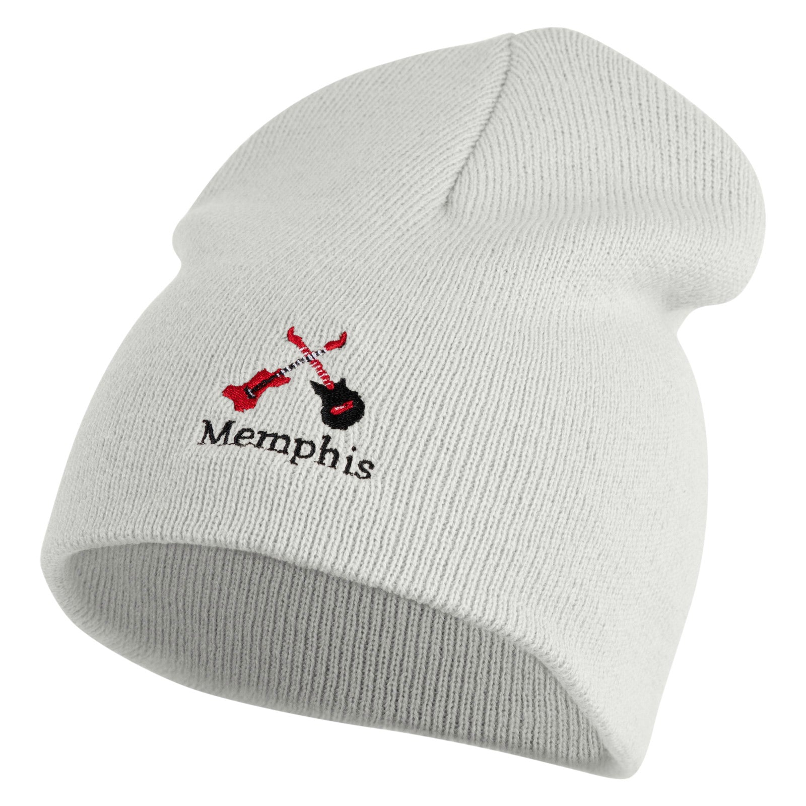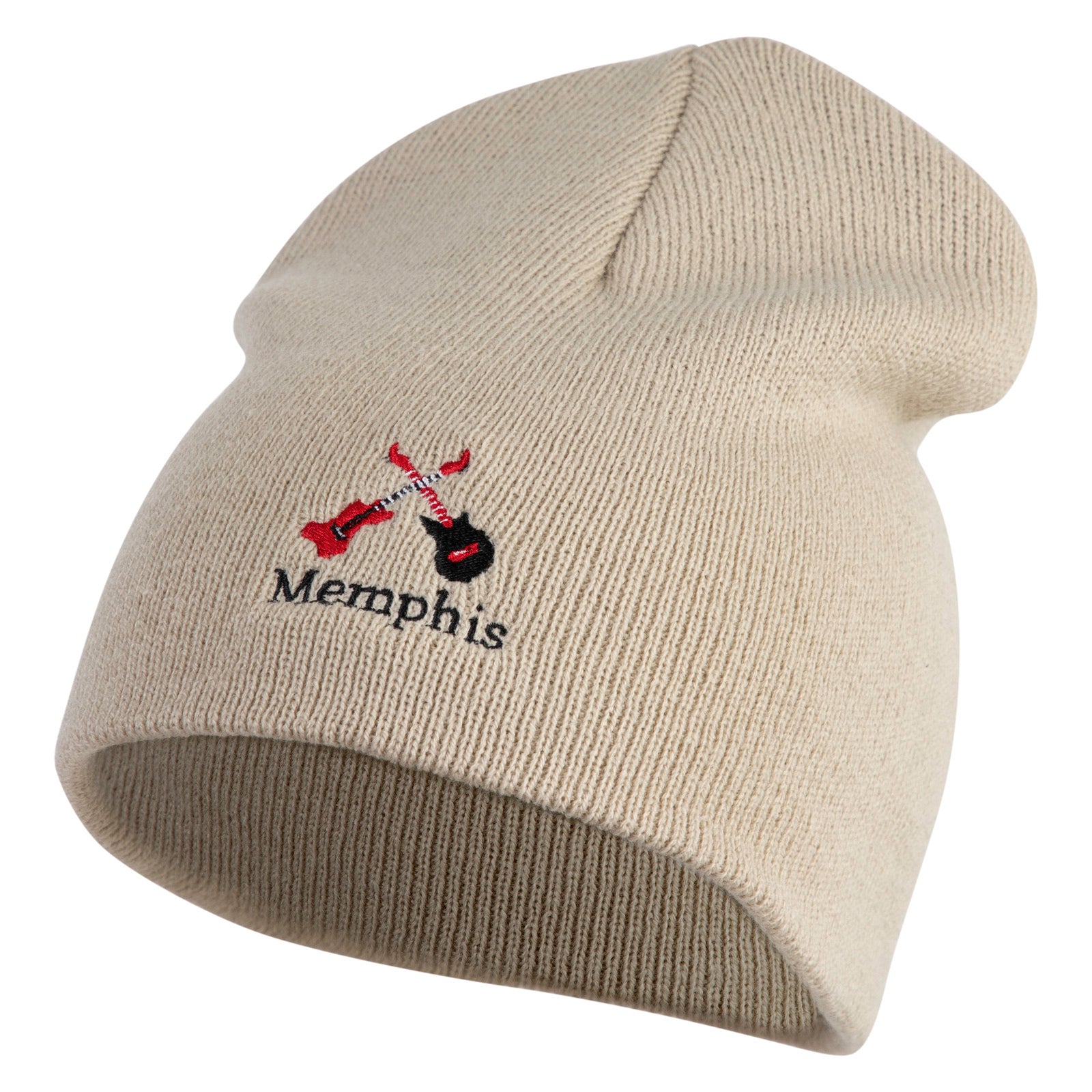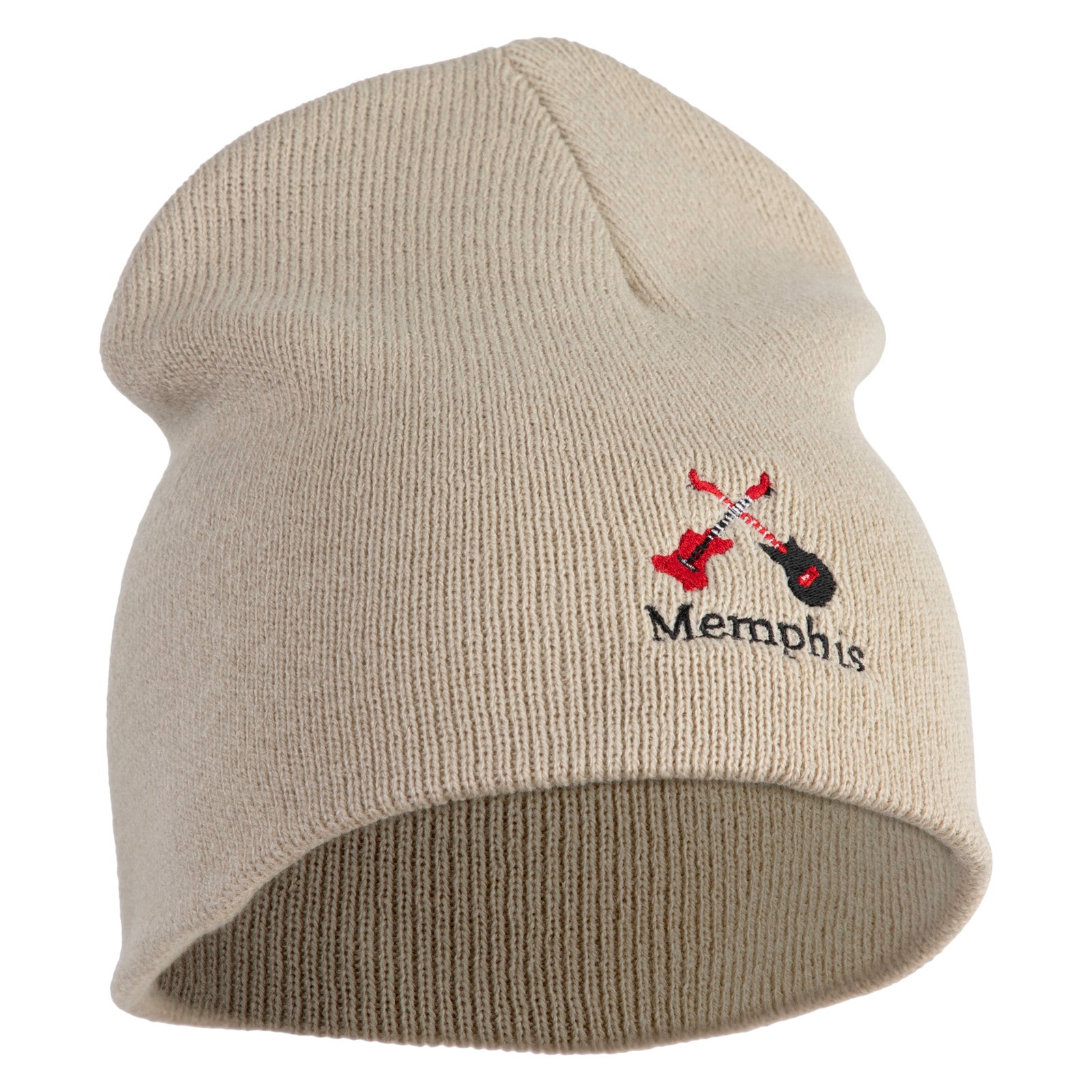 Memphis Guitars Embroidered 8 Inch Solid Knit Short Beanie Made in USA