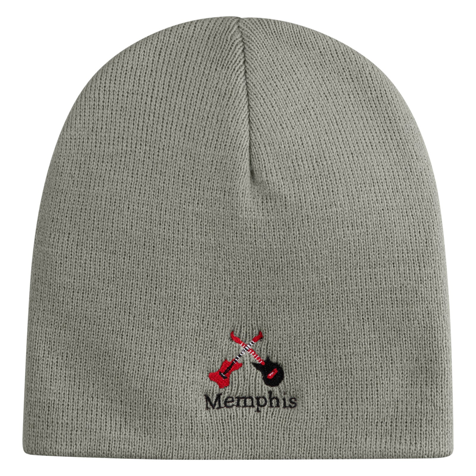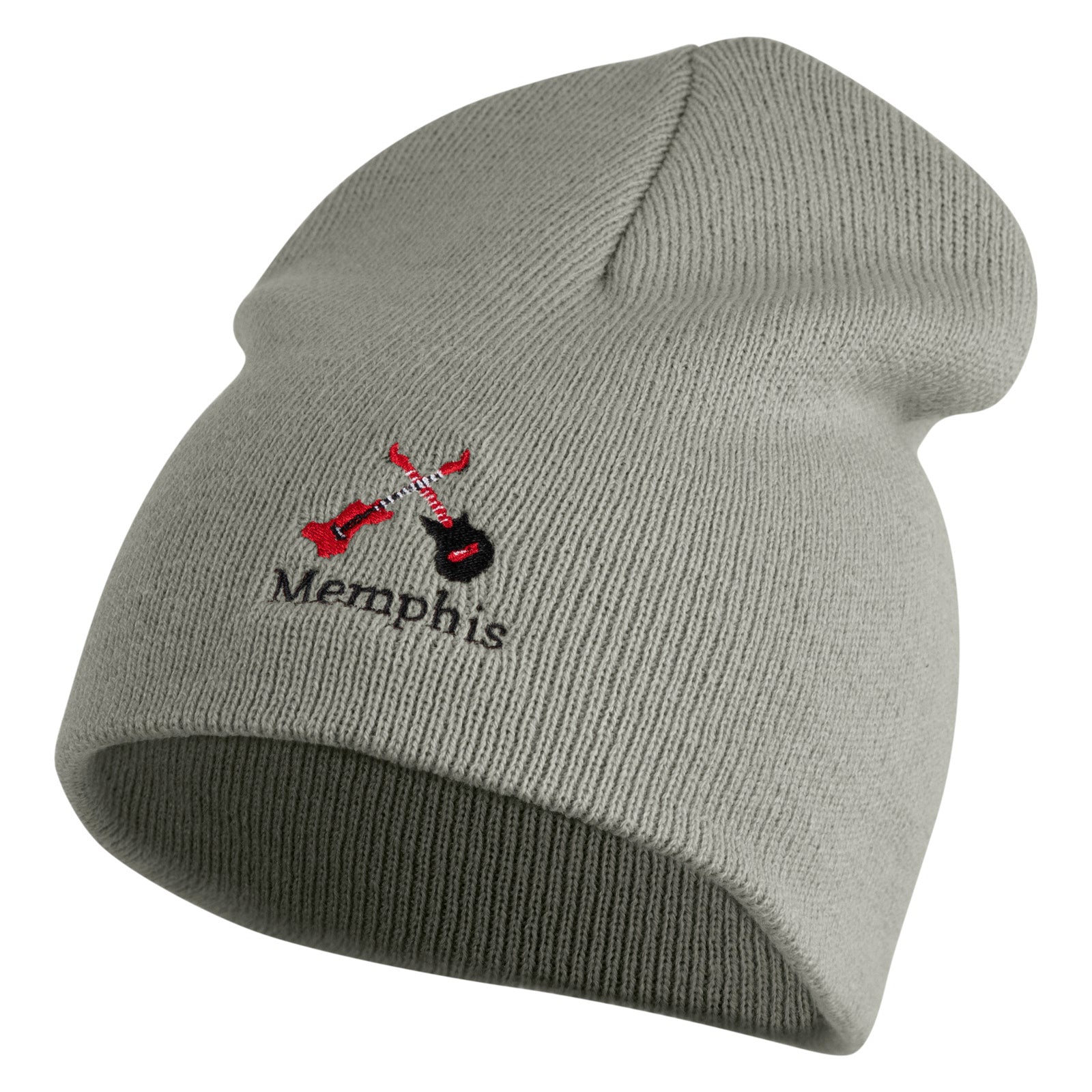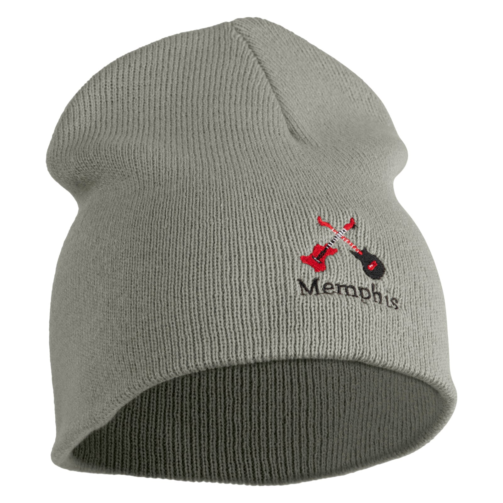 Memphis Guitars Embroidered 8 Inch Solid Knit Short Beanie Made in USA
