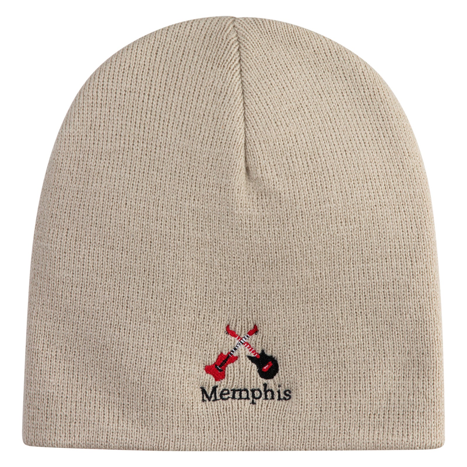 Memphis Guitars Embroidered 8 Inch Solid Knit Short Beanie Made in USA - Stone OSFM