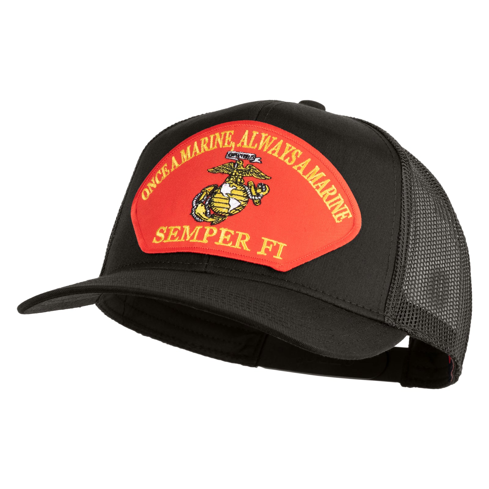 Occassion, Great for Marine reunions, veteran events, or patriotic holidays, this mesh prostyle cap features a bold Once a Marine Always a Marine Semper Fi red patch that proudly honors lifelong commitment and service.