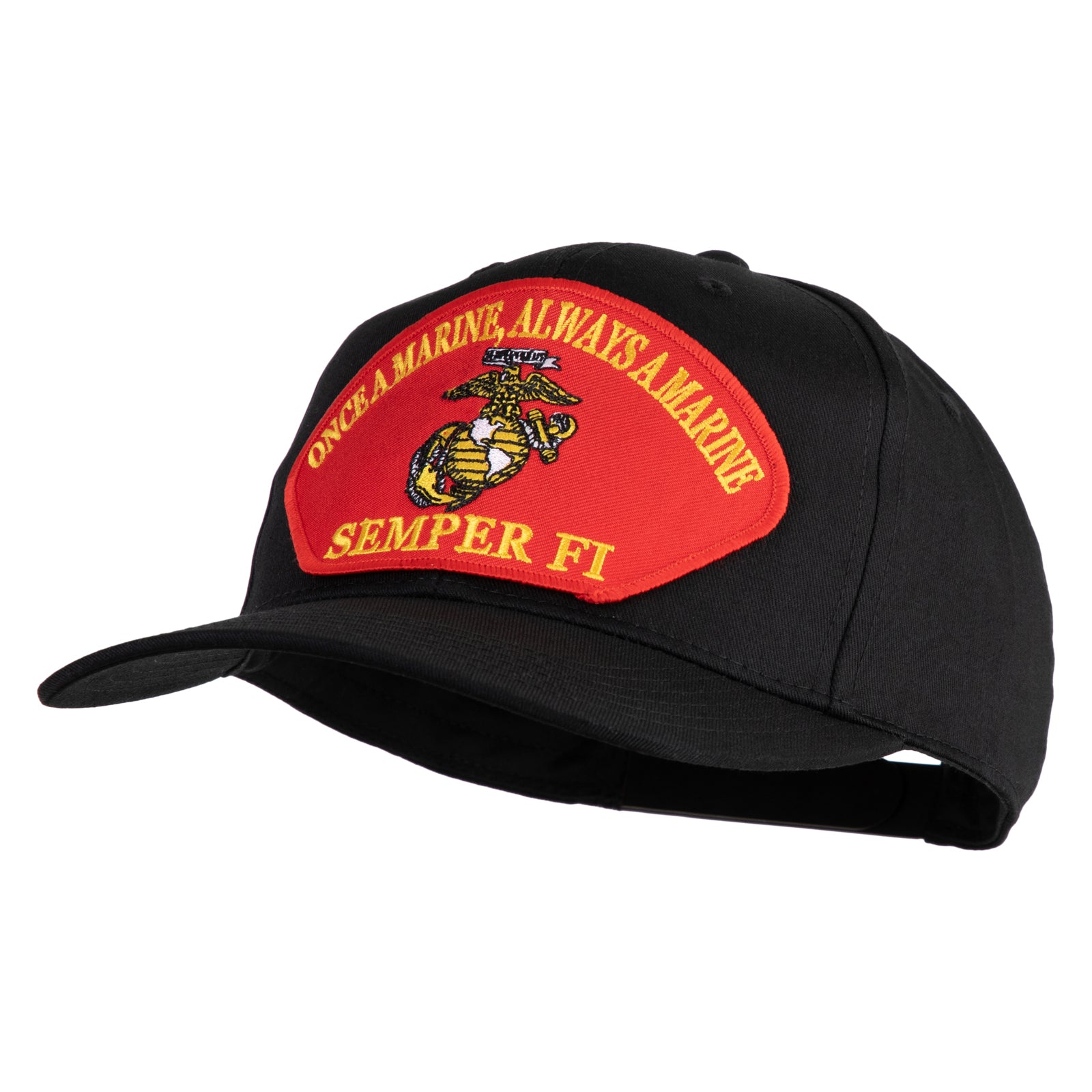 Once a Marine Always a Marine Semper Fi Red Patched Solid Cotton Twill Pro Style Cap - Black OSFM
