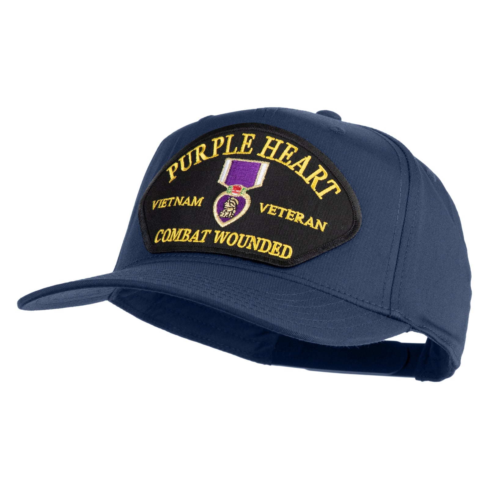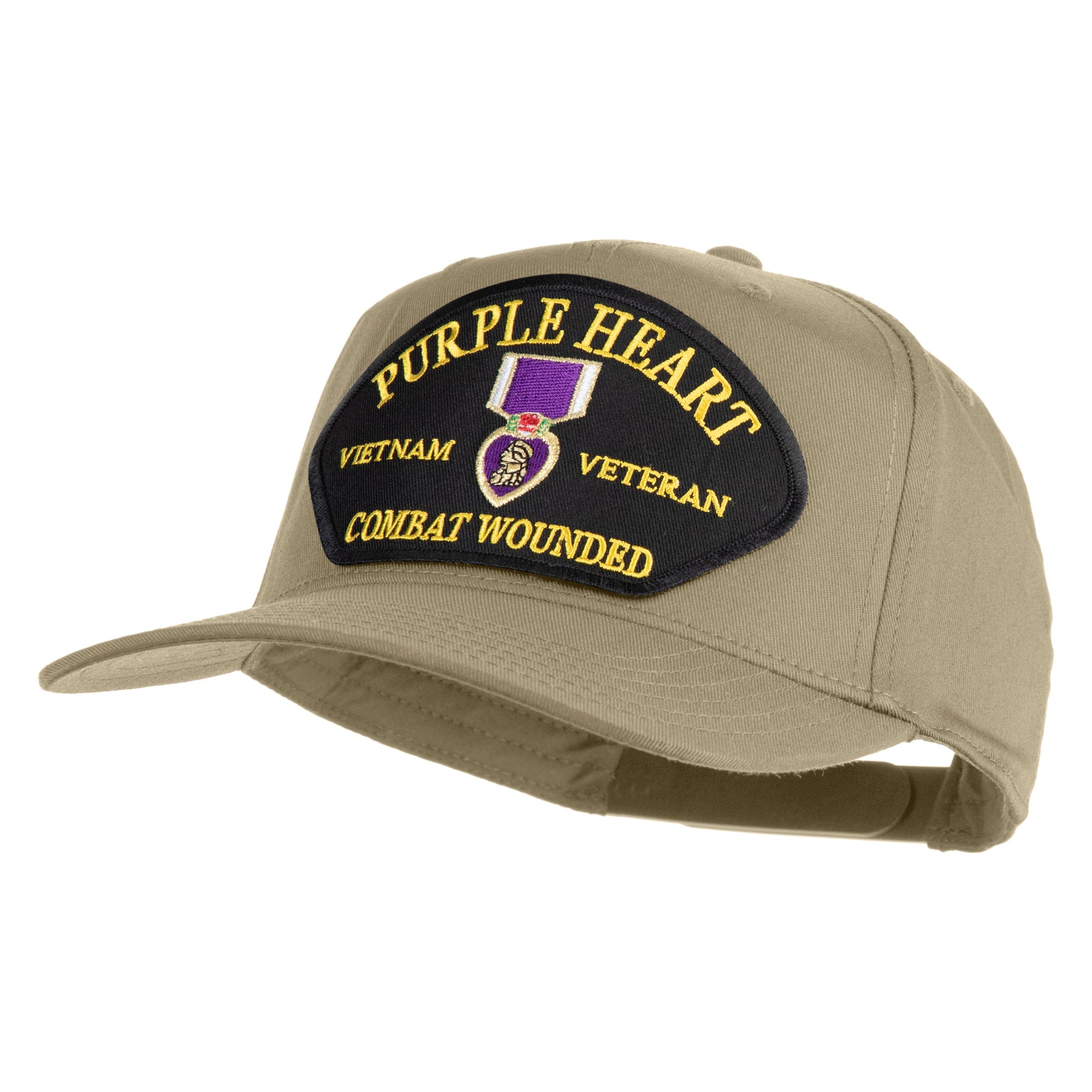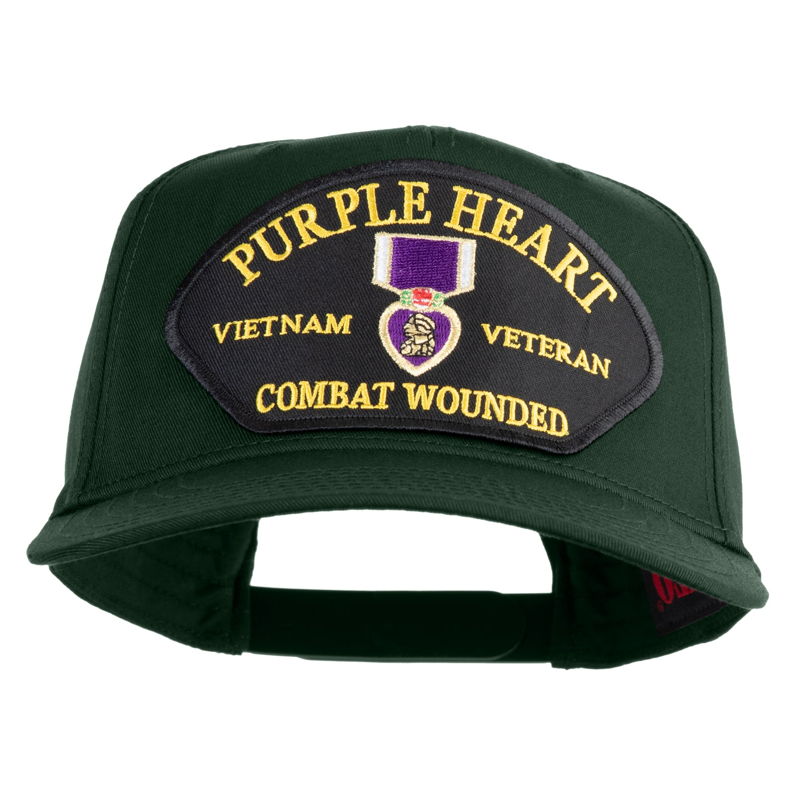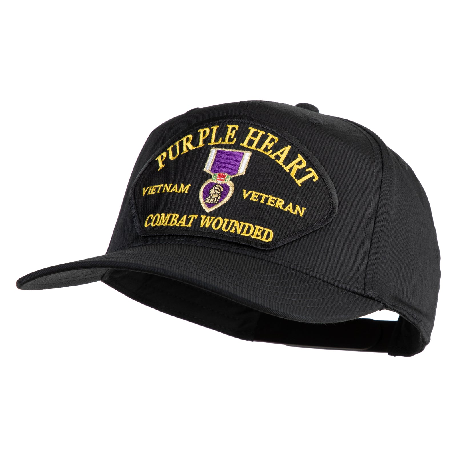 Title, Purple Heart Vietnam Veteran Combat Wounded Patched Solid Cotton Twill 5 Panel Prostyle Snap Cap