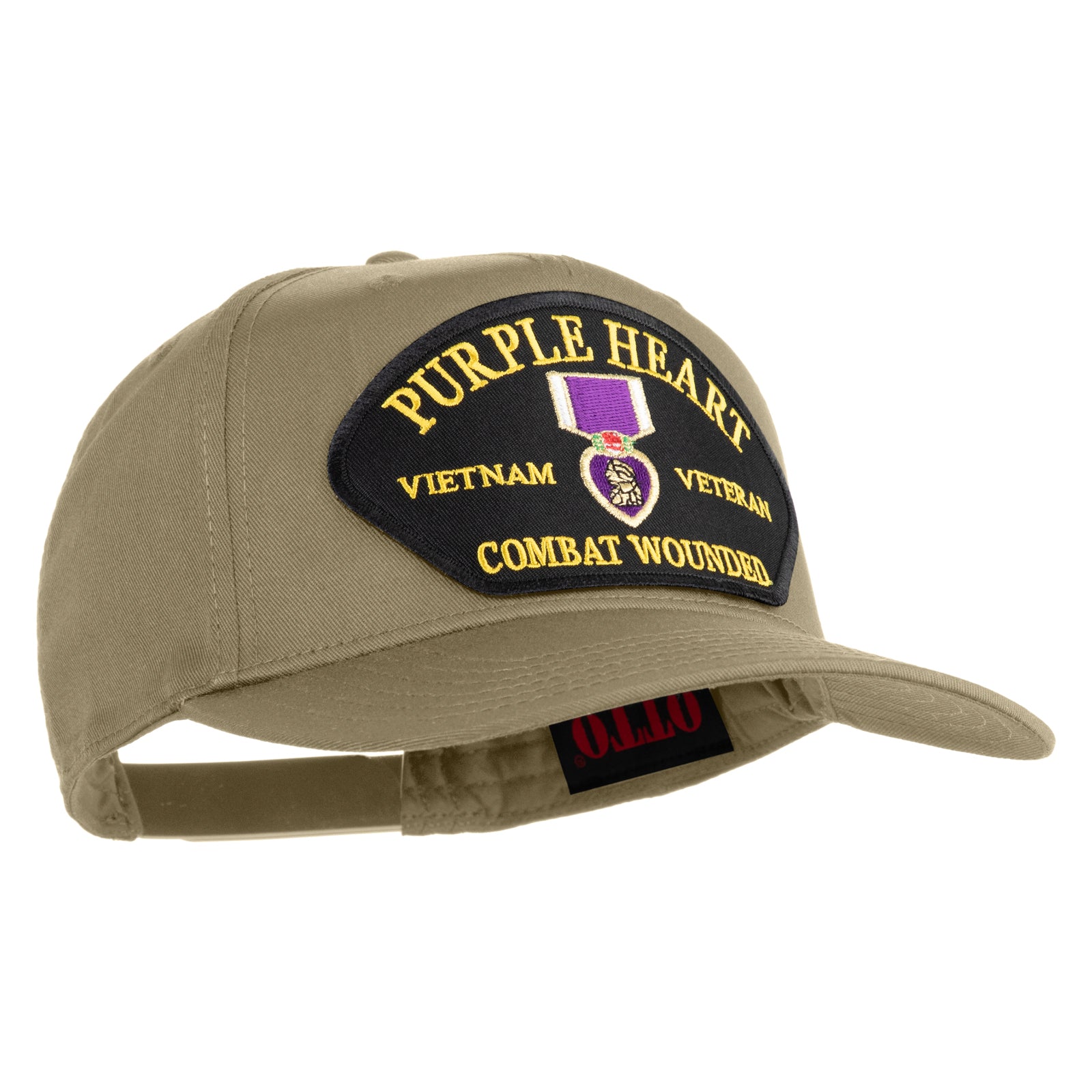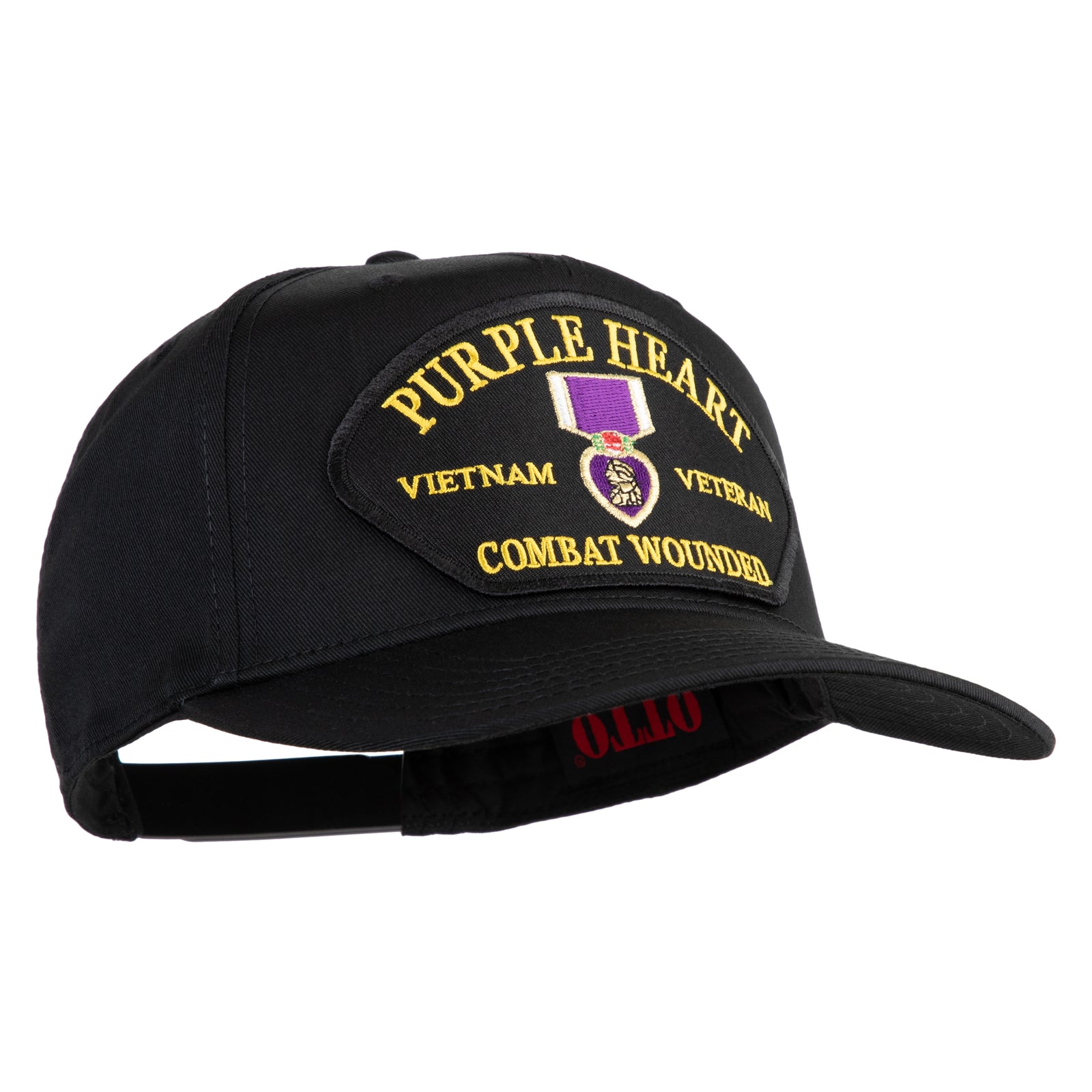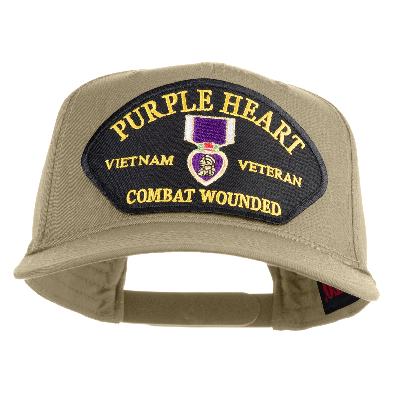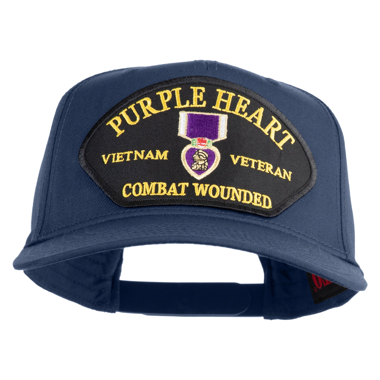 Title, Purple Heart Vietnam Veteran Combat Wounded Patched Solid Cotton Twill 5 Panel Prostyle Snap Cap