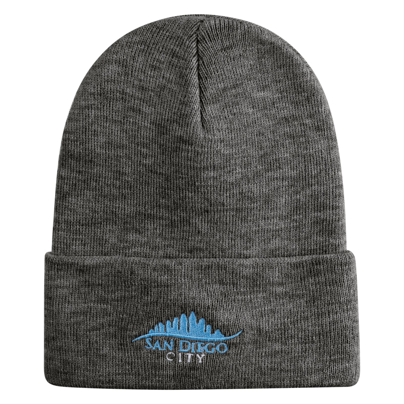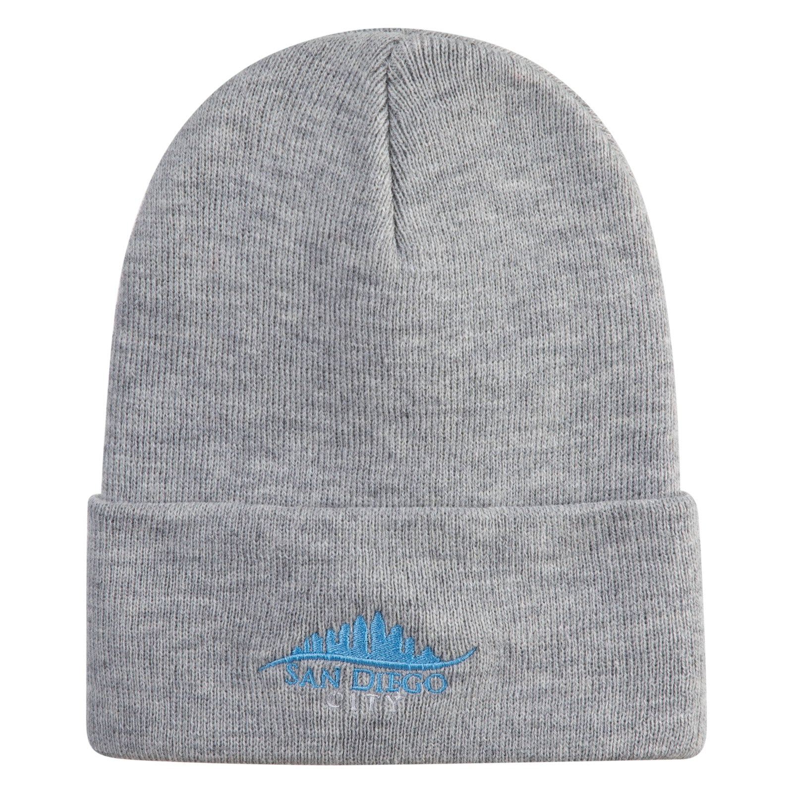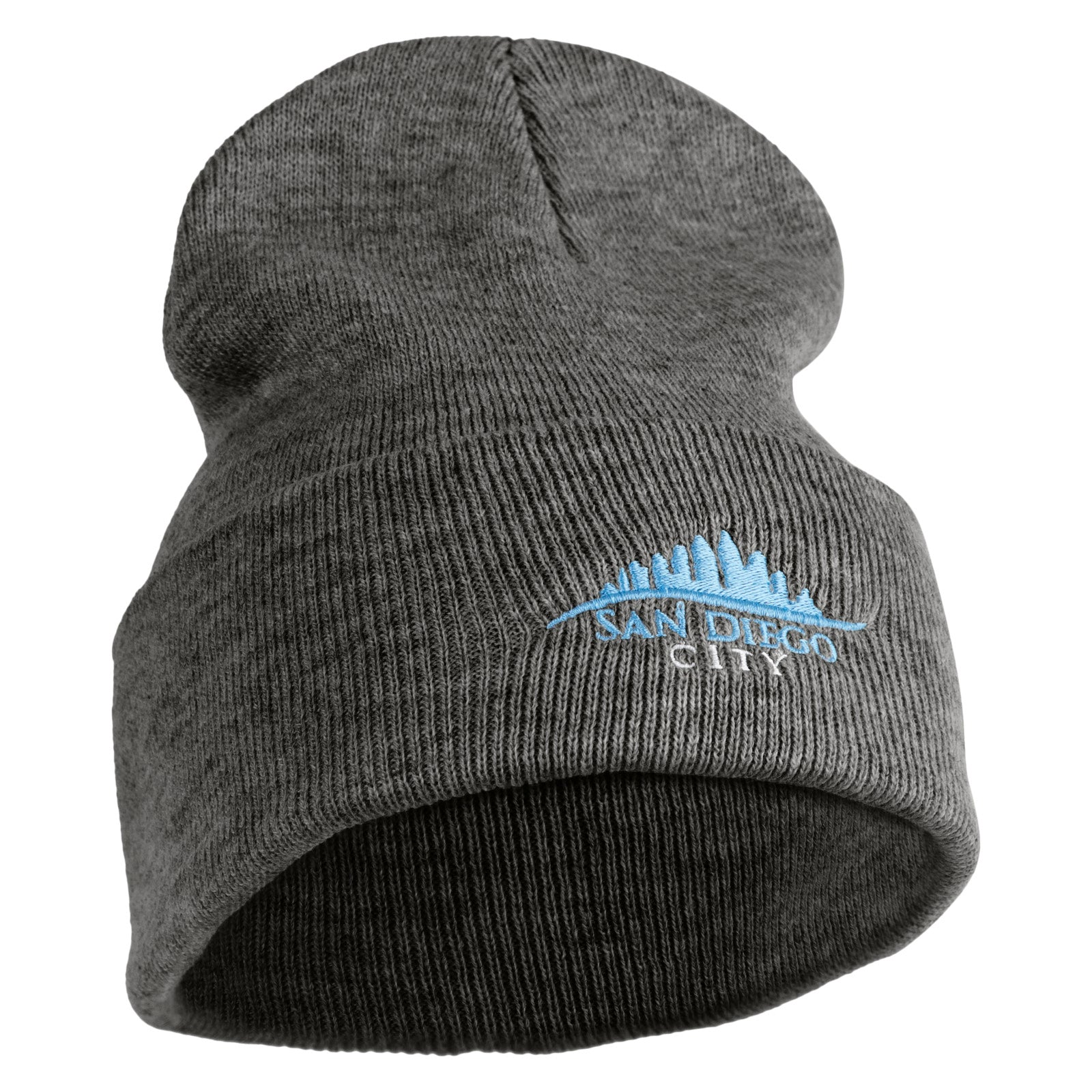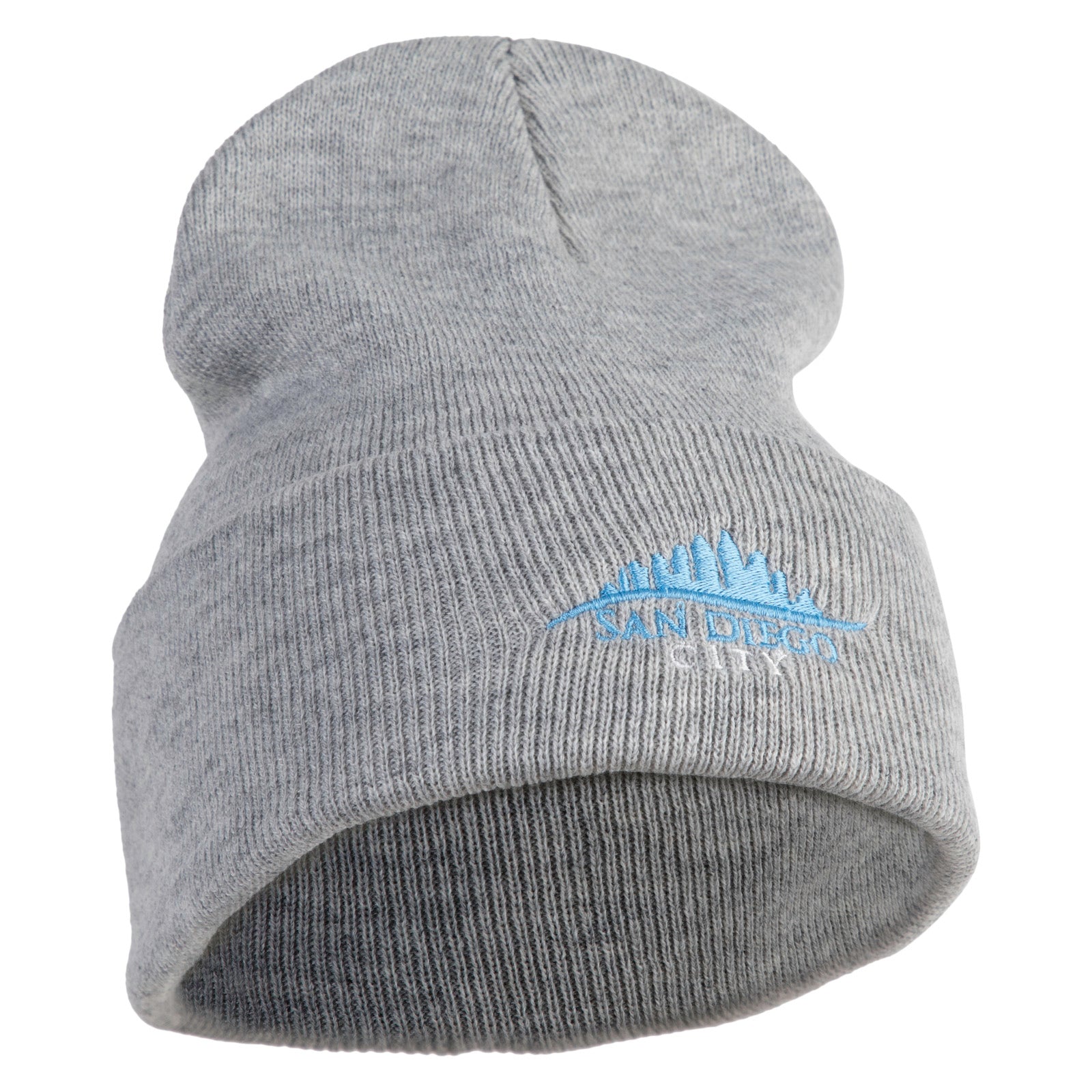 San Diego City Skyline Embroidered 12 Inch Long Knitted Beanie - Heather-Grey OSFM
