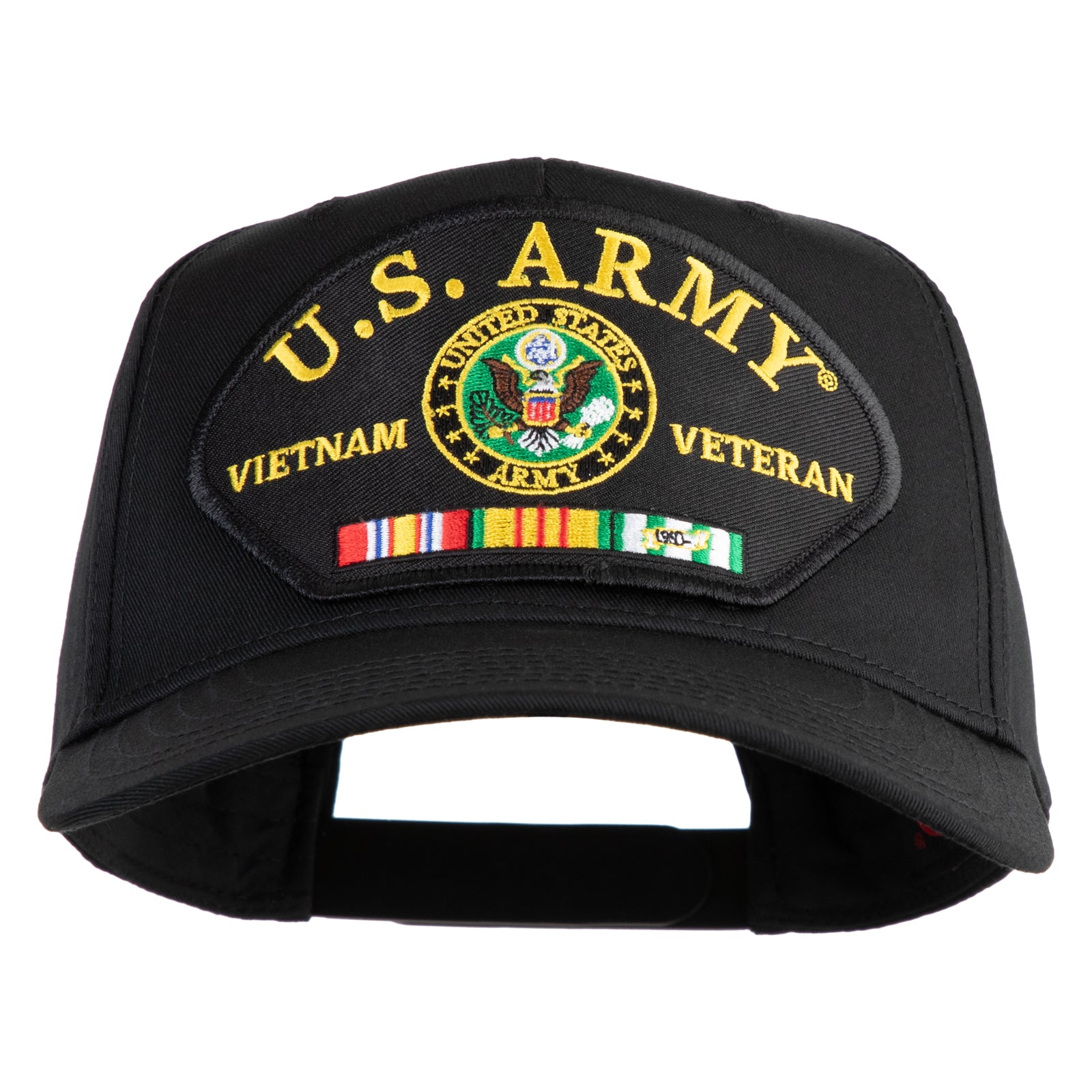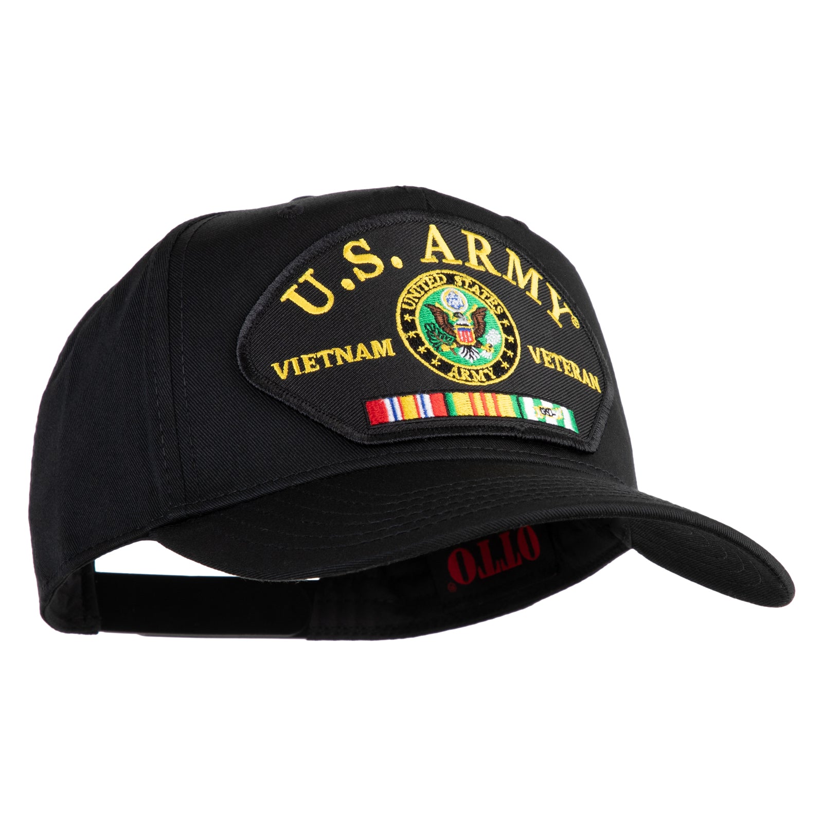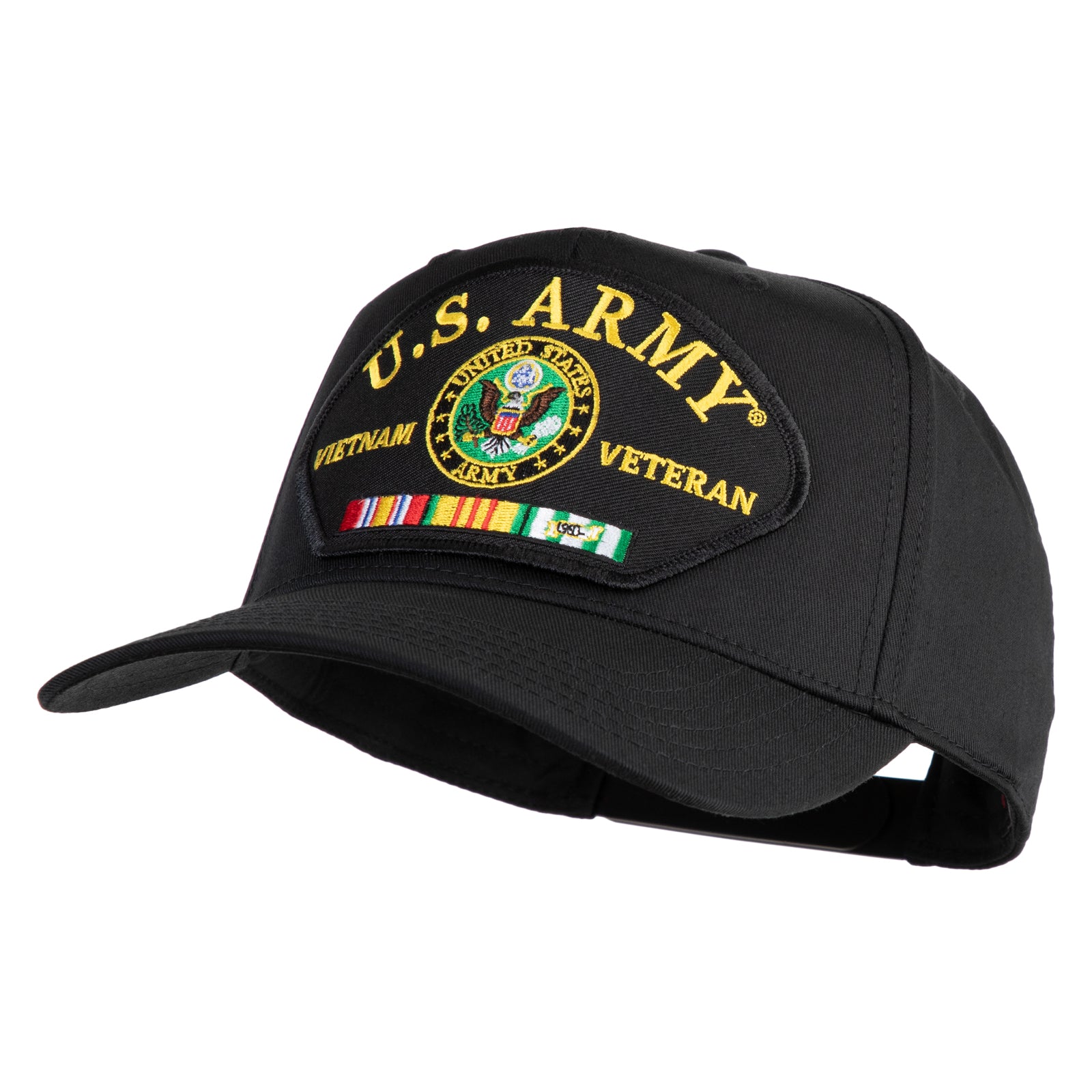 U.S. Army Seal Vietnam Veteran Patched Solid Cotton Twill 5 Panel Prostyle Snap Cap - Black OSFM