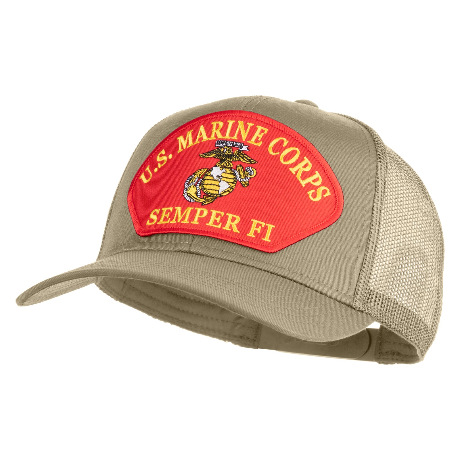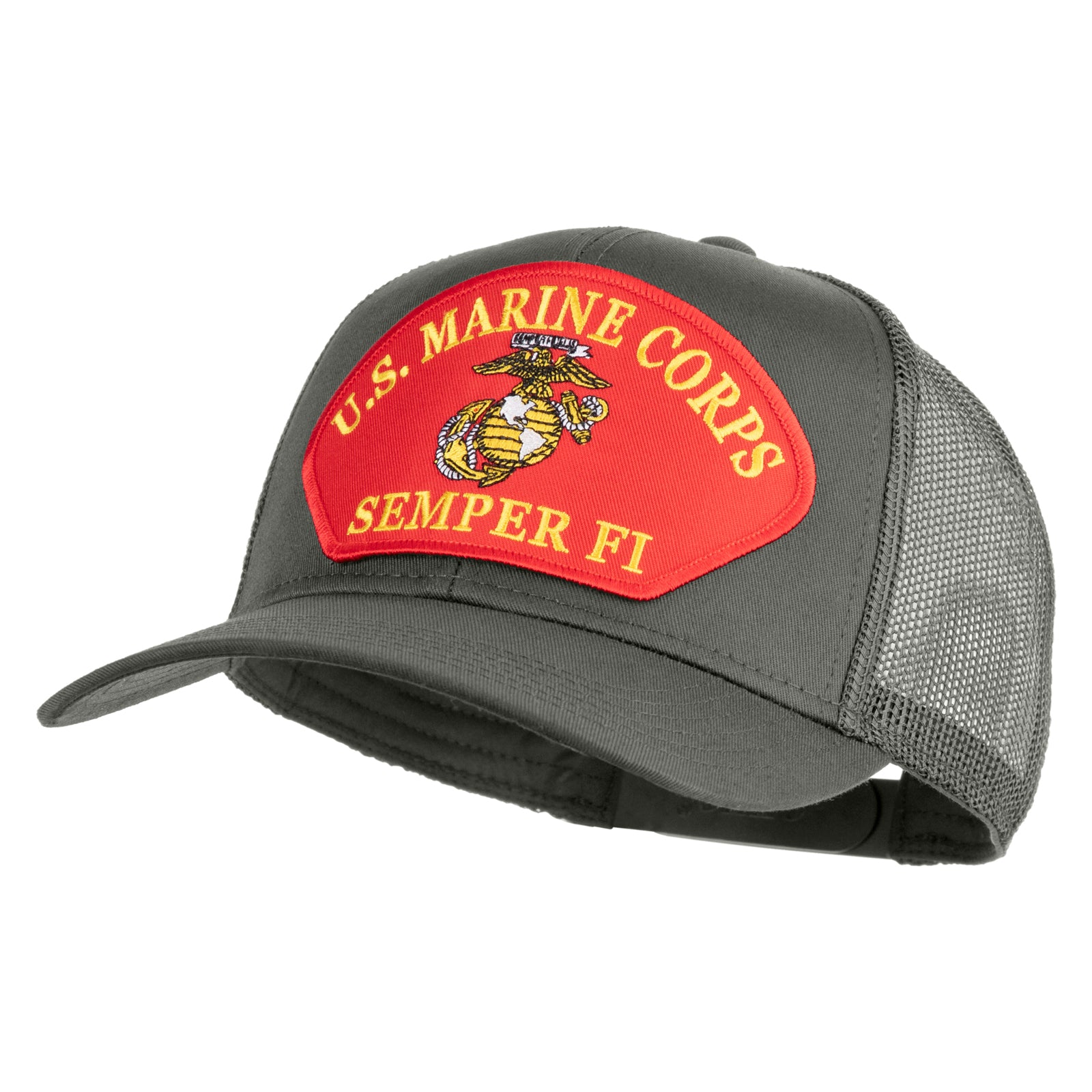 Title, U.S. Marine Corps Semper Fi Red Patched Solid Cotton Twill Mesh Prostyle Cap