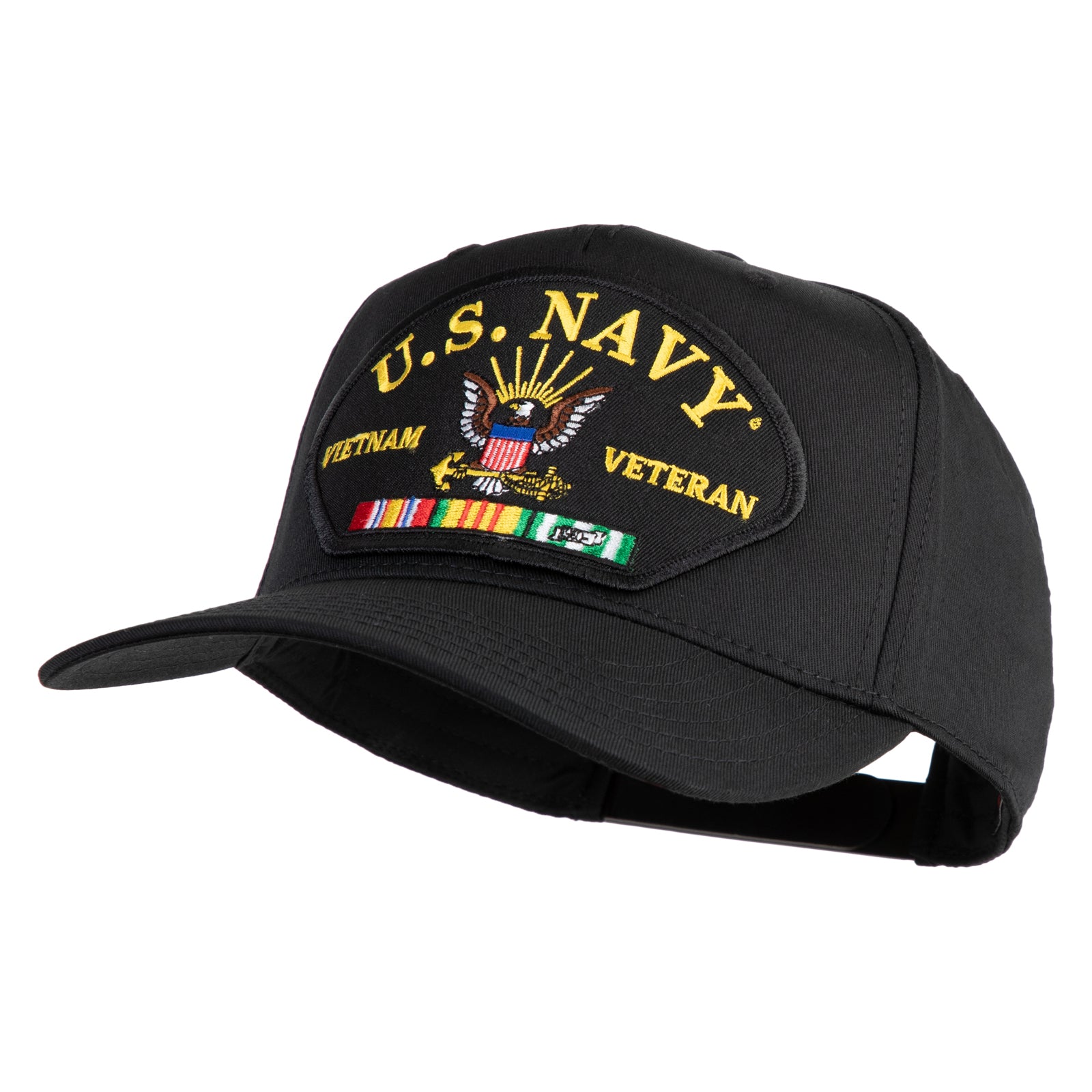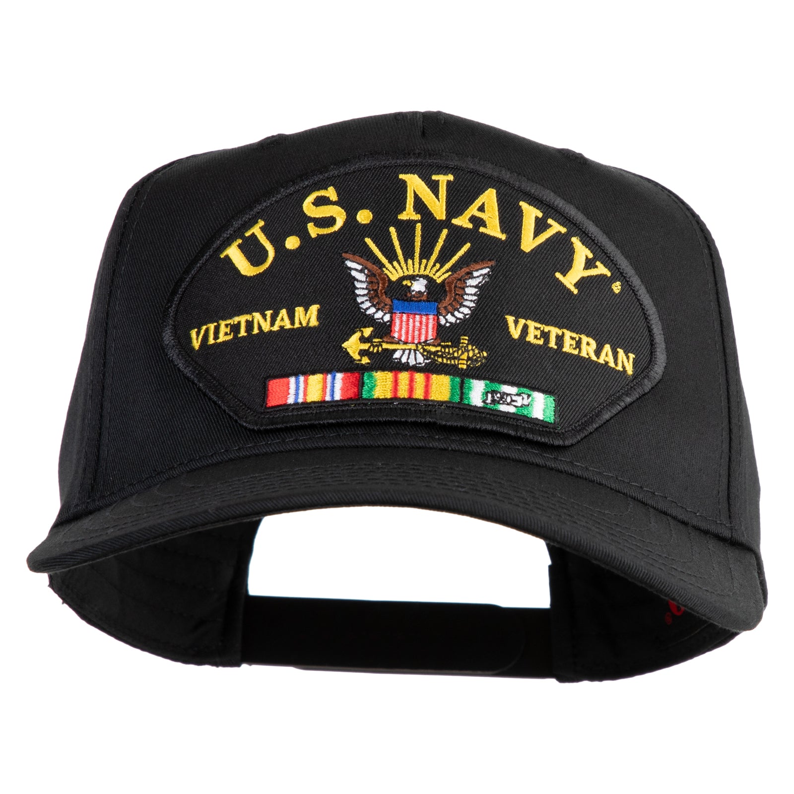 U.S. Navy Vietnam Veteran Patched Solid Cotton Twill 5 Panel Prostyle Snap Cap - Black OSFM