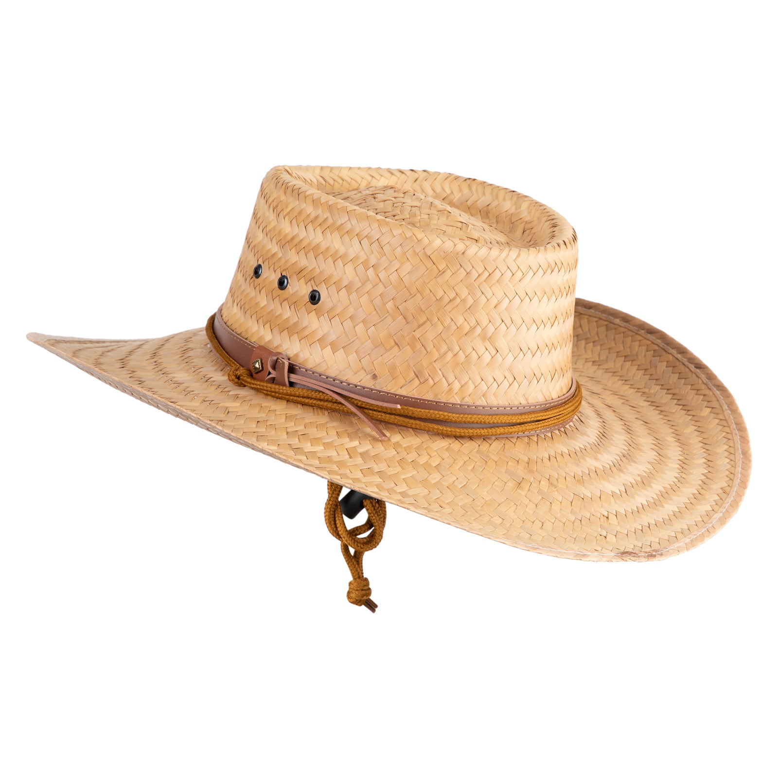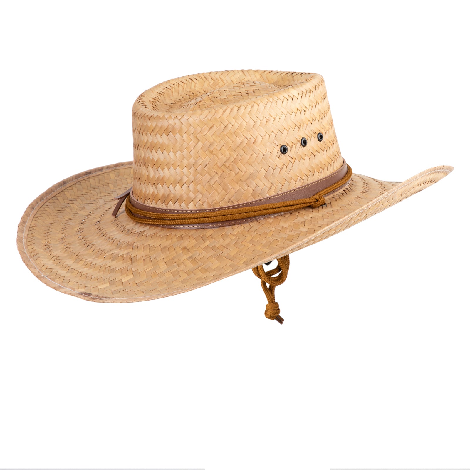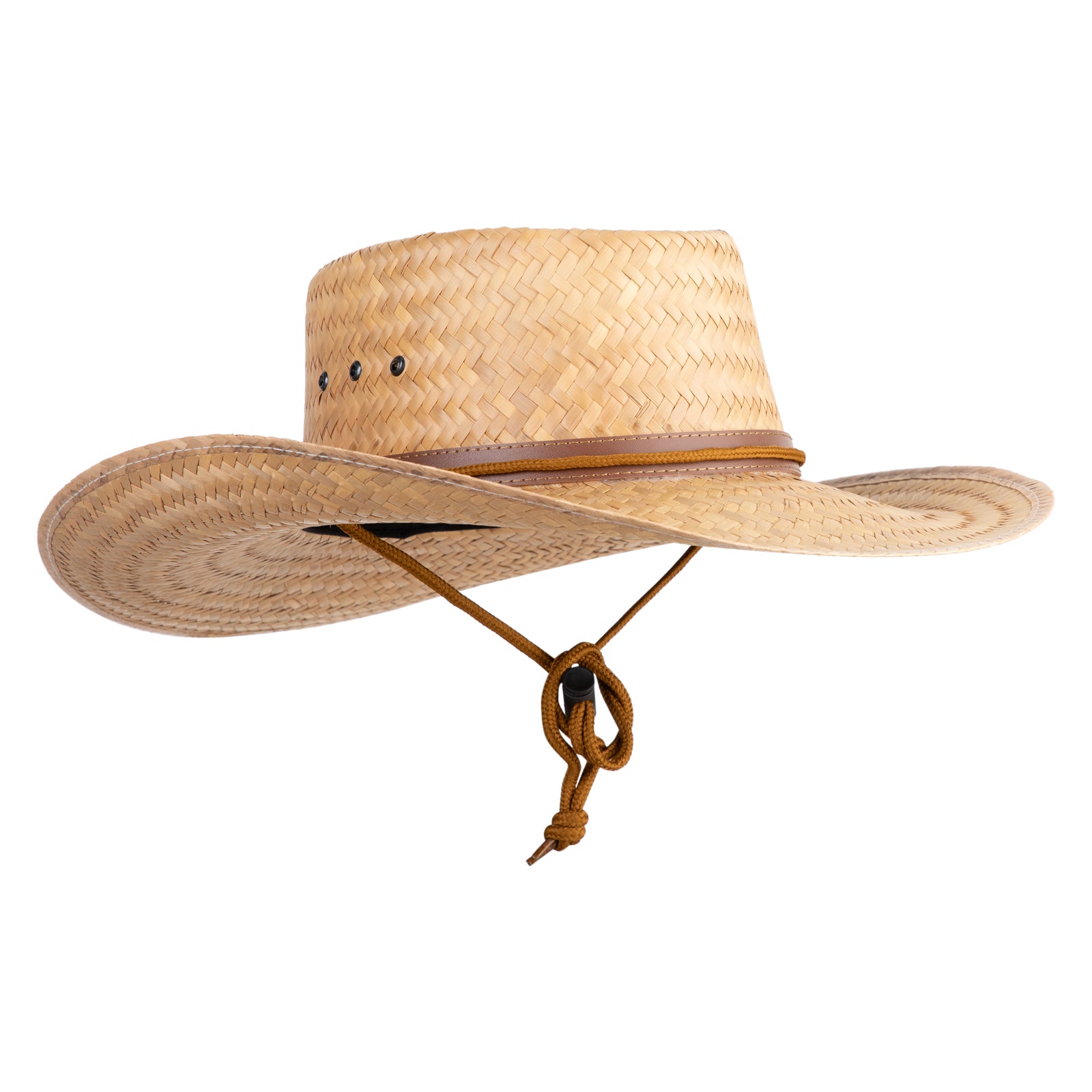 UPF 50+ Palm Leaf Chin Tie Gambler Straw Hat