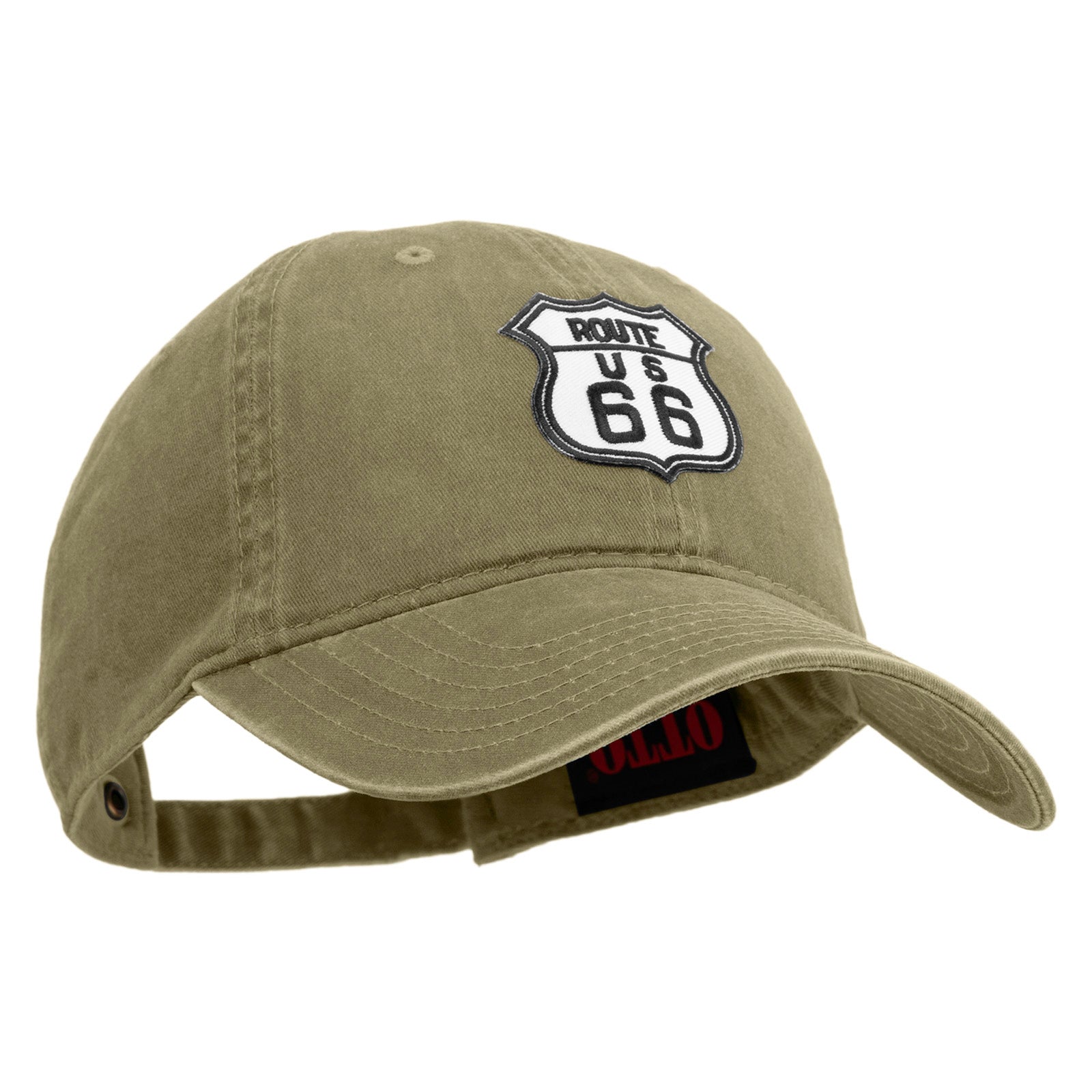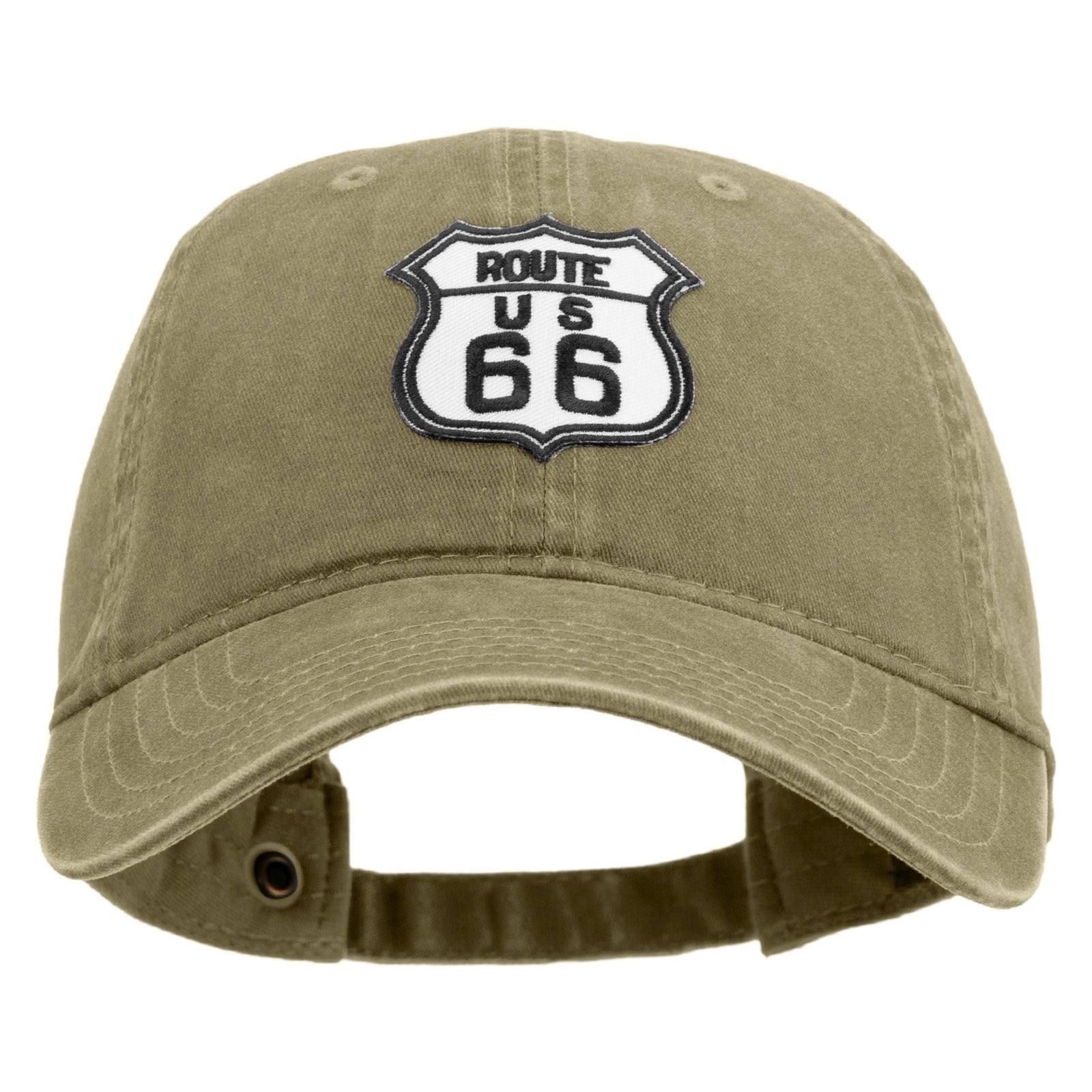 Title, US Route 66 Patched Washed Solid Pigment Dyed Cotton Twin Brass Buckle Cap