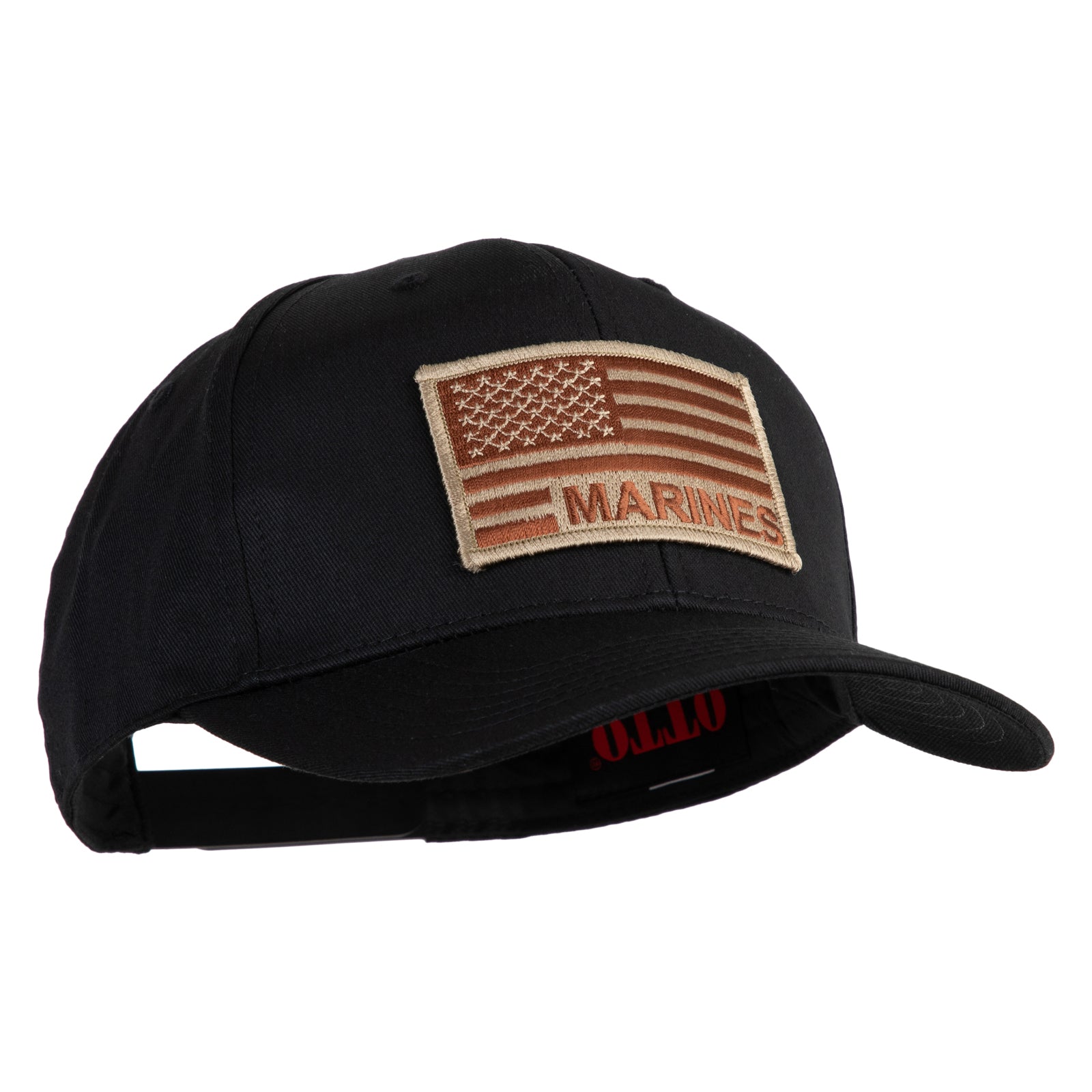 USA Brown Flag Marines Patched Solid Cotton Twill Pro Style Cap - Black OSFM