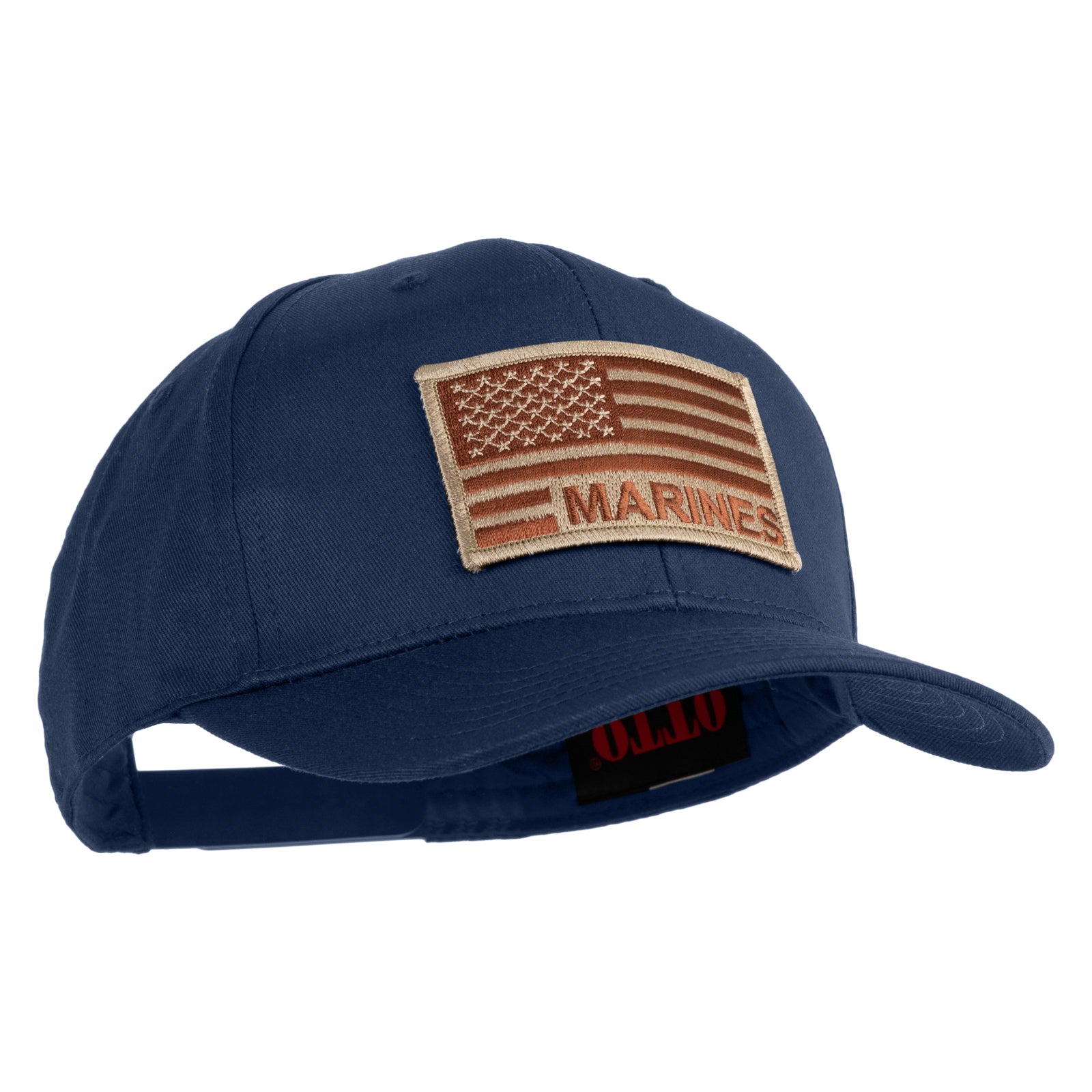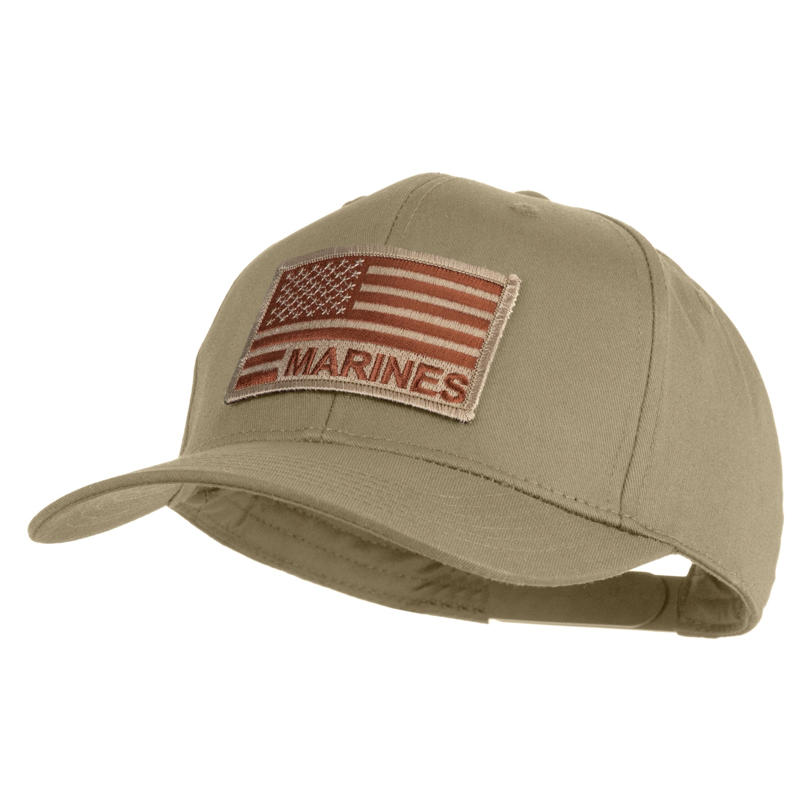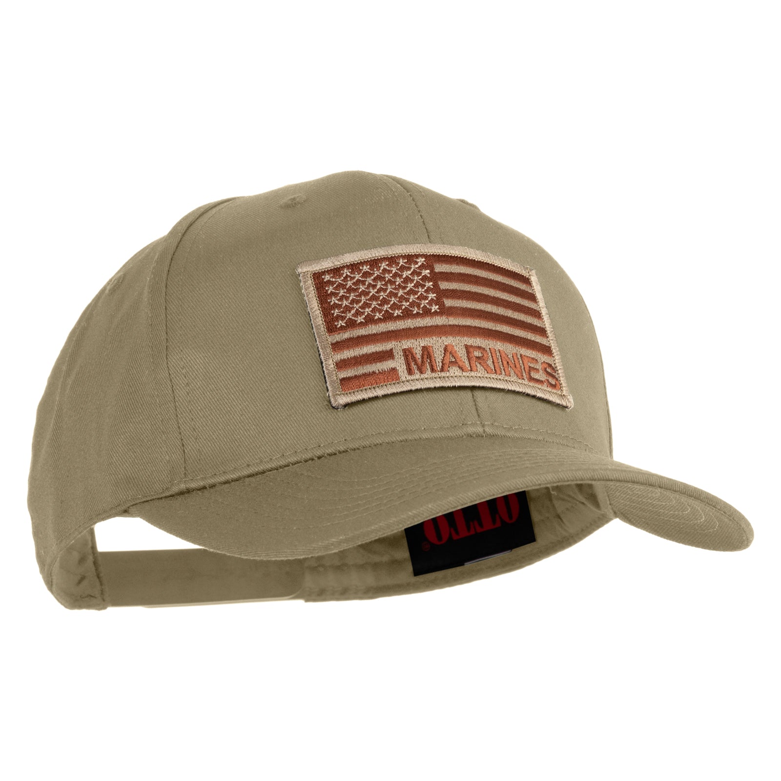 Title, USA Brown Flag Marines Patched Solid Cotton Twill Pro Style Cap