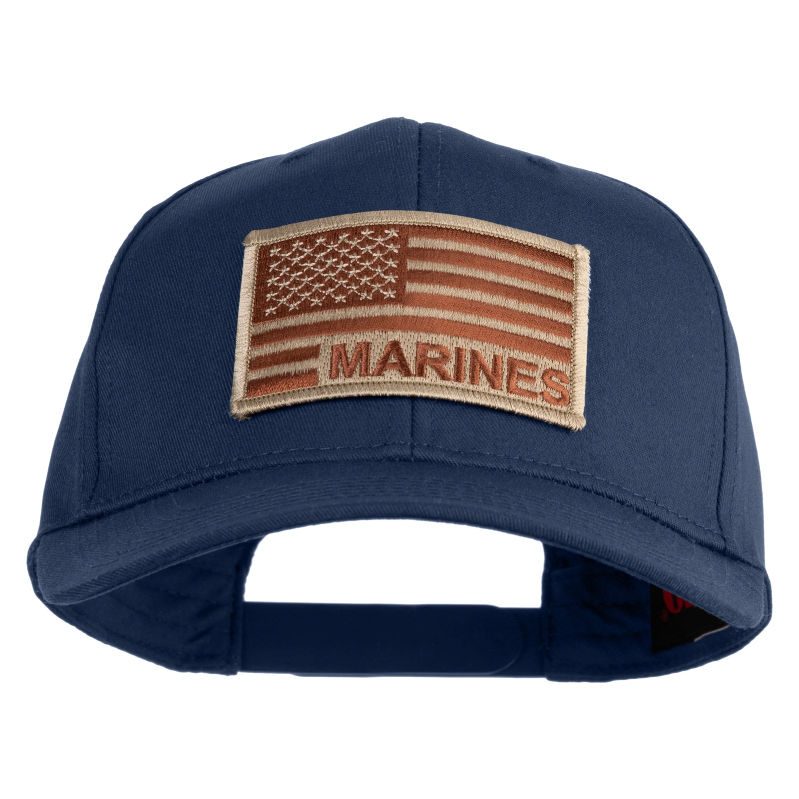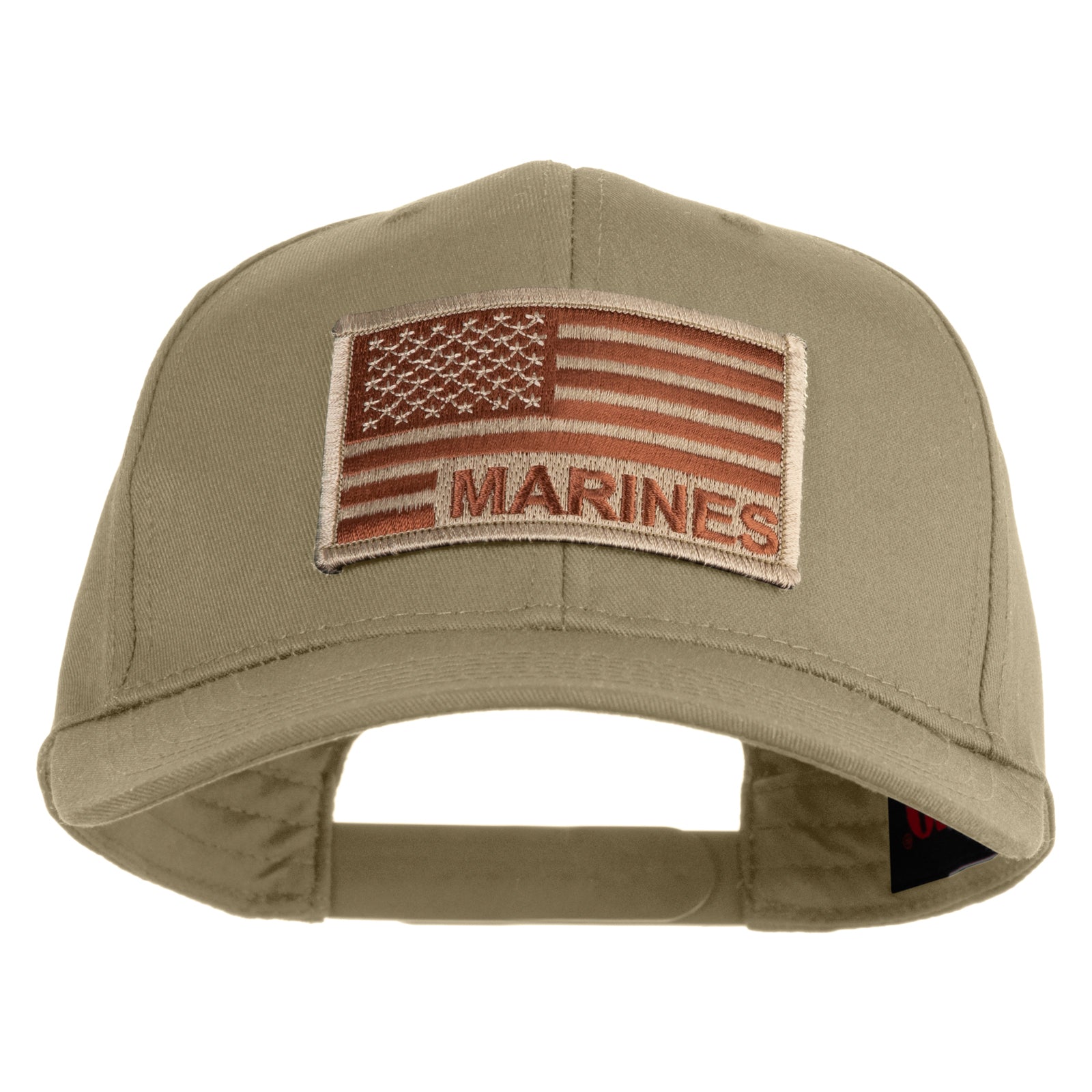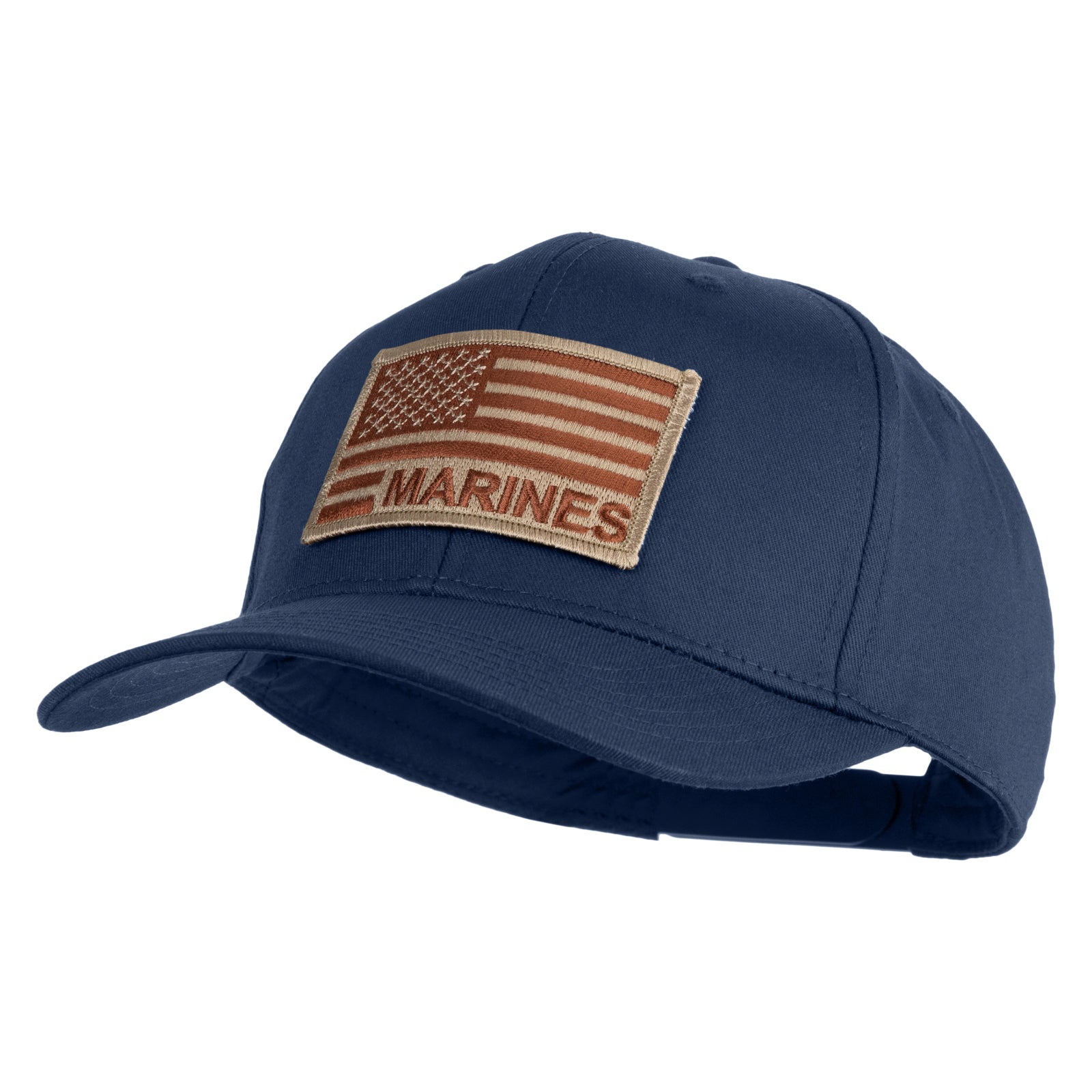 Title, USA Brown Flag Marines Patched Solid Cotton Twill Pro Style Cap