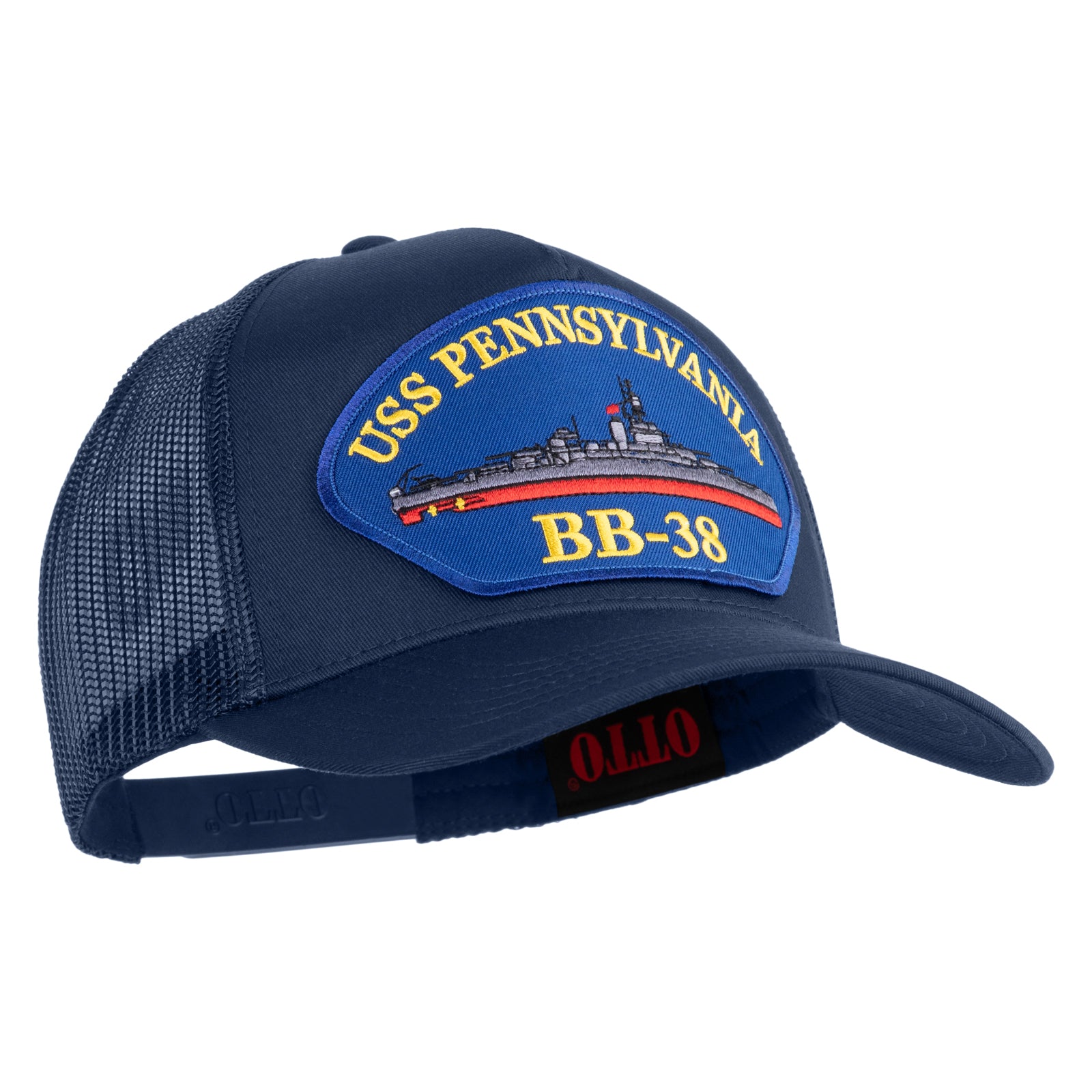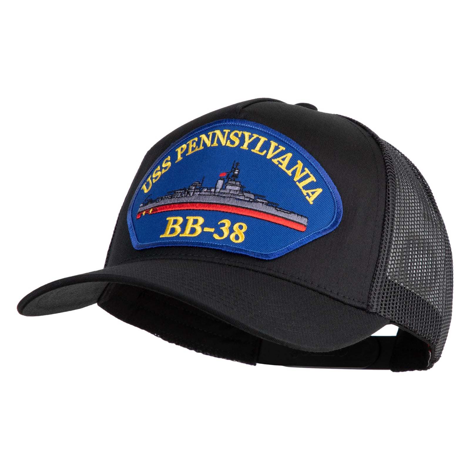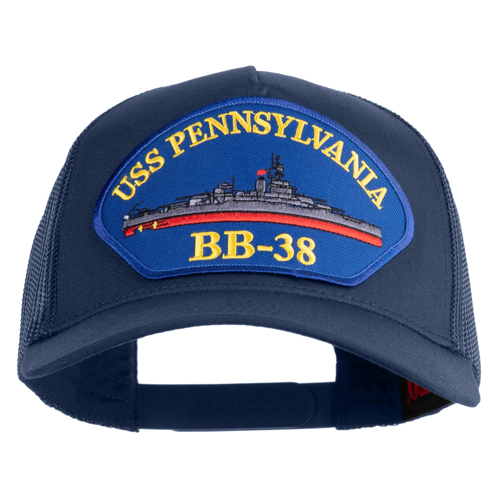 Title, USS Pennsylvania BB 38 Blue Patched Solid Cotton Twill 5 Panel Mesh Back Cap