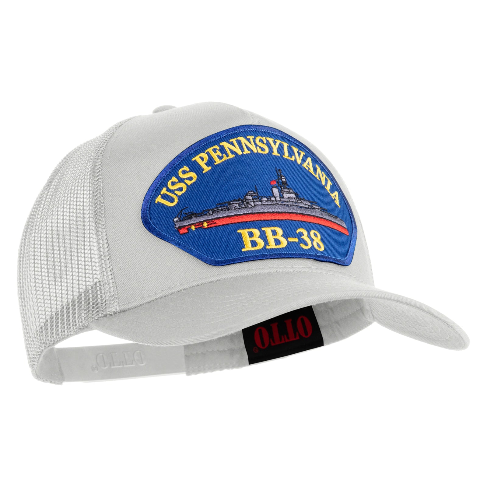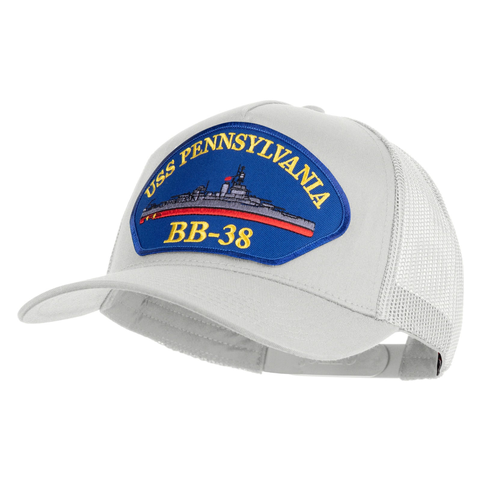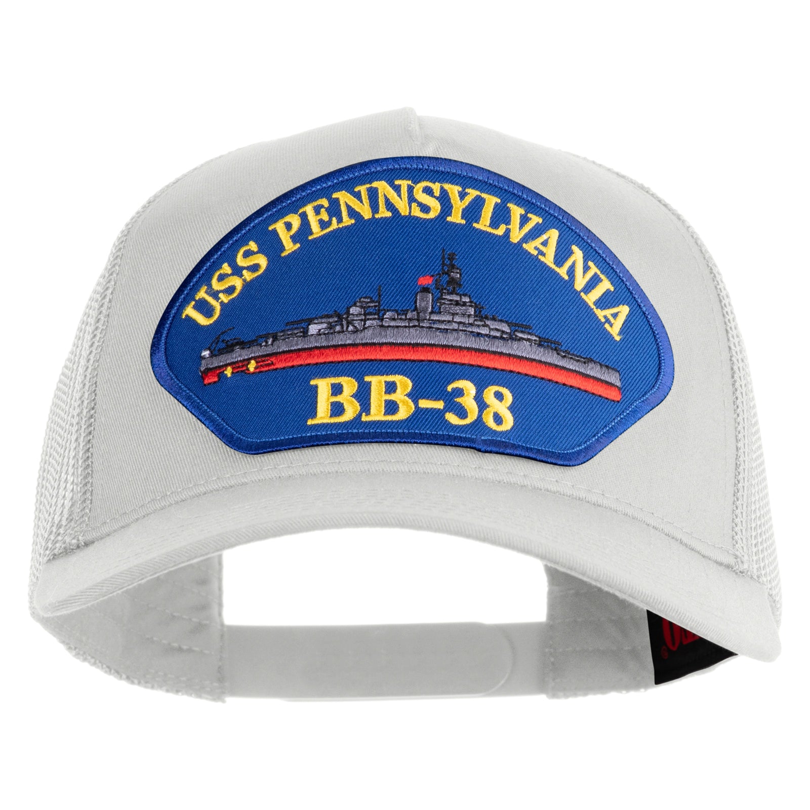 Title, USS Pennsylvania BB 38 Blue Patched Solid Cotton Twill 5 Panel Mesh Back Cap