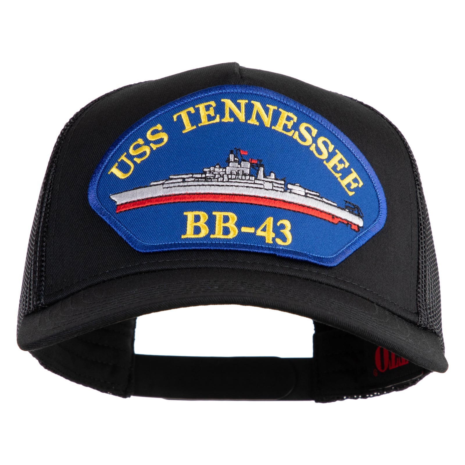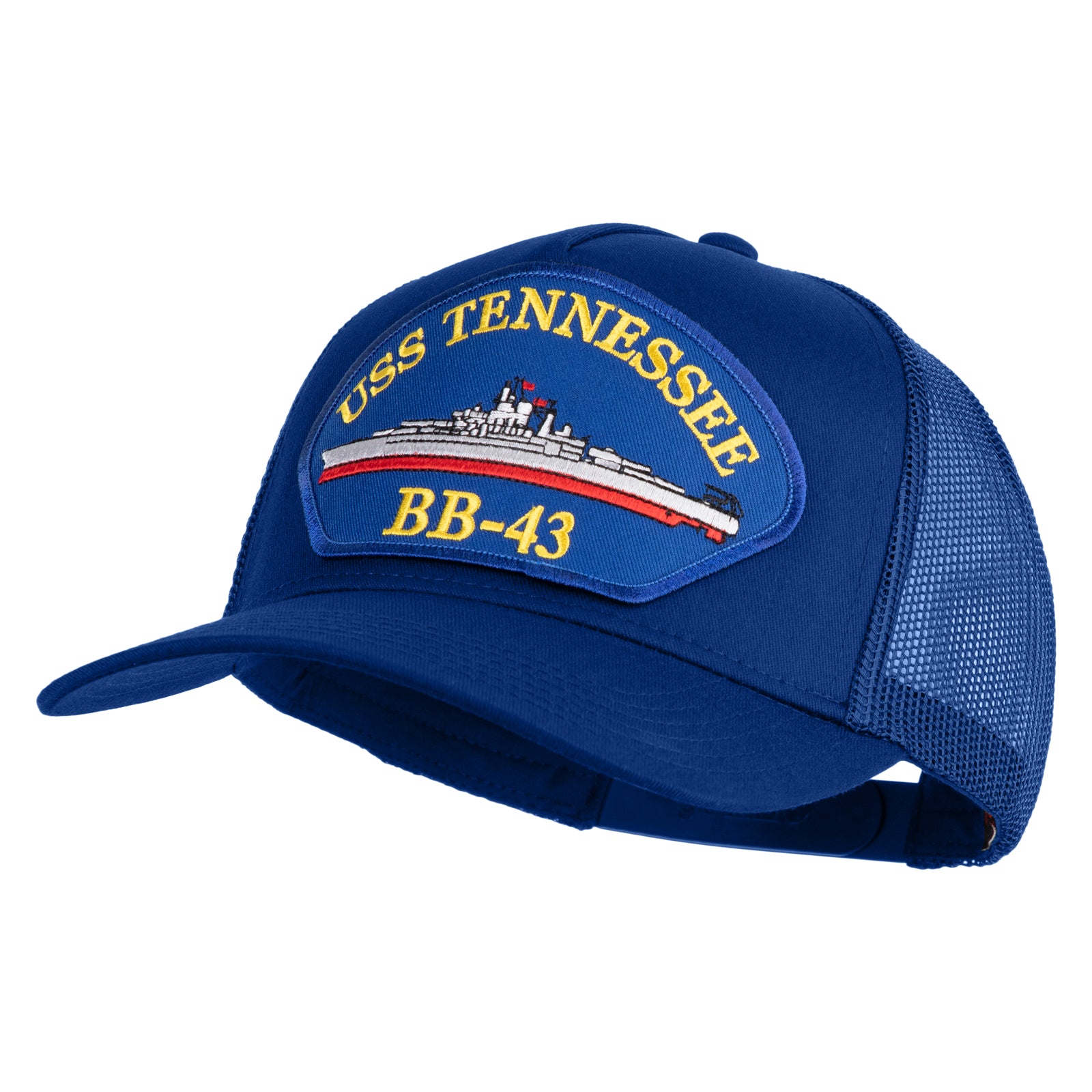 Title, USS Tennessee BB 43 Blue Patched Solid Cotton Twill 5 Panel Mesh Back Cap