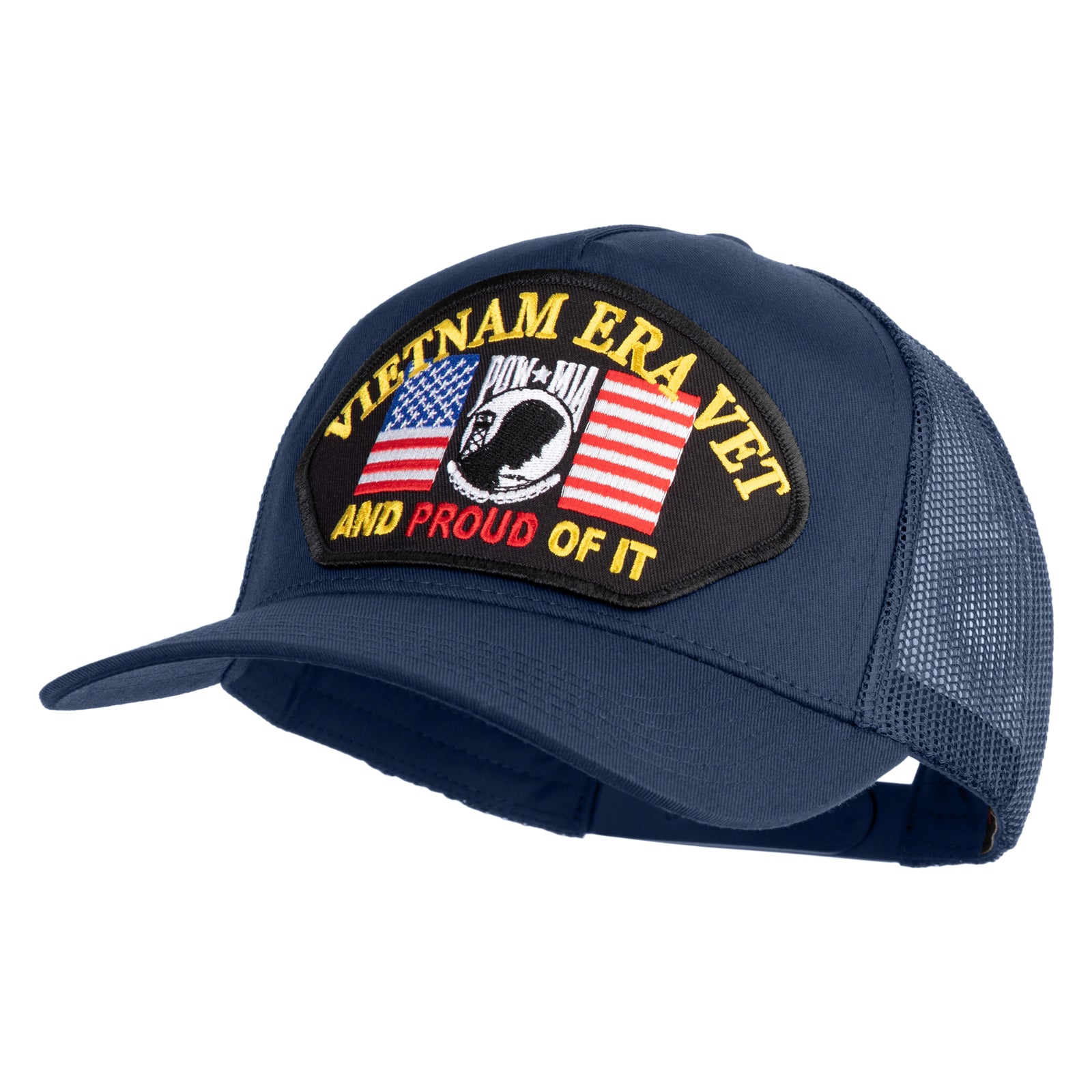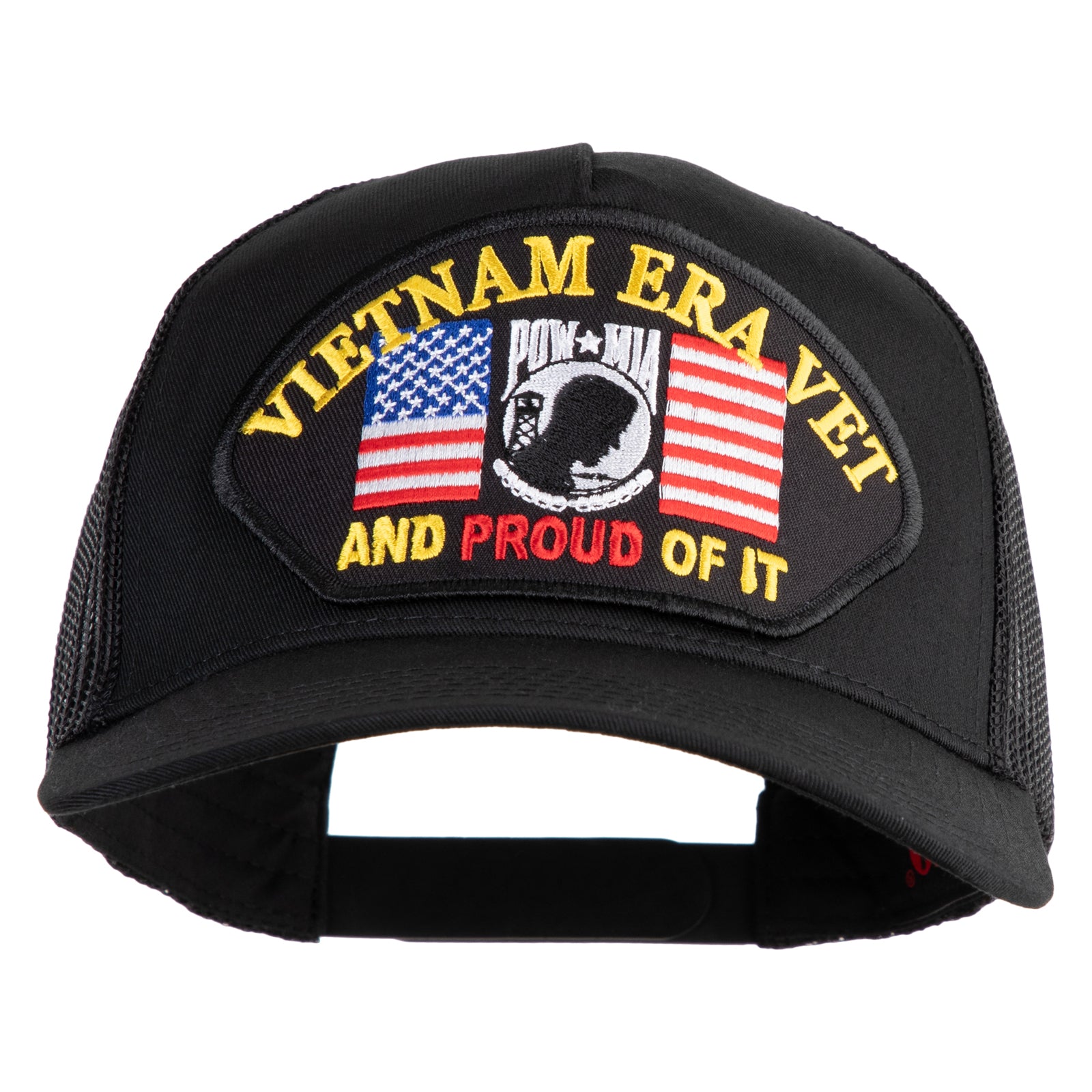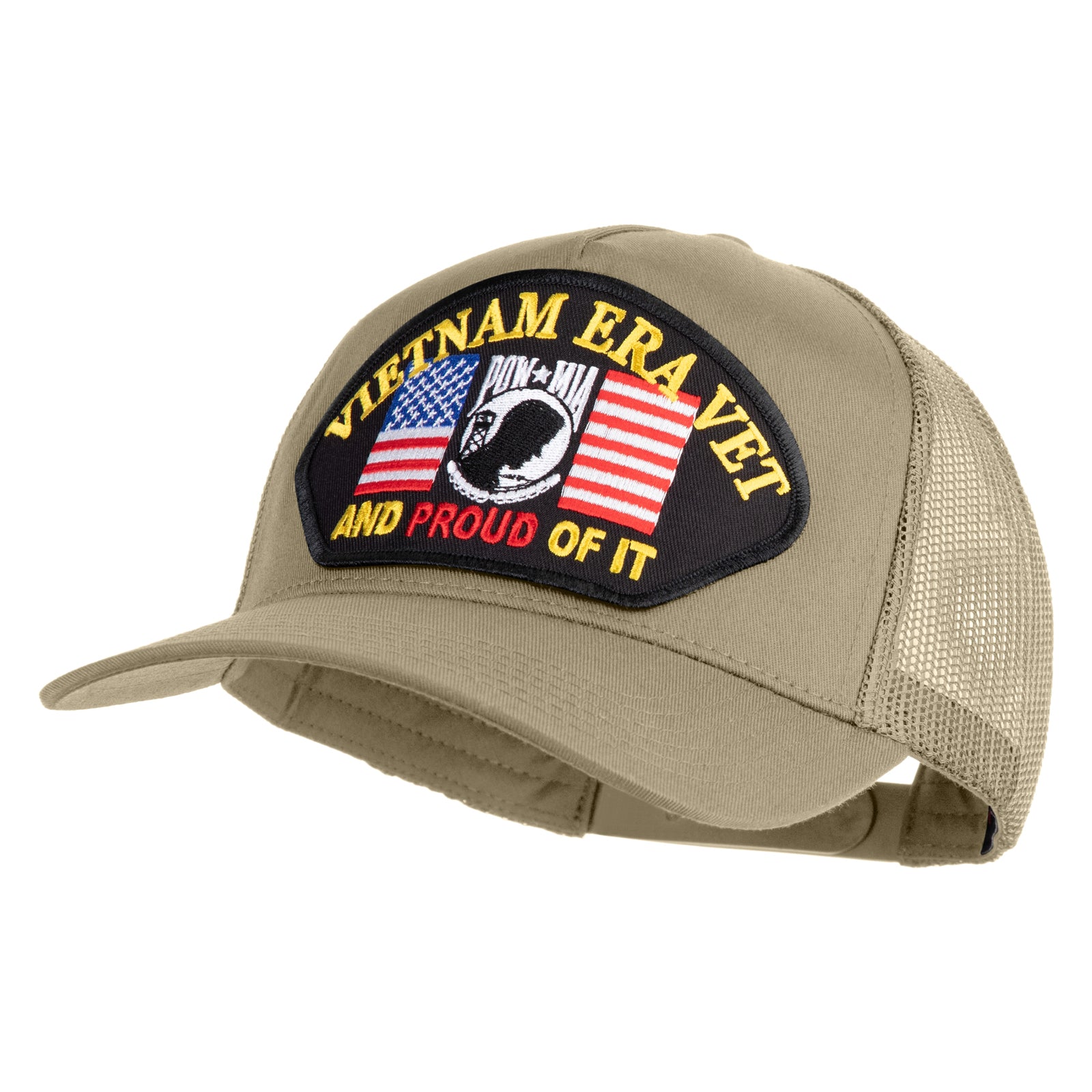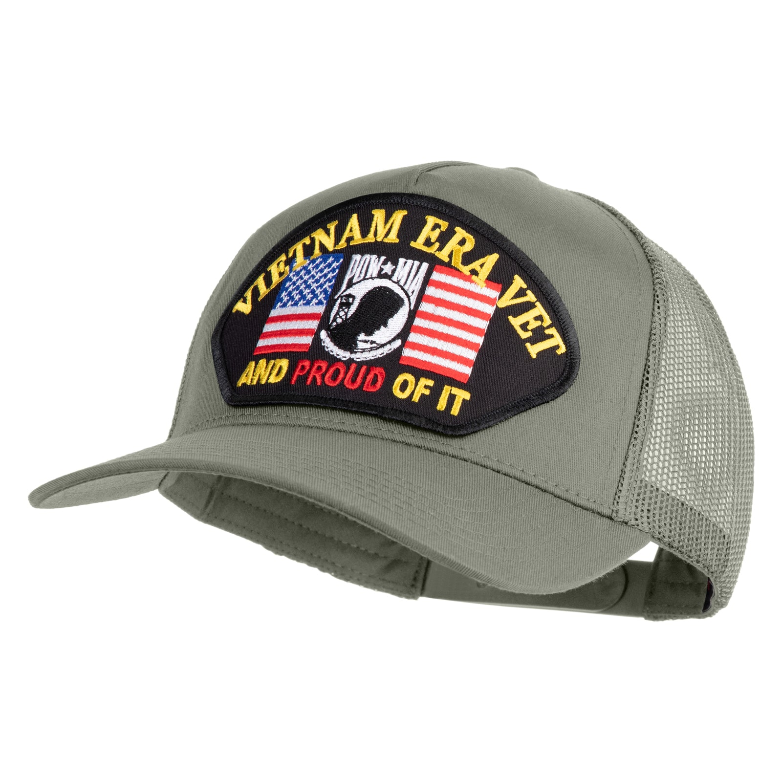 Title, Vietnam Era Vet and Proud of It Patched Solid Cotton Twill 5 Panel Mesh Back Cap