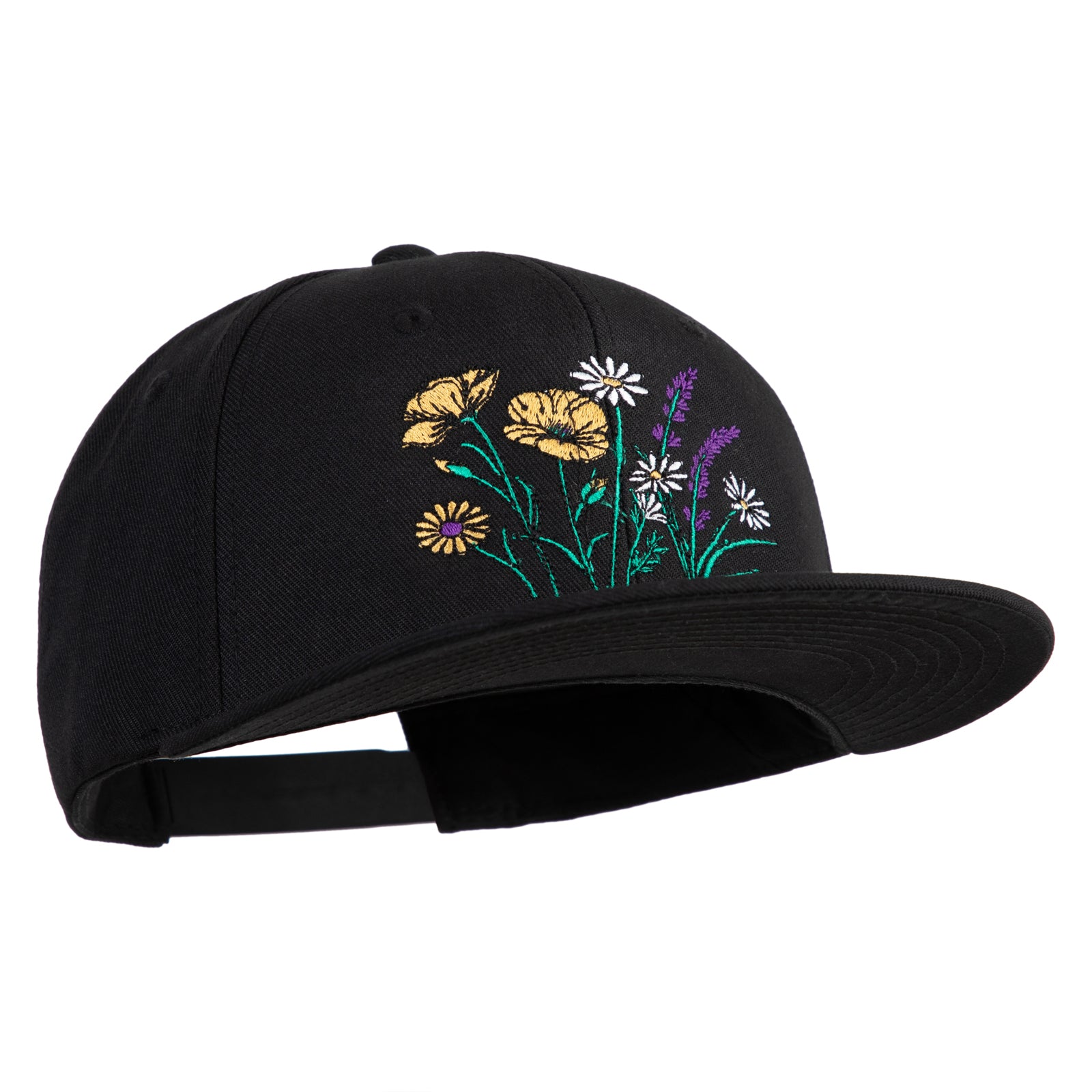 Wildflower Bouquet Embroidered 6 Panel High Profile Structured Snapback - Black OSFM