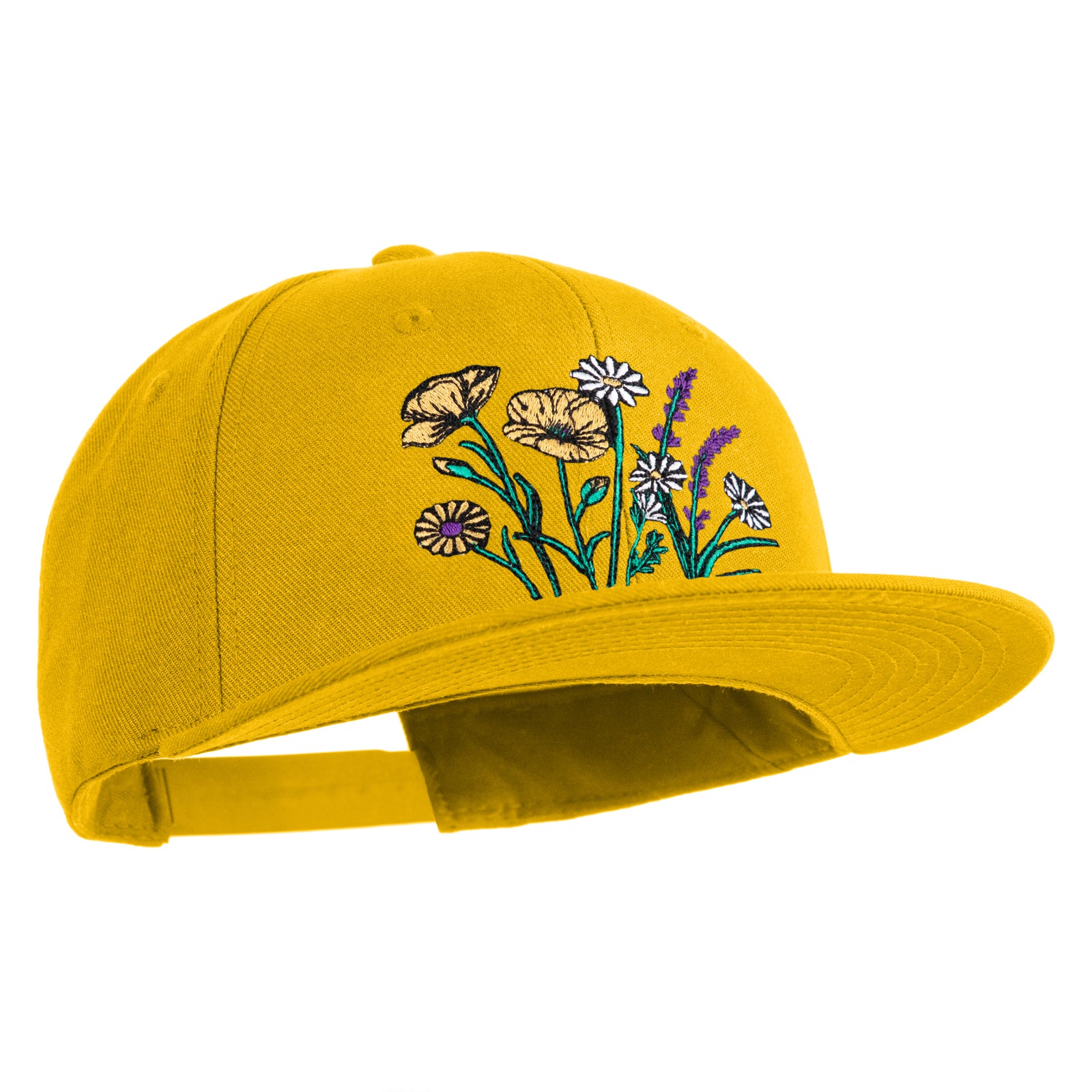 Wildflower Bouquet Embroidered 6 Panel High Profile Structured Snapback