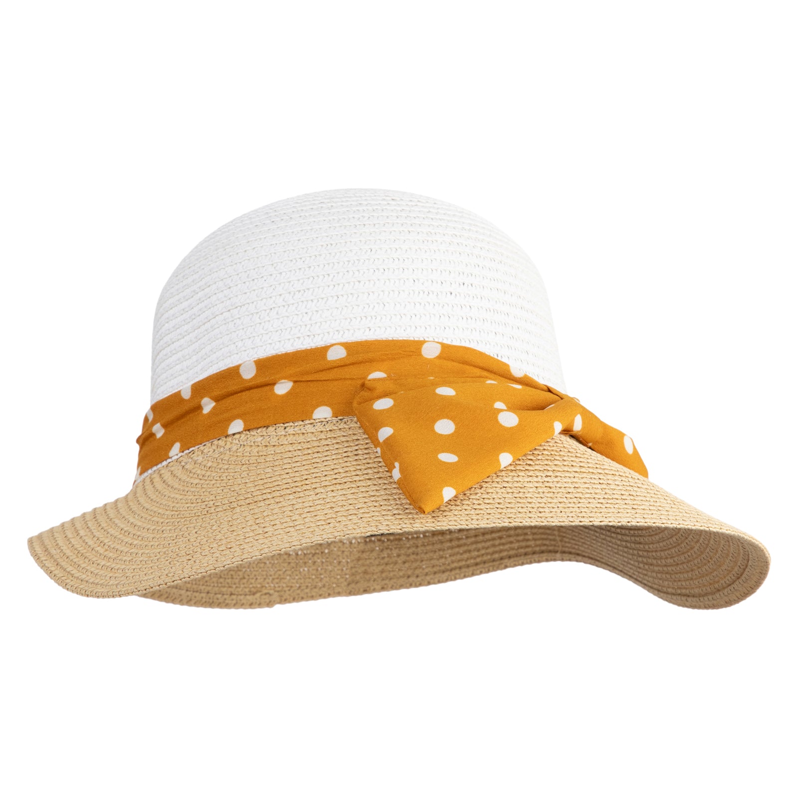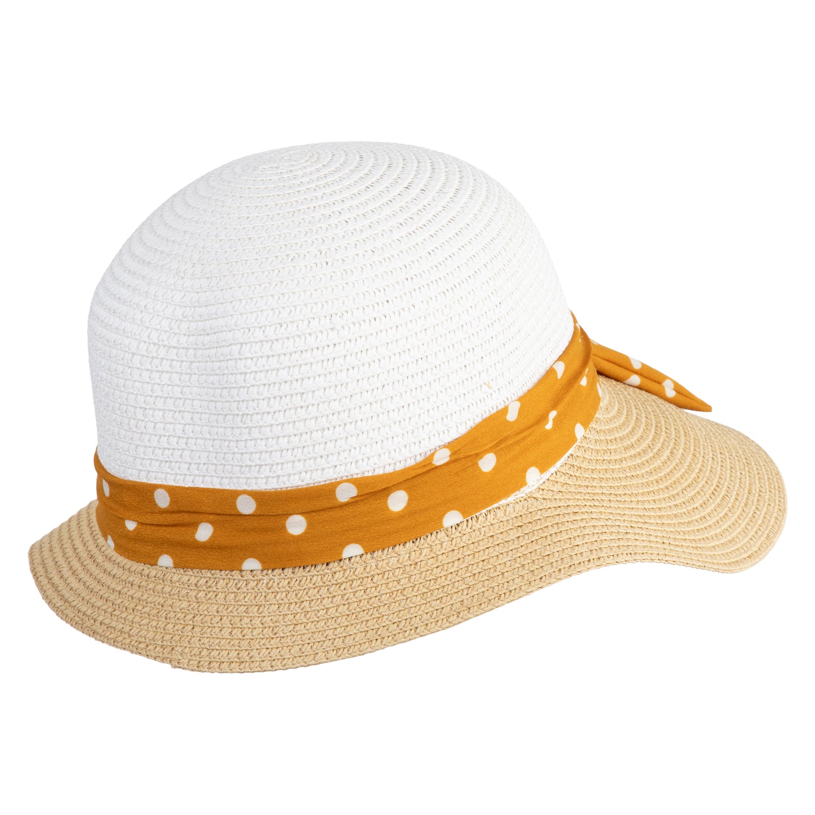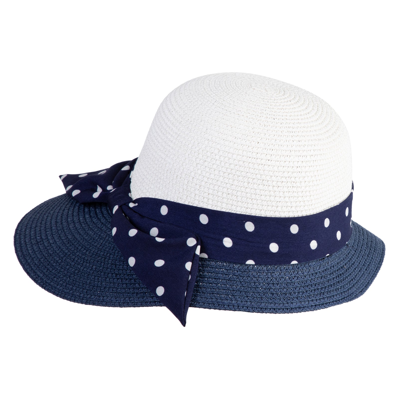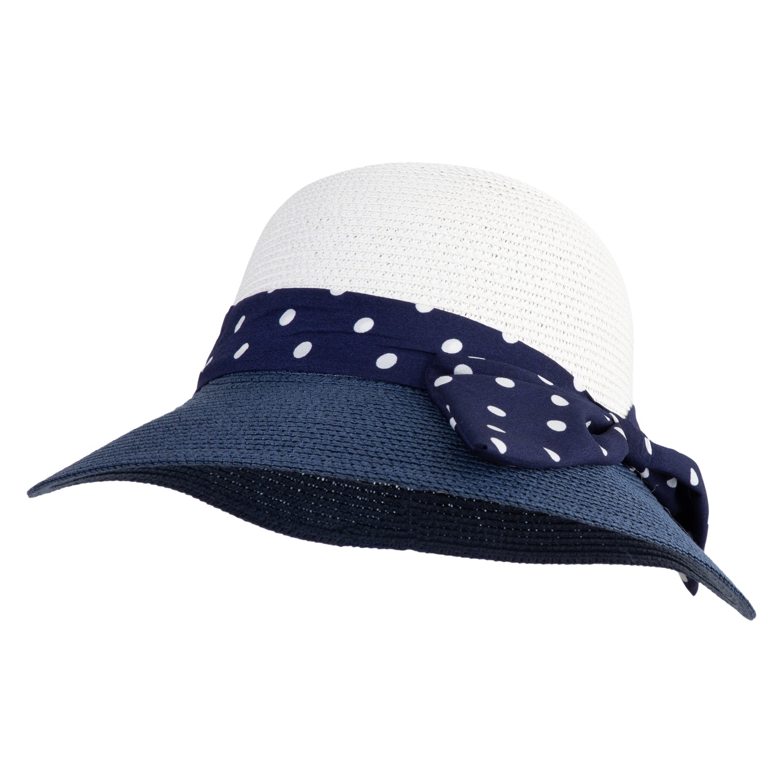 Title, Women's Asymmetrical Brimcap Polka Dot Bow Band Cloche Hat