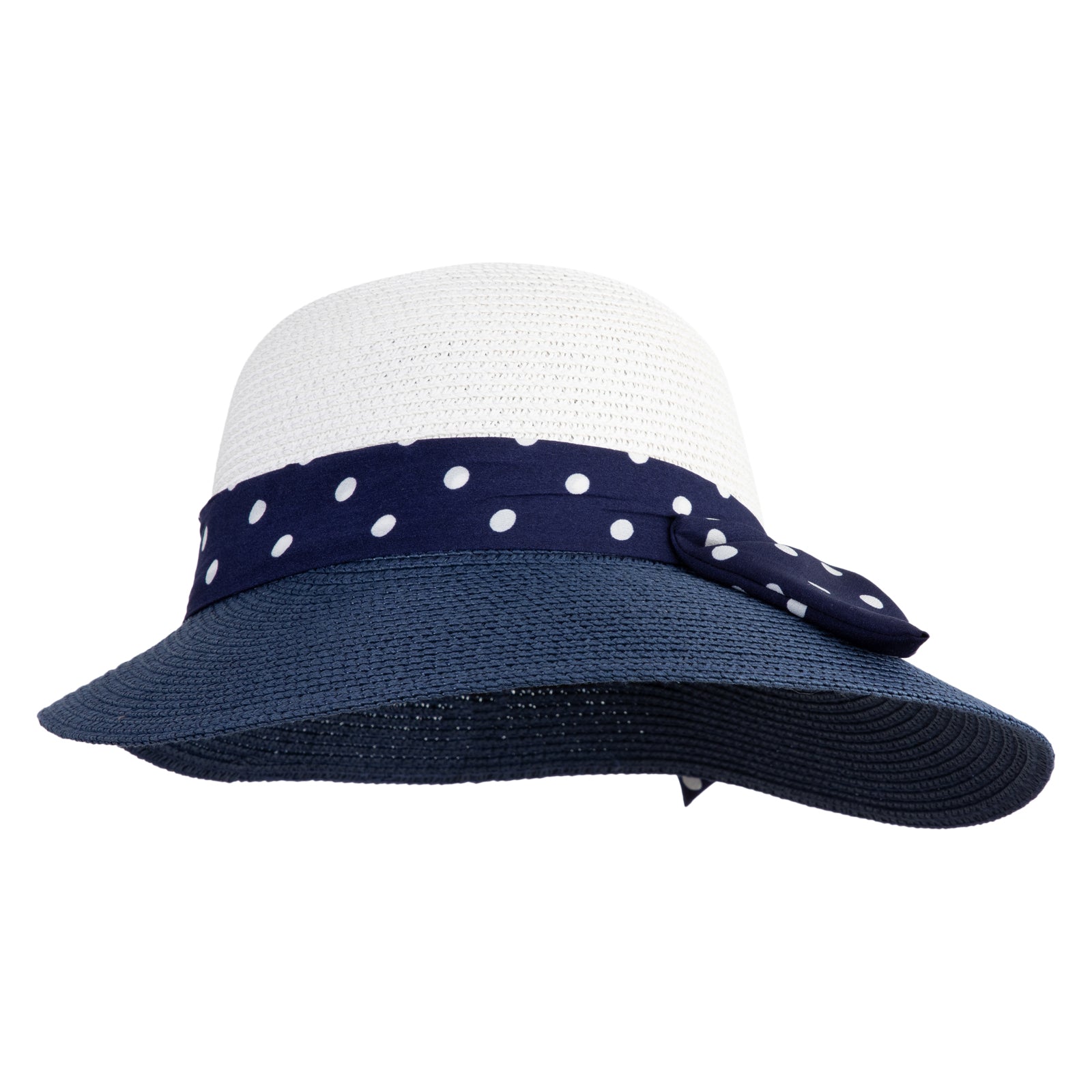 Women's Asymmetrical Brimcap Polka Dot Bow Band Cloche Hat